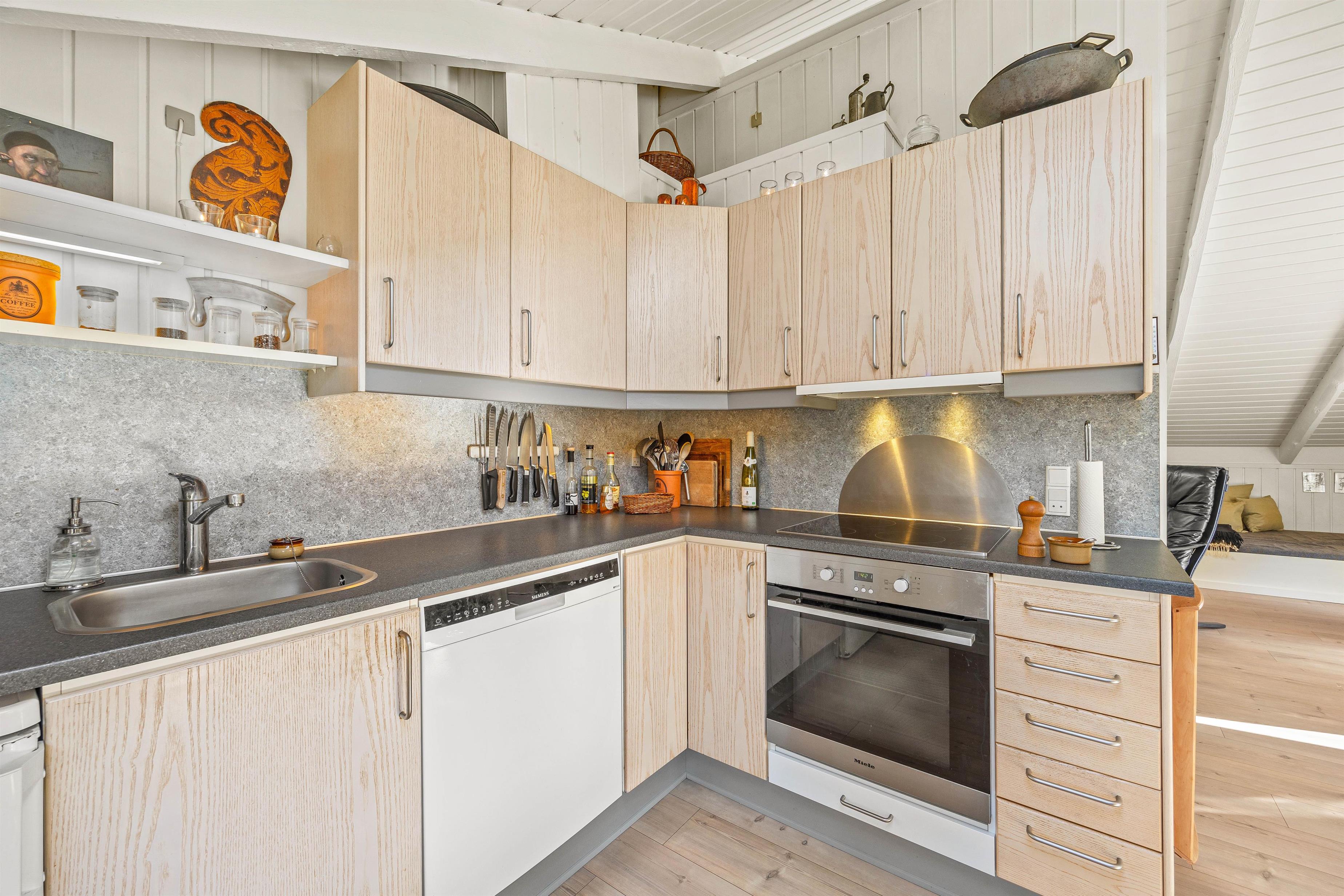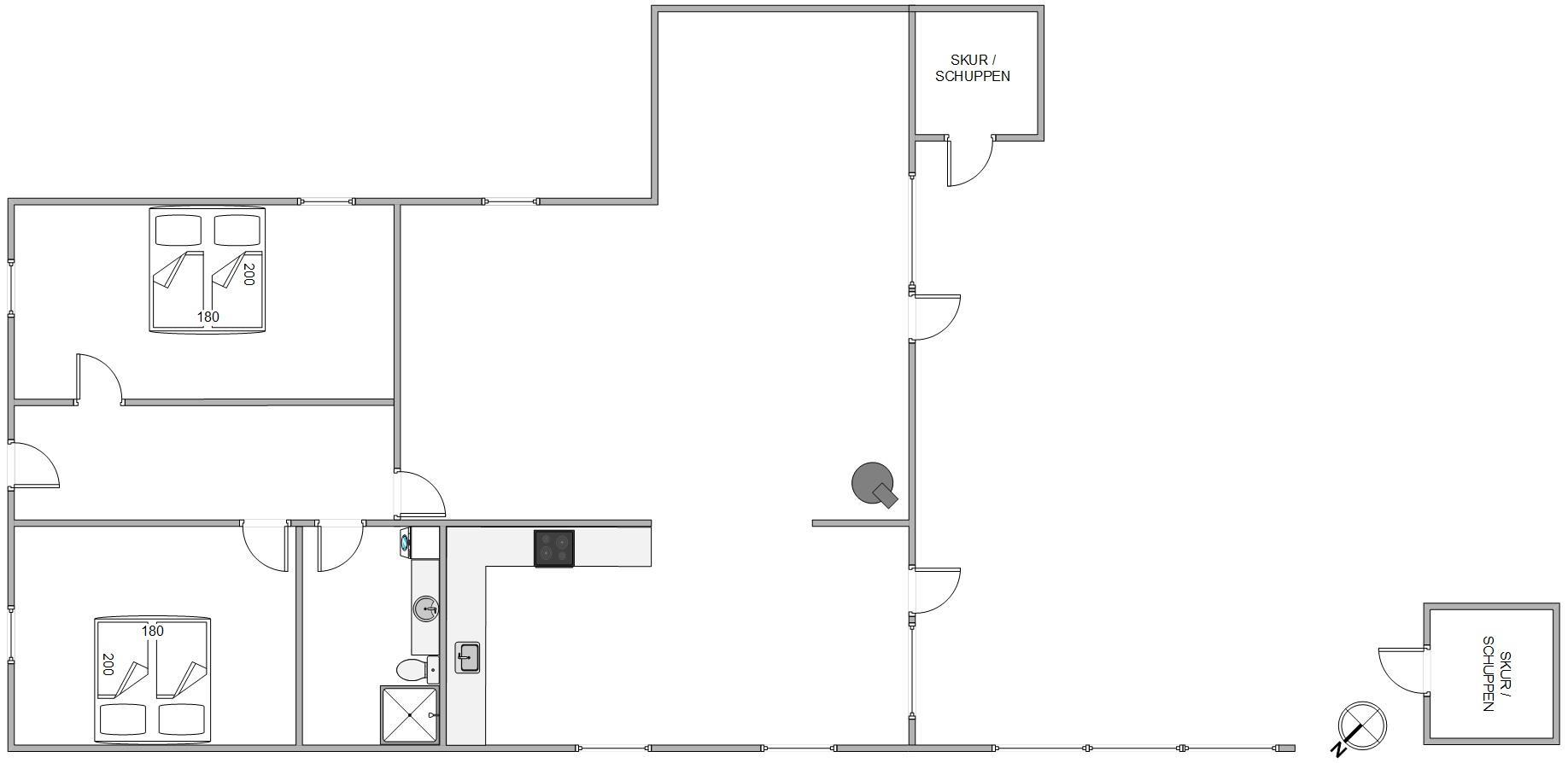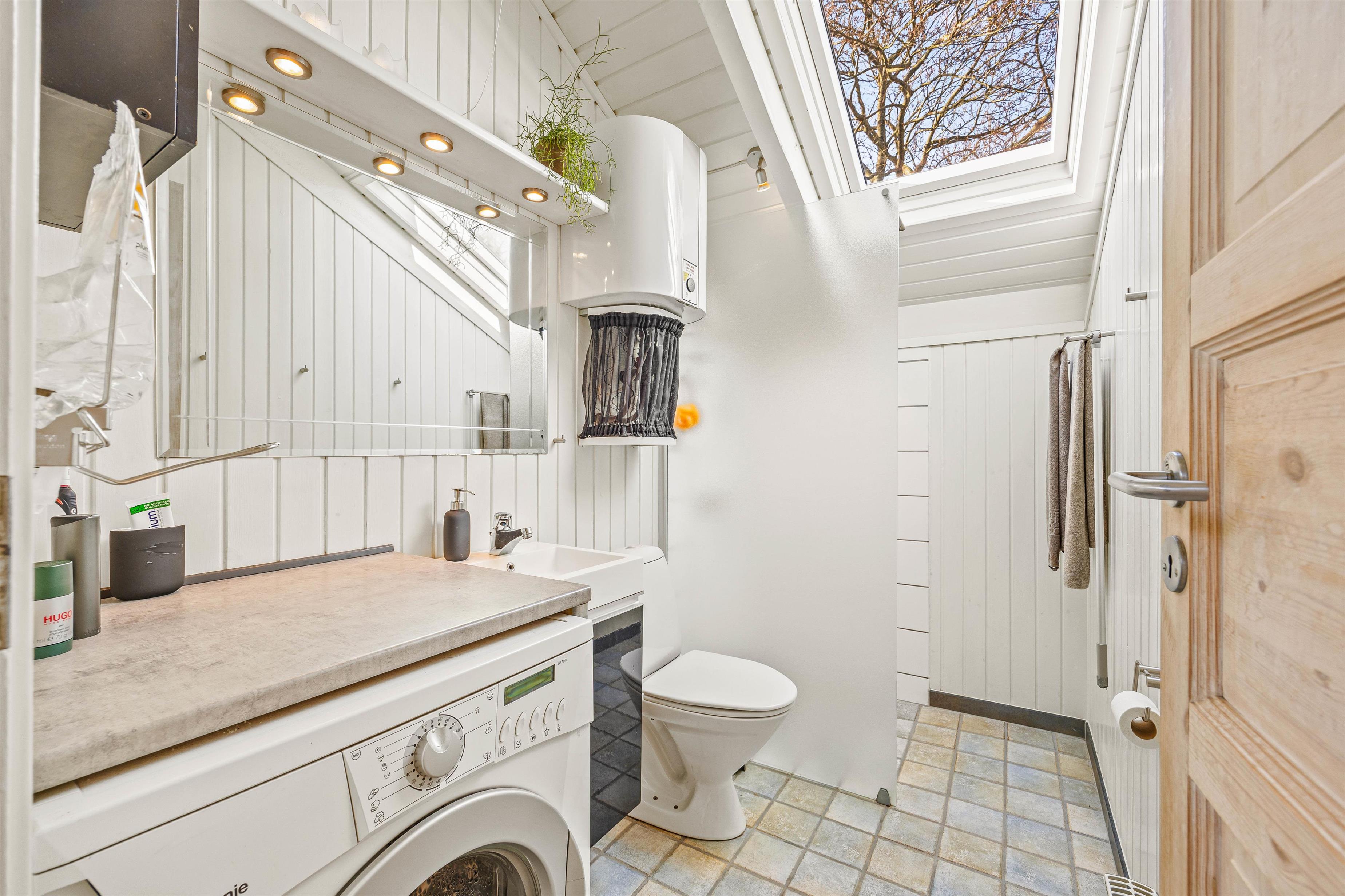 Sommerhusets badeværelse er med gulvvarme, og her er desuden en vaskemaskine til jeres rådighed. De 4 sovepladser fordeler sig på 2 gode soveværelser – begge indrettet med dobbeltseng.