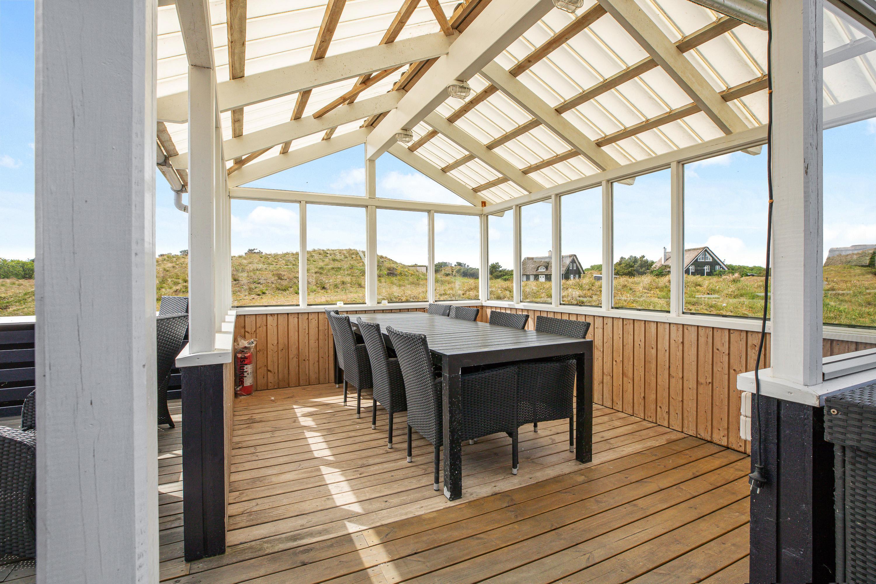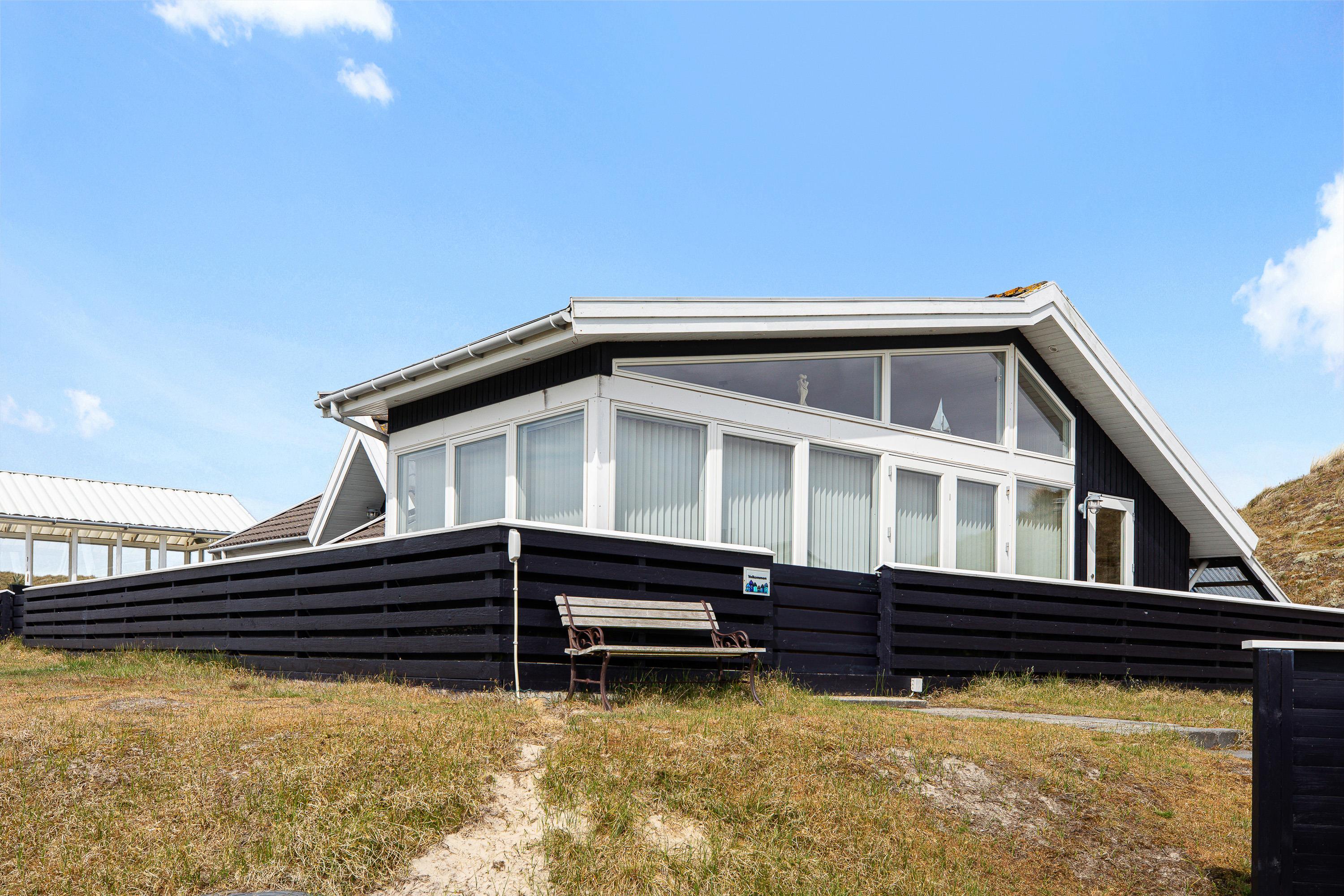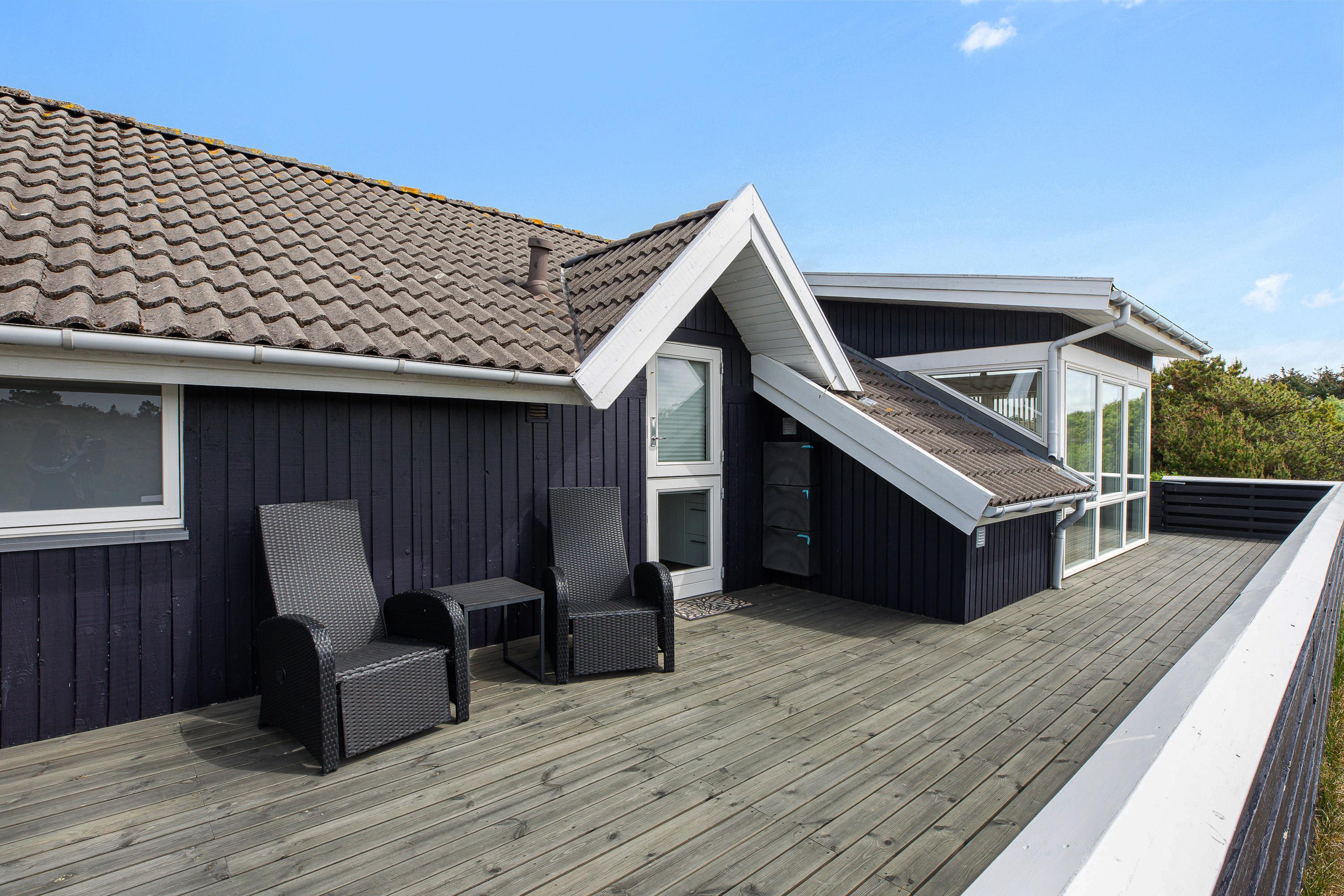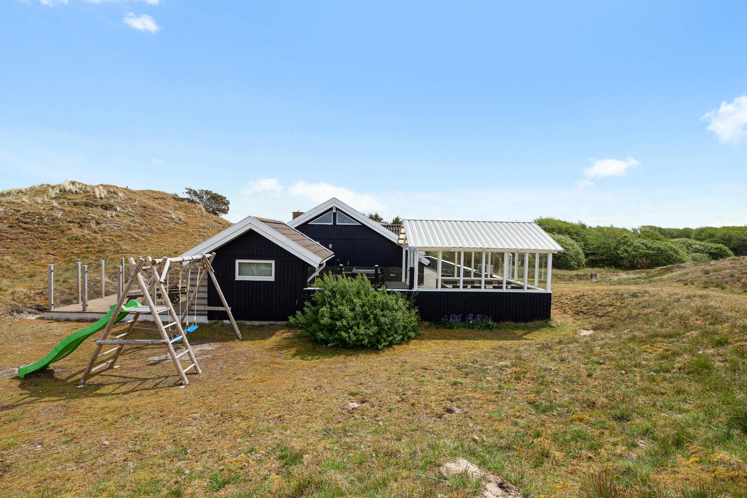 Udover et fantastisk feriehus får I her et helt særligt udemiljø. Feriehuset på Nørre Meldbjergdal 11 ligger ugeneret og smukt indlejret i de grønne klitter, hvilket giver jer ekstra privatliv. Rundt om feriehuset er der indrettet flere små terrasseområder, så I altid vil kunne finde en solrig eller skyggefuld plet.