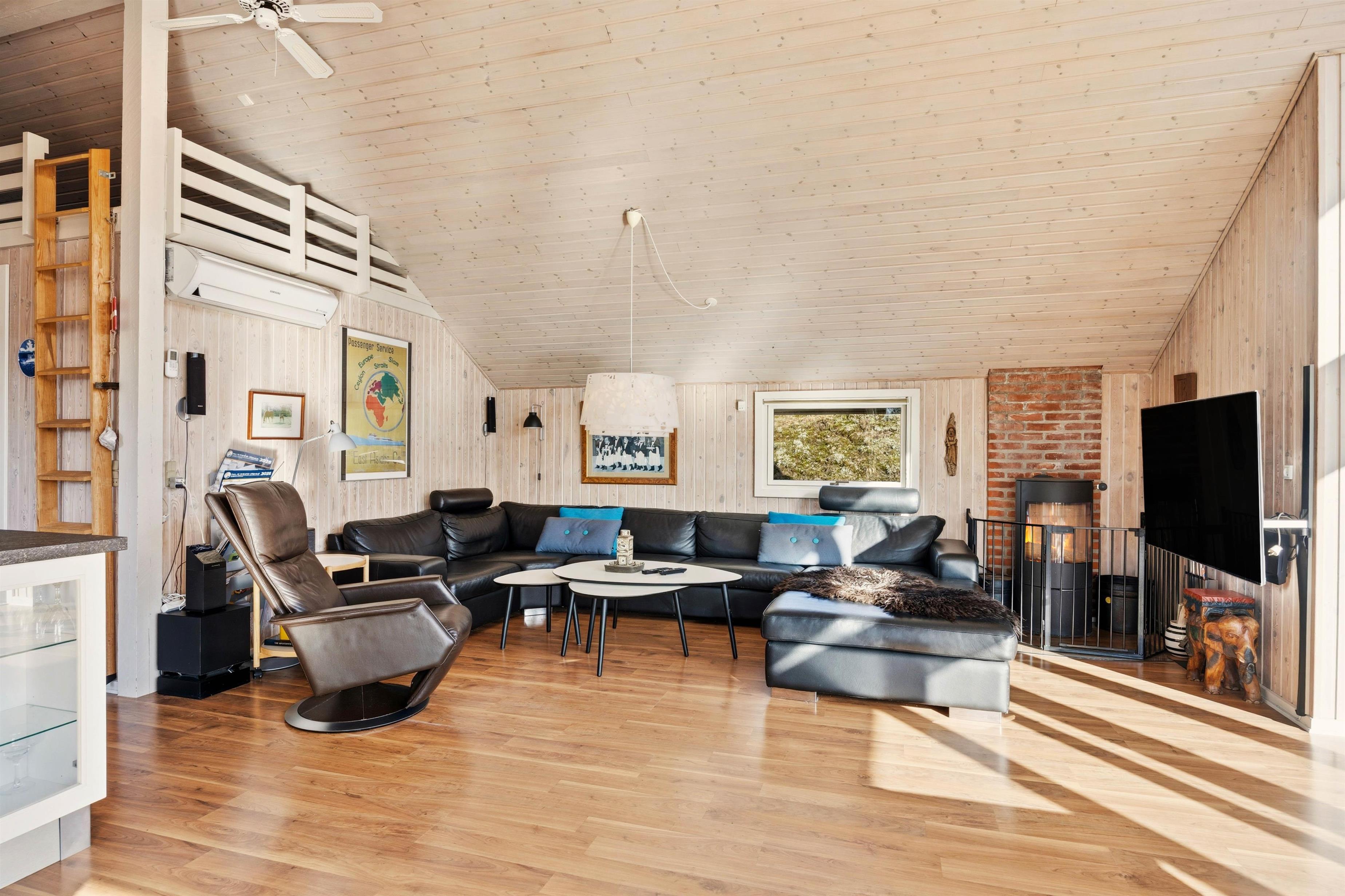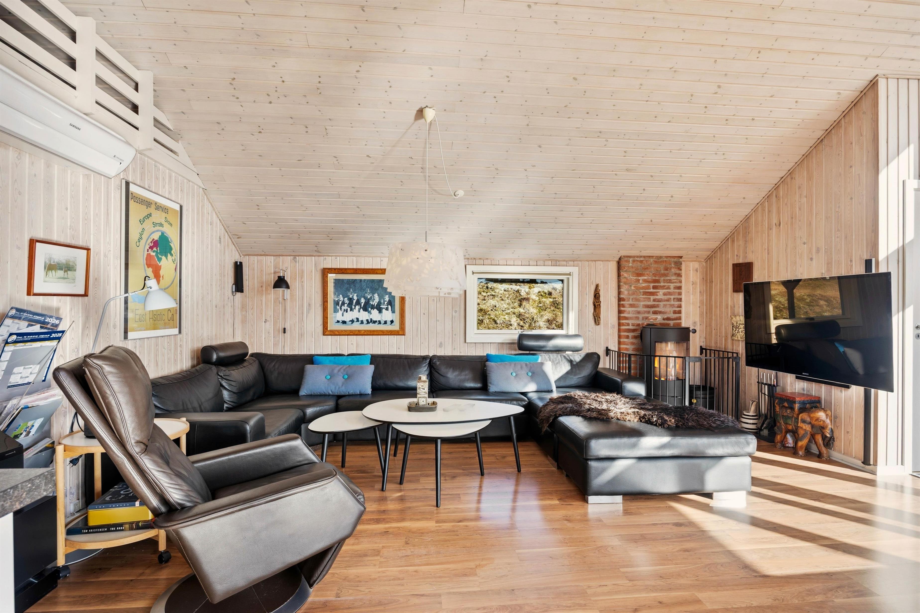 Opvarmningen af feriehuset er hurtig og effektiv i form af en moderne varmepumpe, som sørger for energibesparende opvarmning. Alternativt kan I tænde op i brændeovnen og nyde den stille knitren i baggrunden, mens flammernes skær danser på væggene.