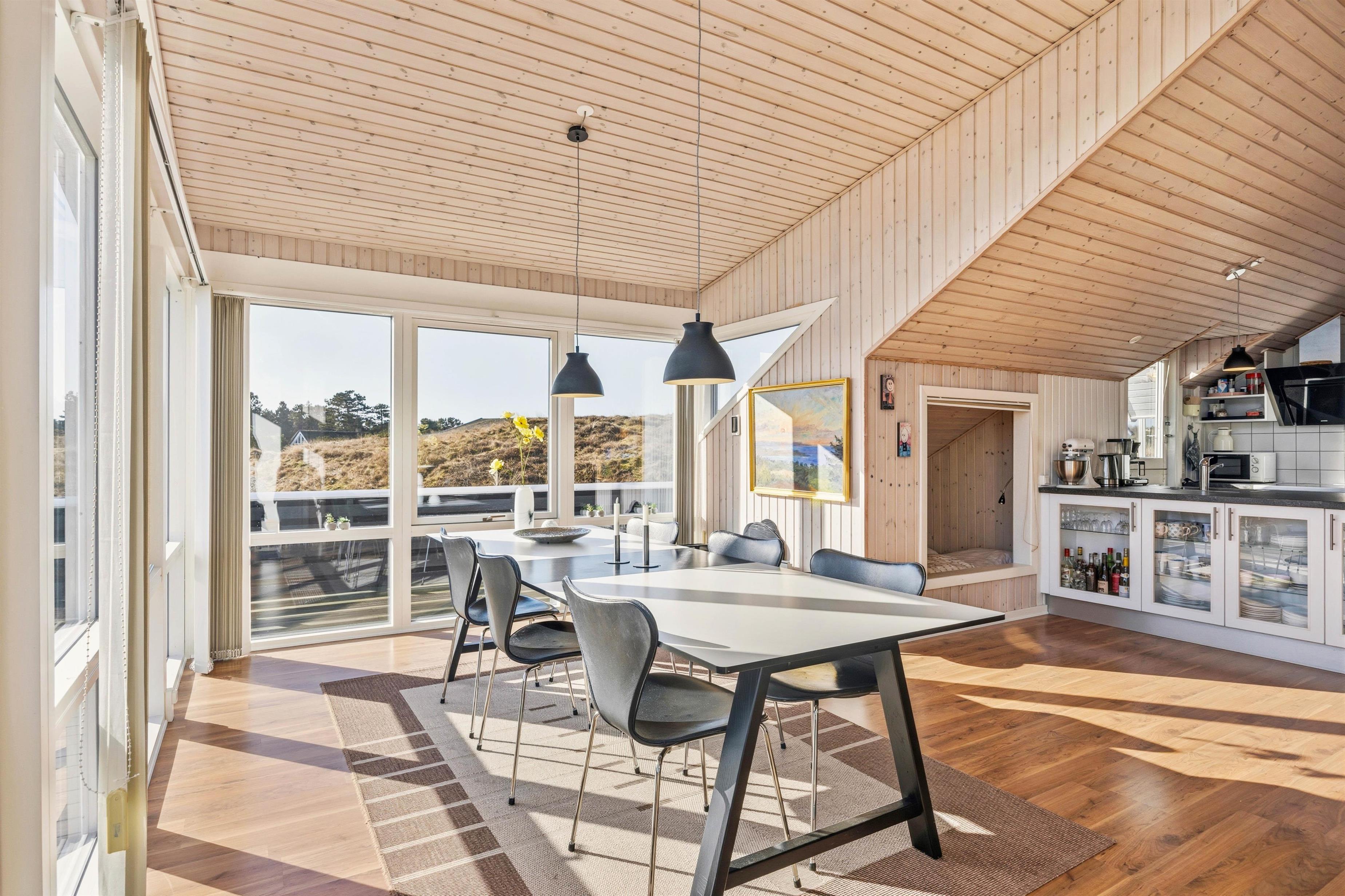 Det velholdte sommerhus er indrettet således, at hele familien kan tilbringe tid sammen, også selvom I foretager jer noget forskelligt. Det rummelige opholdsrum indeholder stue, spiseplads og et veludstyret køkken og er indrettet med komfortable møbler. Her er der også bygget en lille alkove, som er det perfekte tilflugtssted for børn, hvor de kan lege, læse eller slappe af, mens maden tilberedes.