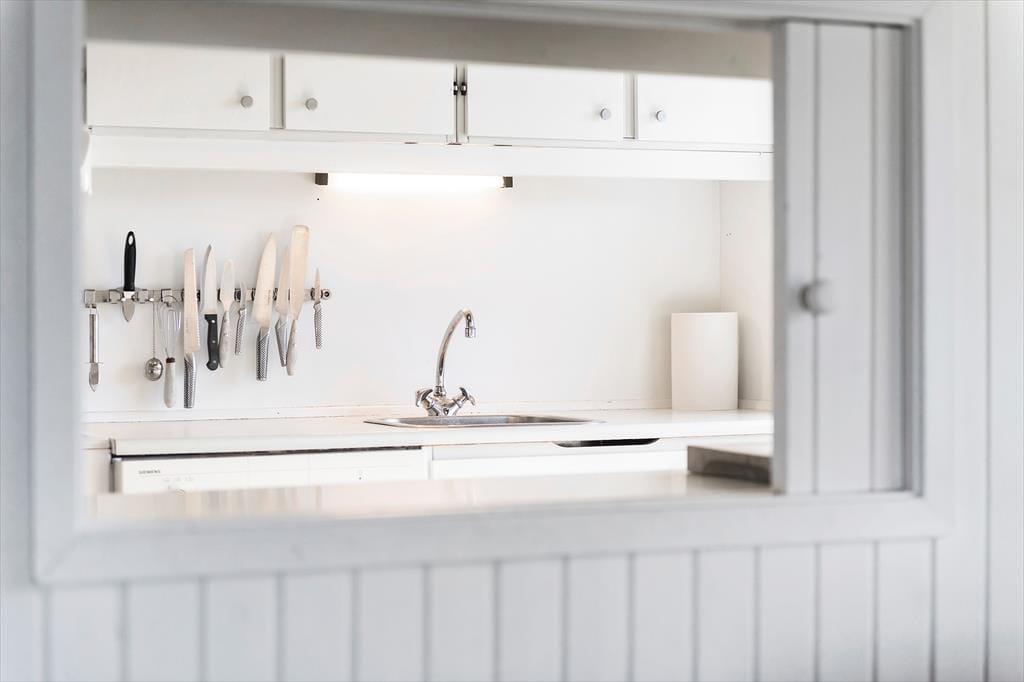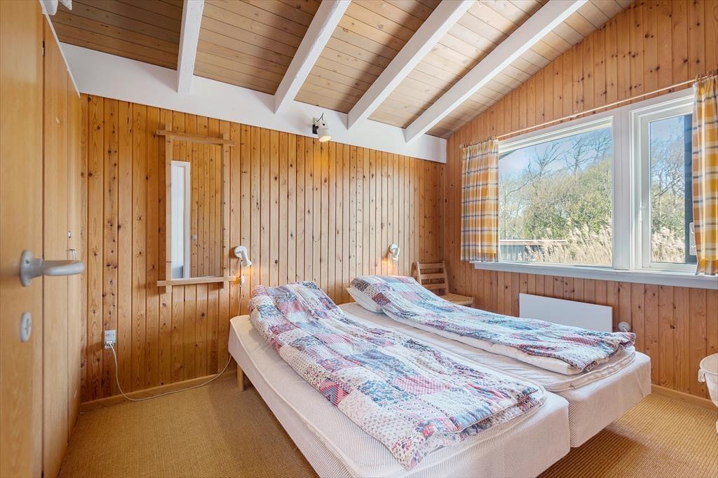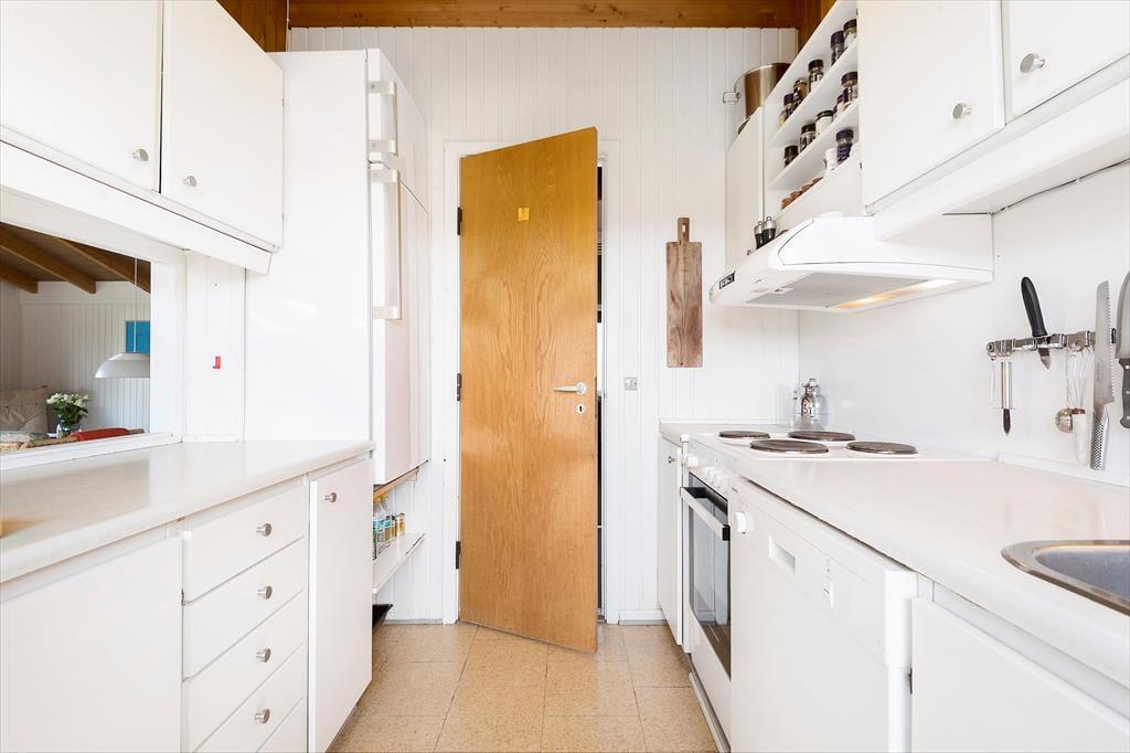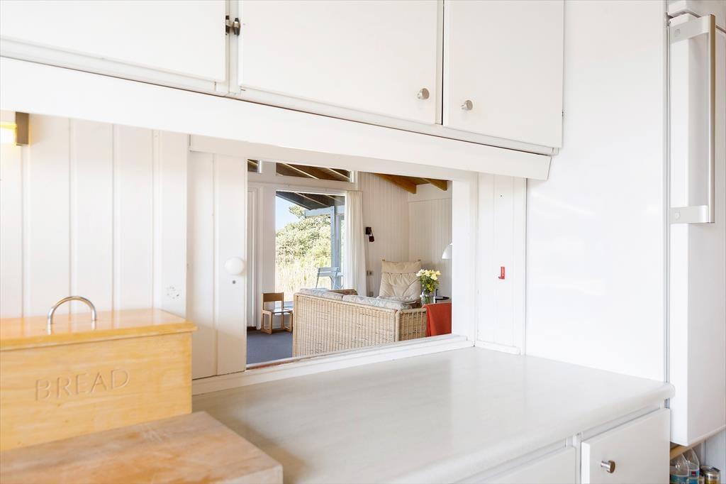 Sommerhuset emmer af ro og hygge, og lige fra du træder ind gennem hoveddøren, kan du mærke feriefreden sænke sig. Stuen har et rustikt look med markante bjælkekonstruktioner i loftet, og både pejsen og det komfortable møblement indbyder til, at du og dine kære tager dagene på helt tilbagelænet vis – for eksempel med varm kaffe i kopperne, gode bøger eller en spændende film på fladskærmen og Chromecast til streamning. Det tilstødende køkken er veludstyret, og som en charmerende detalje er der en lille luge ind til stuen, som du kan servere maden igennem. Soveværelser er der tre af, og planløsningen byder også på et brusebadeværelse, så i alt kan I være seks personer.