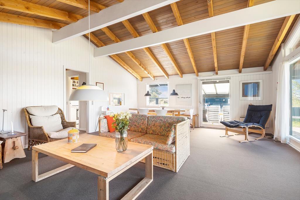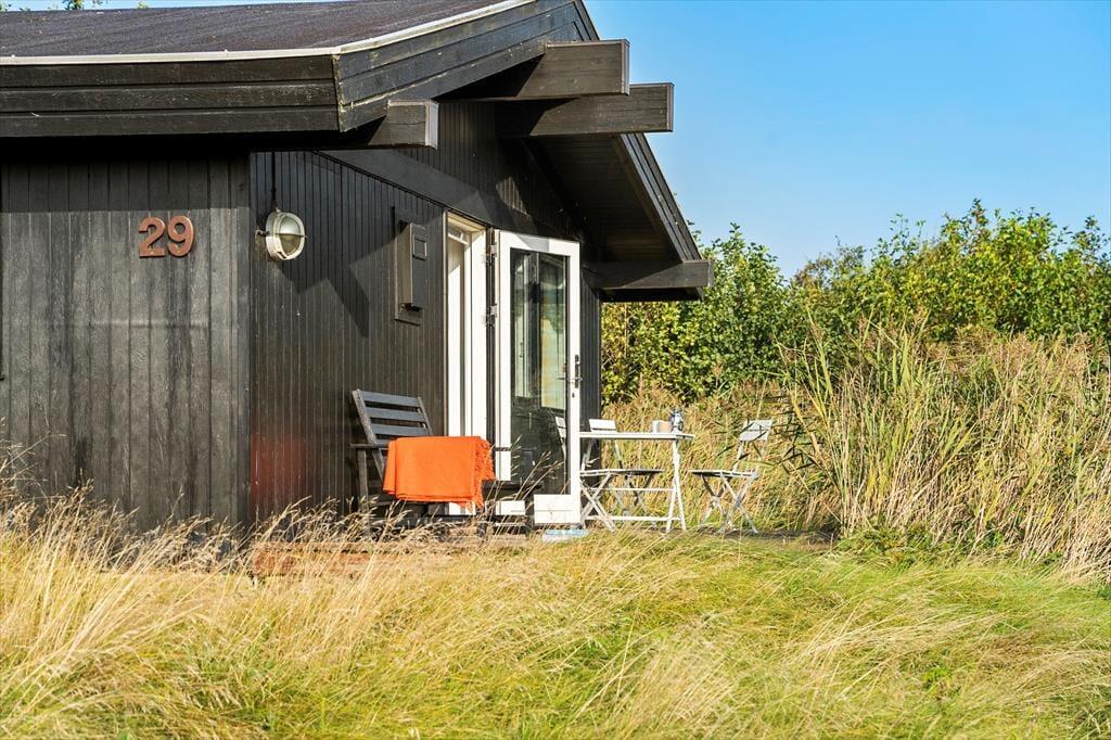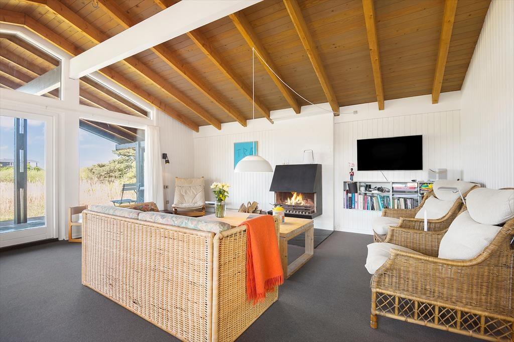 Dette dejlige sommerhus ligger godt placeret for enden af en lukket vej nær Fanø Bad og Vesterhavet. Fra både stuen og terrassen kan du kigge ud på det naturskønne landskab, hvor stråtækte træhuse titter op mellem de marehalmsklædte klitter. Med andre ord har du en køn og rolig ramme om driverlivet her på Nonboevej 29.