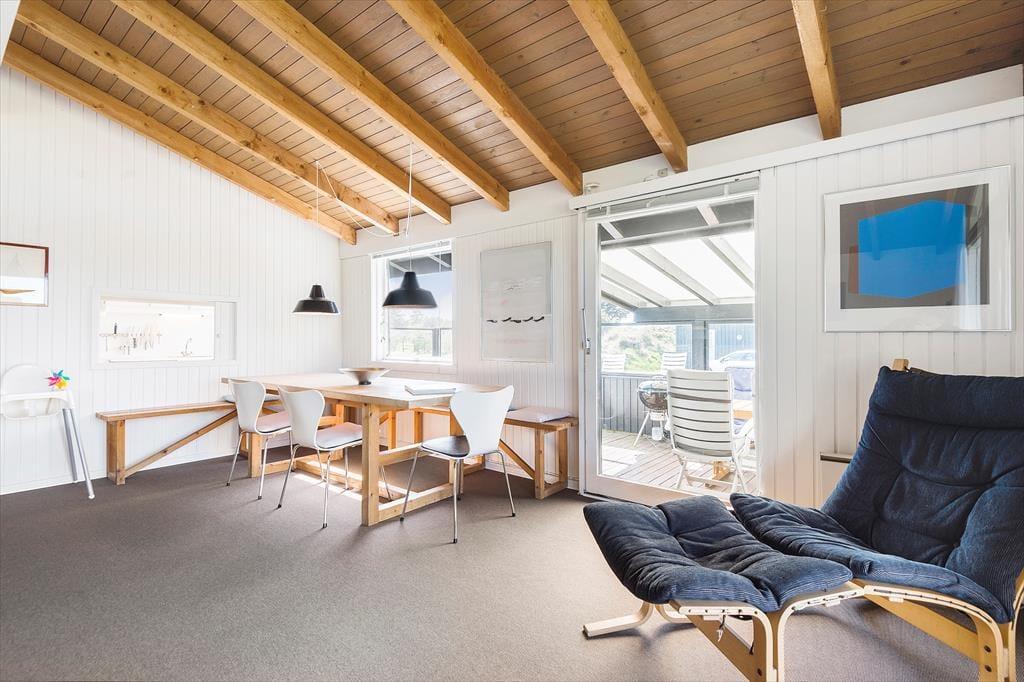 Når vejret er godt, er det oplagt at flytte driverlivet ud på en af de to terrasser, der ligger lige ved stuen. Den ene terrasse er orienteret mod sydøst og den anden mod vest, så du kan finde en solrig opholdplads dagen lang – og så har begge for øvrigt delvis overdækning, så du og familien kan blive siddende længe ude og nyde de naturskønne omgivelser, mens mørket langsomt falder på. Vil du tilberede maden ude i den friske luft, er der også mulighed for det takket være grillen, og ellers har I nem adgang til den nærmeste restaurant, hvis I vil ud at spise.