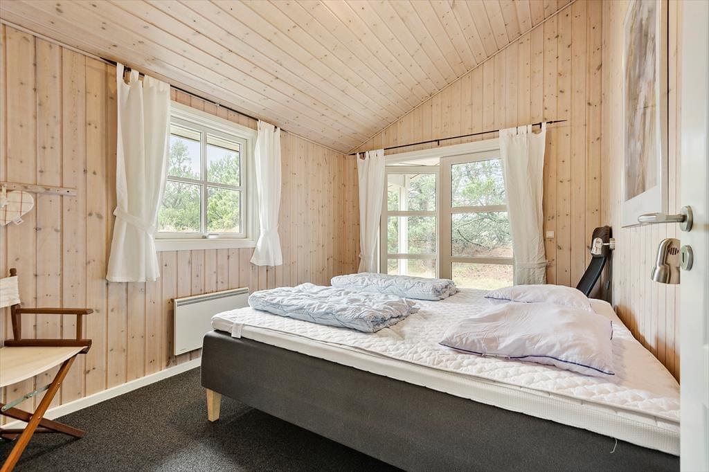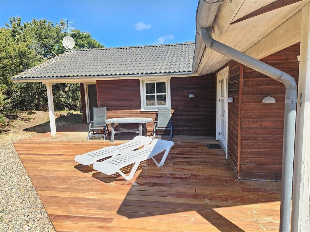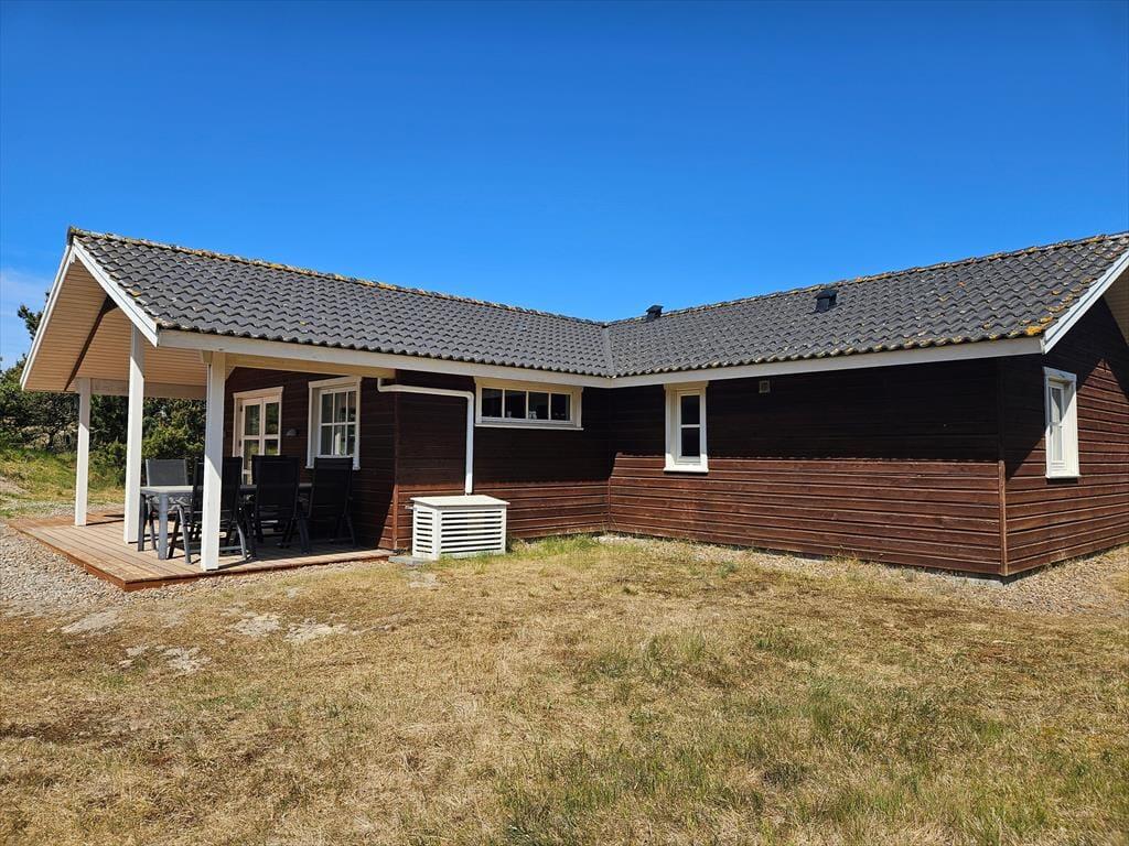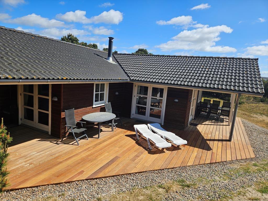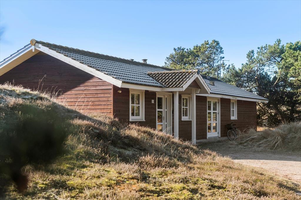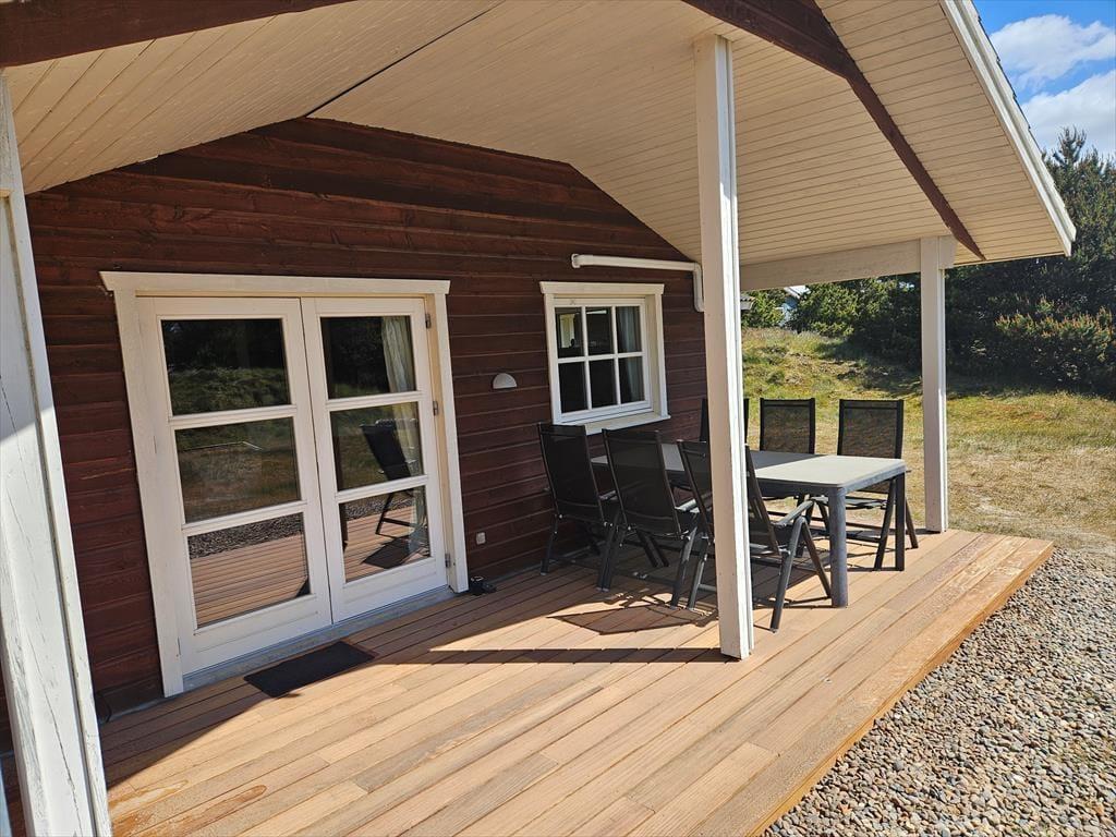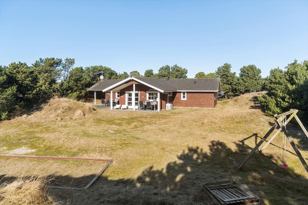 Udendørs venter en stor og dejlig terrasse, der løber langs størstedelen af husets ene side. Her er der rig mulighed for at nyde ferien under åben himmel, uanset om du vil slappe af i solen eller trække dig tilbage i den overdækkede del med en god bog og en kop kaffe. Børnene kan more sig med legeredskaberne, mens resten af familien kan dyste i petanque på den anlagte bane. Efter en dag i den friske vesterhavsluft er det oplagt at samles om grillen og nyde et godt måltid i skønne omgivelser. Samtidig kan du være heldig at spotte rådyr, fasaner eller kaniner, der ofte kommer på besøg i de naturskønne omgivelser omkring sommerhuset.