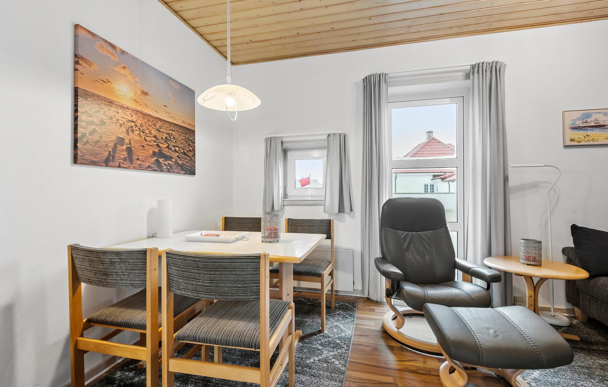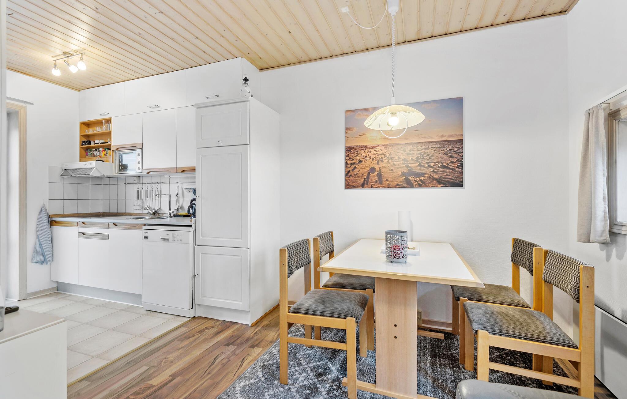 Velkommen til den behagelige atmosfære i jeres smagfuldt indrettede feriebolig, kun få skridt fra den maleriske Vesterhavskyst. Nyd hyggelige filmaftener i den lyse stue med de komfortable møbler, og tilbered jeres yndlingsretter i det veludstyrede køkken. Efter lange gåture på stranden kan I samles ved det indbydende spisebord for at genoplade batterierne.