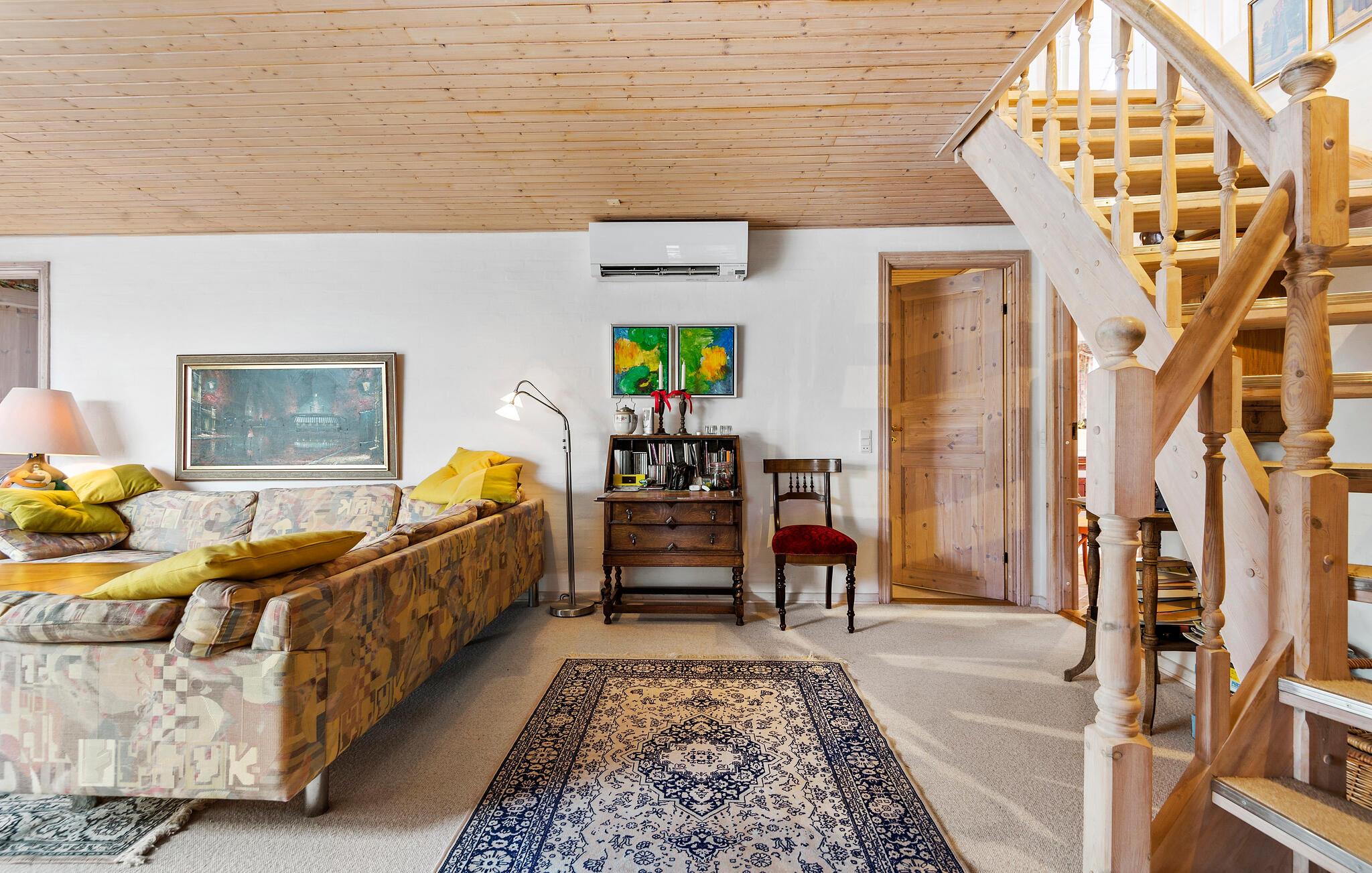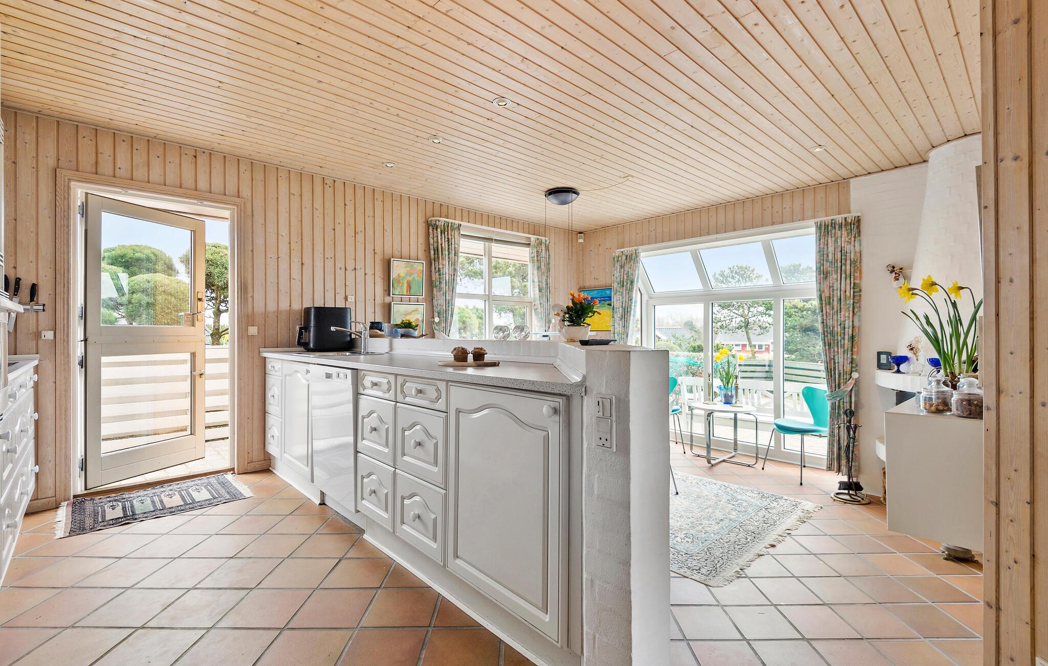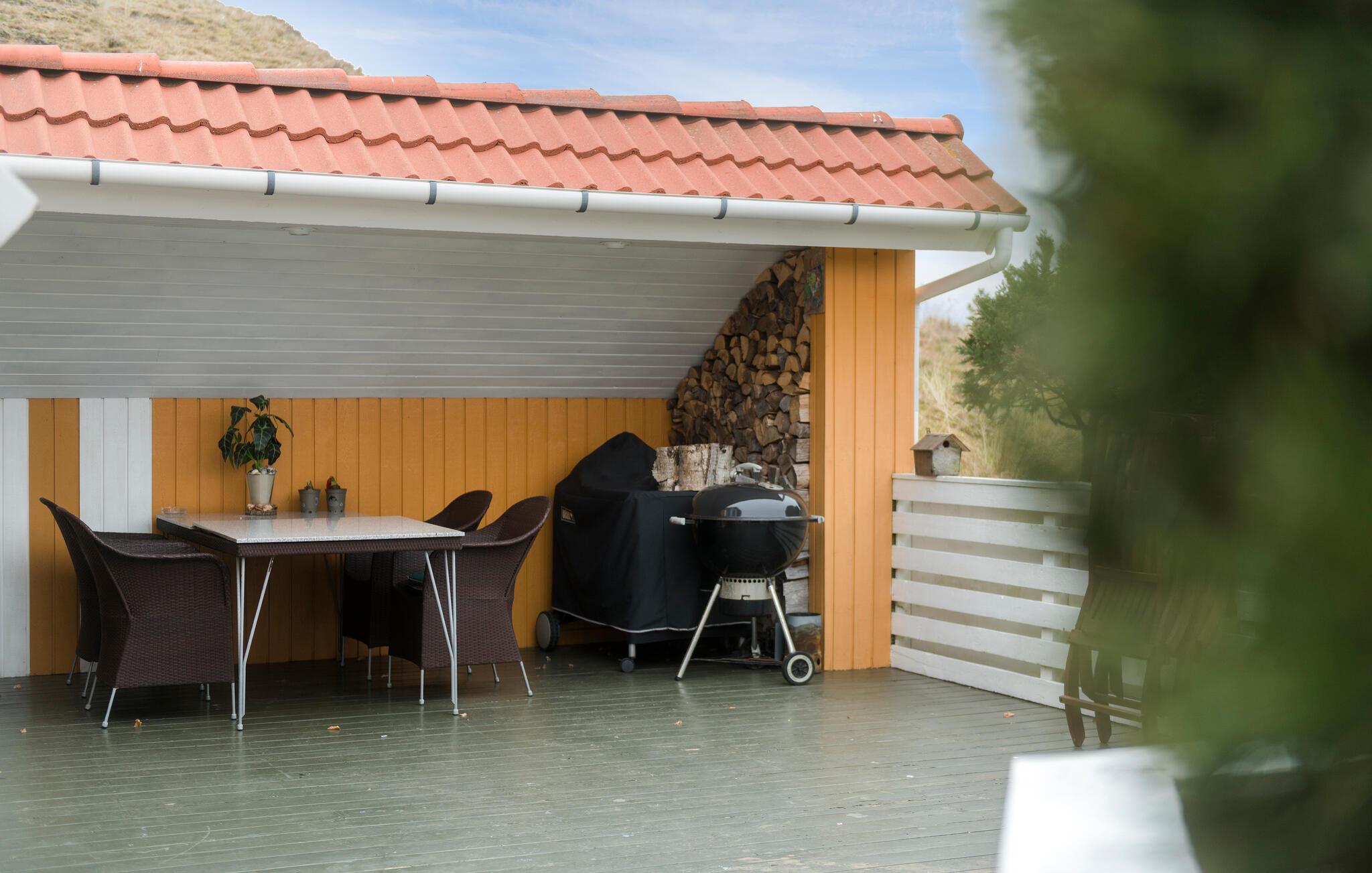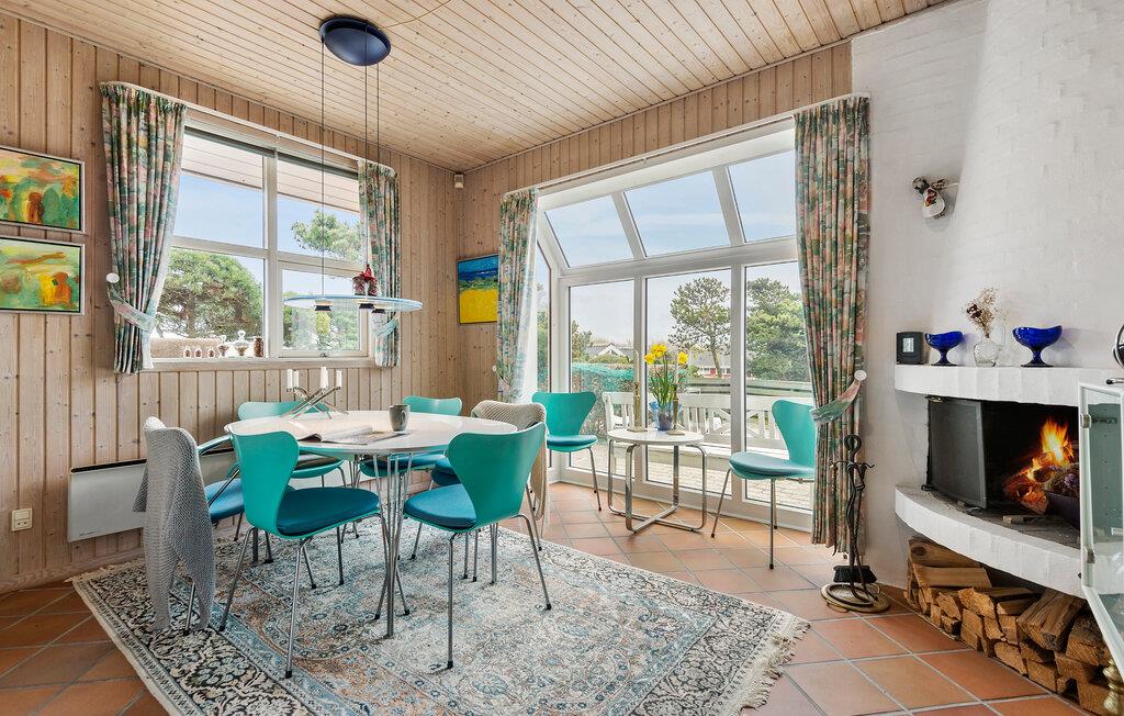 Dette charmerende sommerhus byder jer velkommen i en rolig og beskyttet beliggenhed. Den rummelige ejendom ligger lige ud til klitterne og tilbyder de bedste betingelser for en afslappende ferie med familien. Oplev det stilfulde interiør med kærligt afstemte detaljer. I opholdsstuen indbyder et stort sofahjørne til at blive hængende, hvor brændeovnen sørger for hyggelig varme på kølige dage. Nyd hyggelige timer med spil, gode samtaler eller en kop te med udsigten udenfor. På øverste etage finder I et ekstra retræterum under taget – lyst, roligt og med en smuk udsigt. Et sandt højdepunkt er det rummelige wellness-område med spabad og sauna.