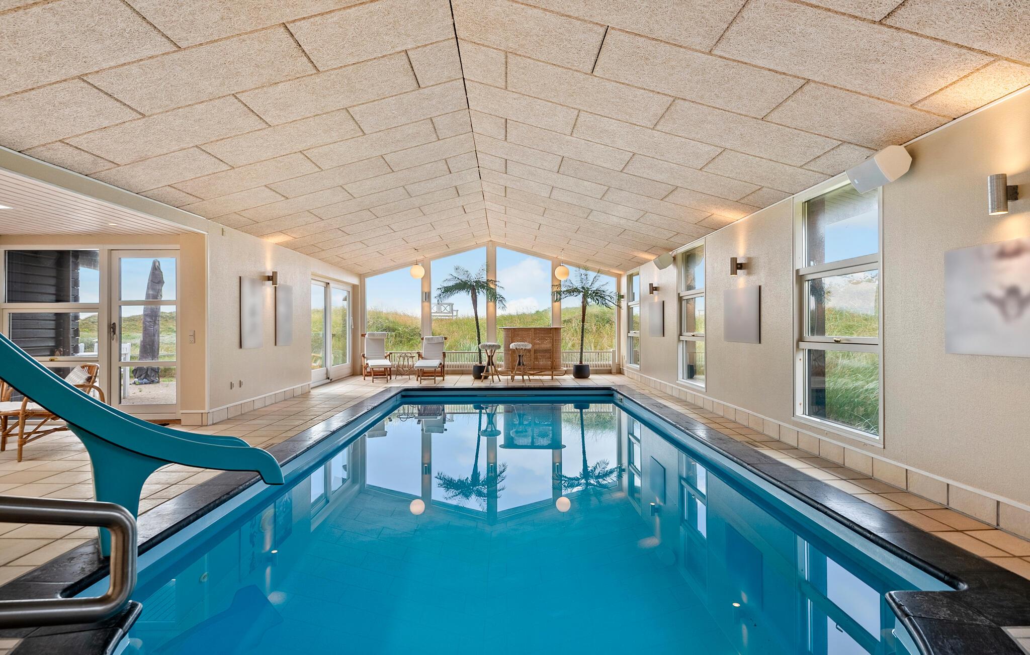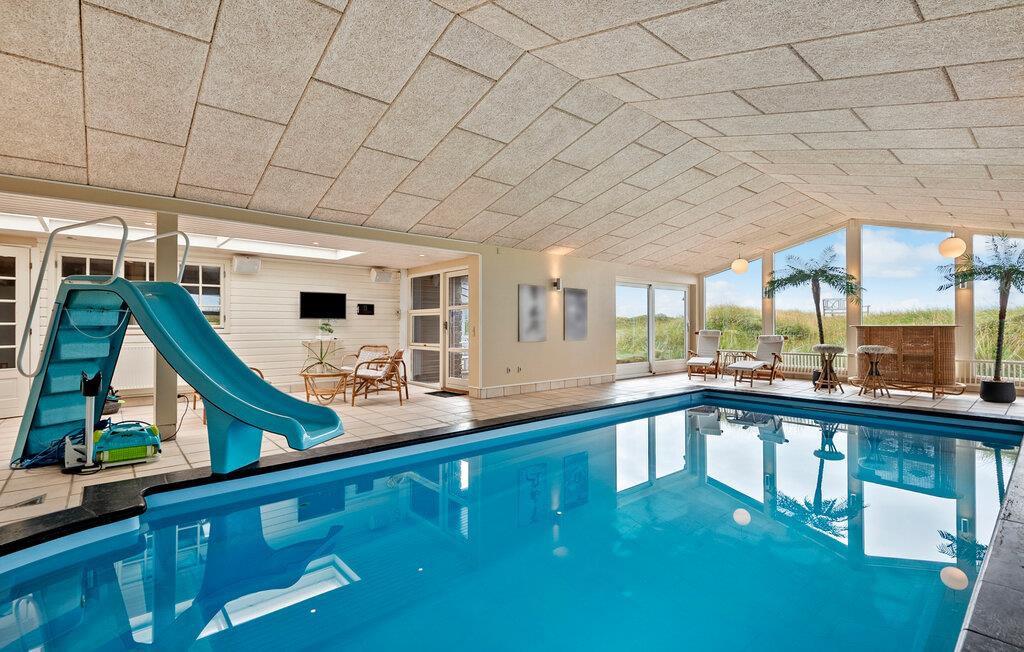 Fantastisk poolhus med sauna, klitudsigt og gode familievenlige faciliteter.