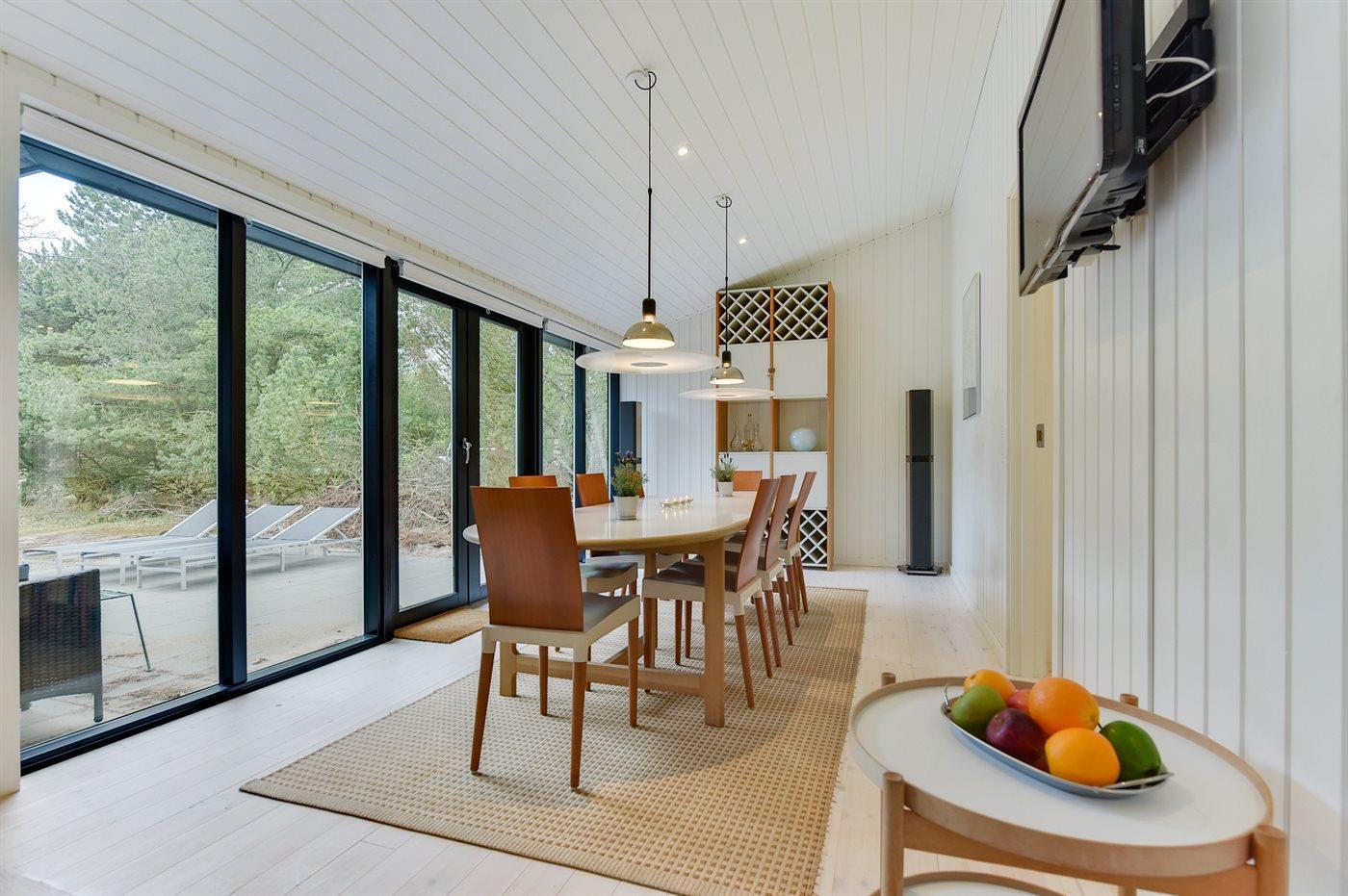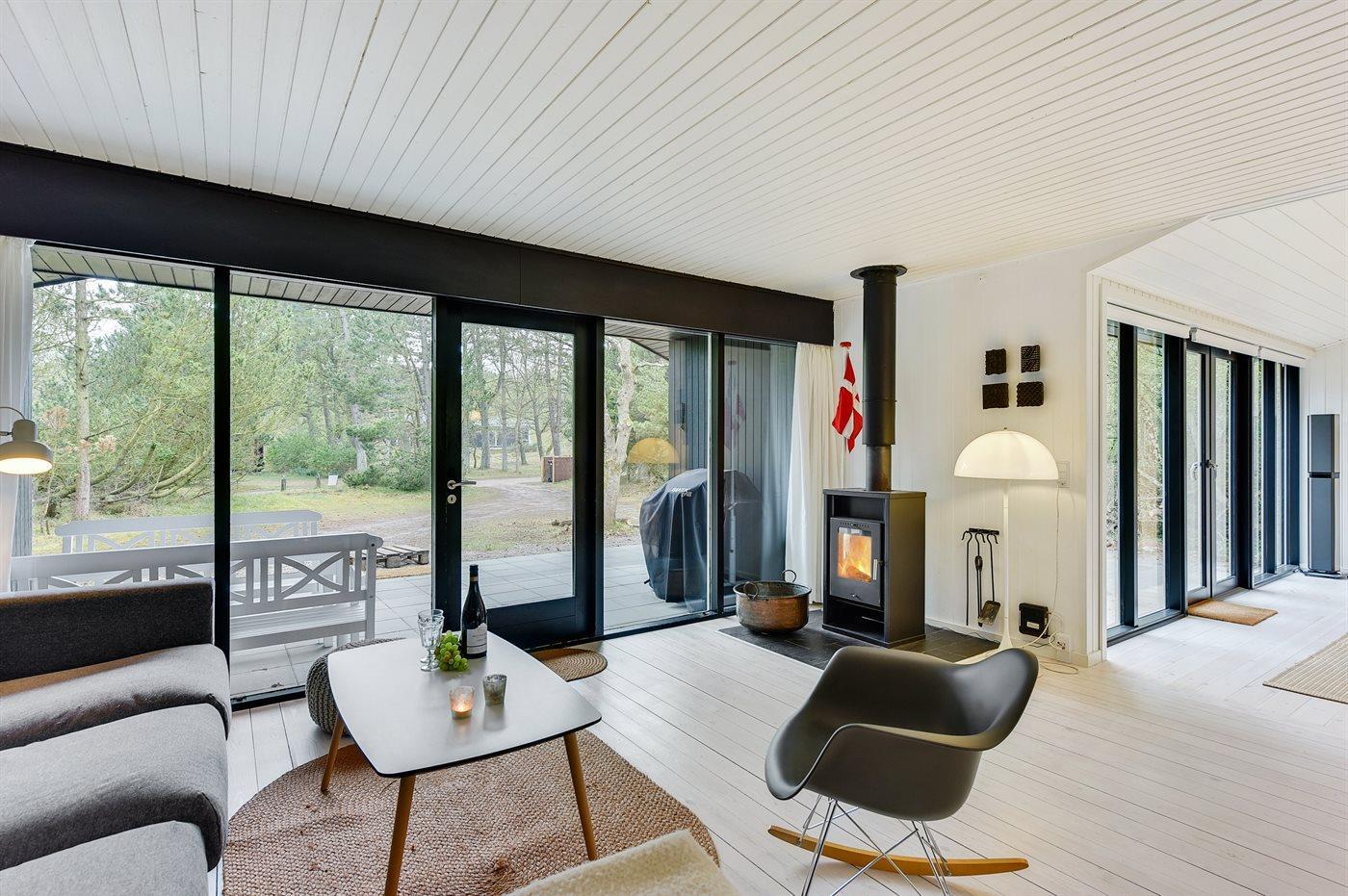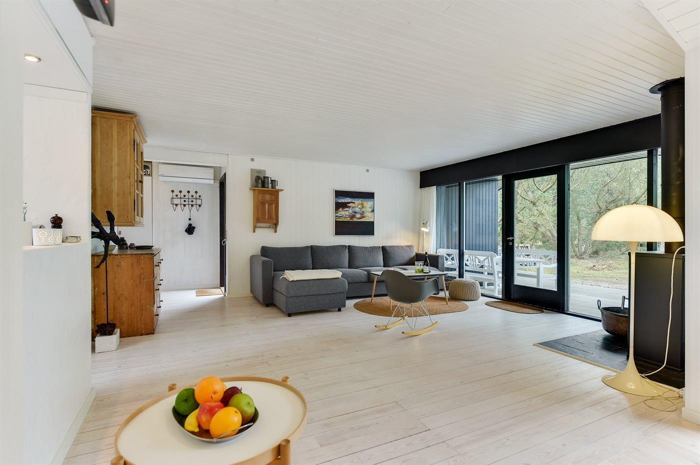 Idyllisk sommerhus tæt på skov og strand med moderne, skandinavisk indretning og stor naturgrund.