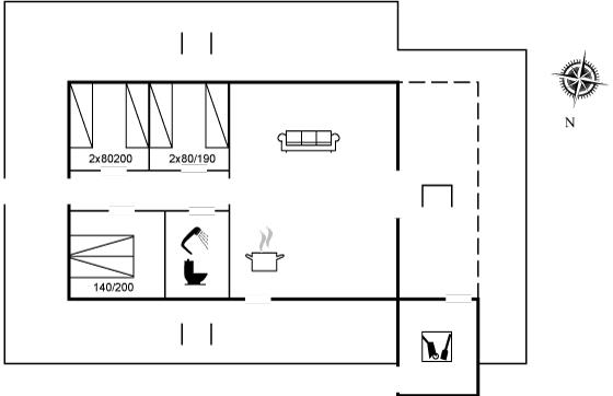 Der er i alt 3 soveværelser. Sovepladserne fordeler sig på: 2 sovepladser i dobbeltseng. 4 sovepladser i enkeltsenge.
