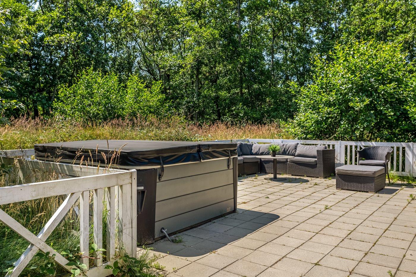 Der er mulighed for afslapning i udendørs standvandsspa til 5 personer.