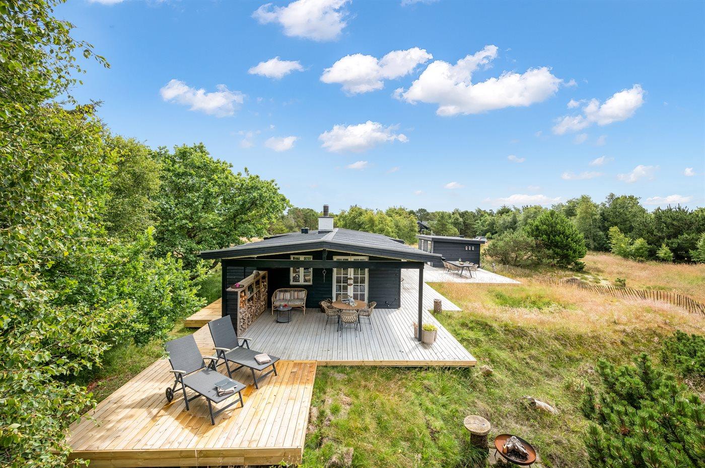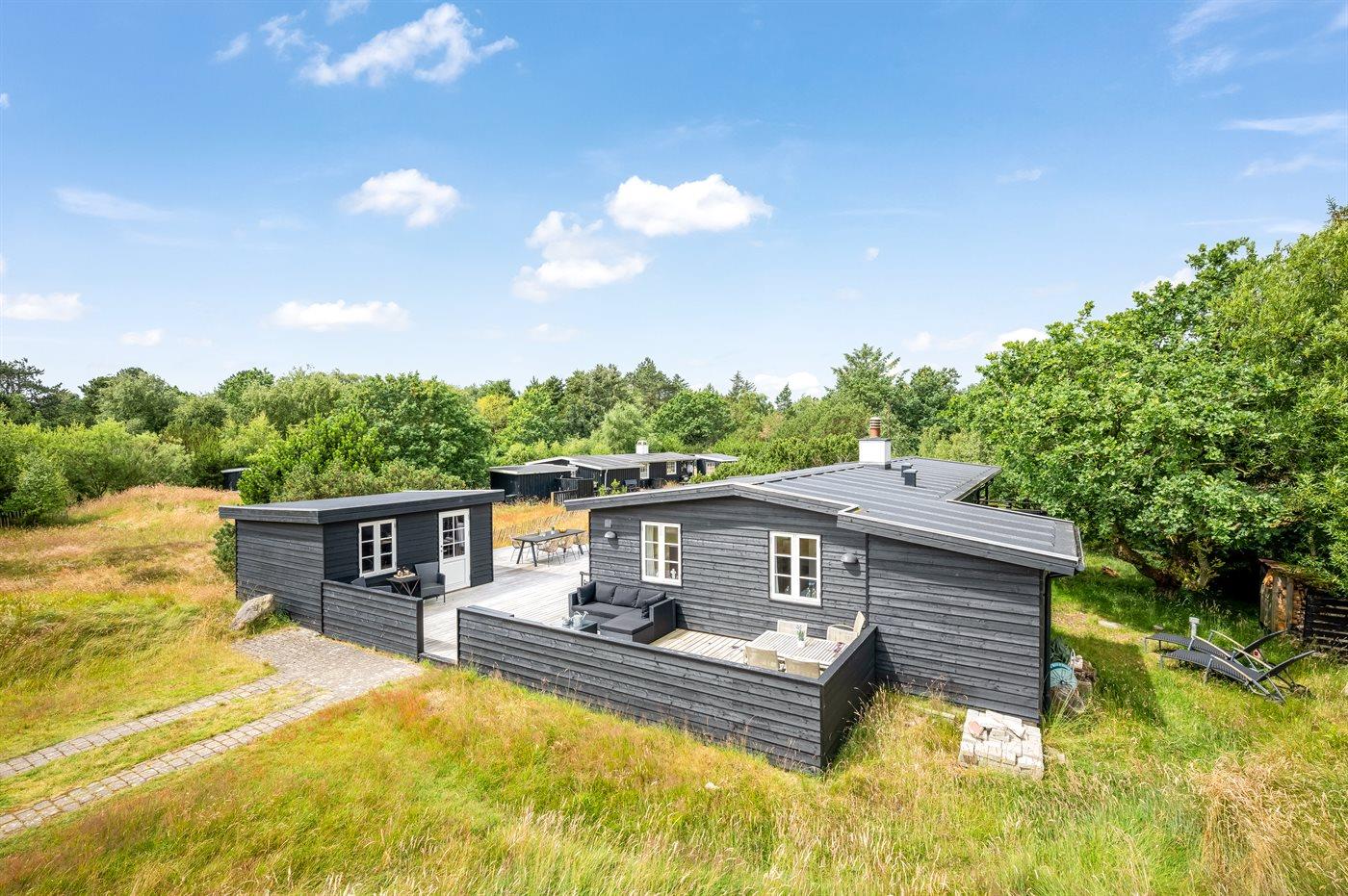 Charmerende feriehus på Fanø med naturgrund, tæt på strand, butik og naturoplevelser.