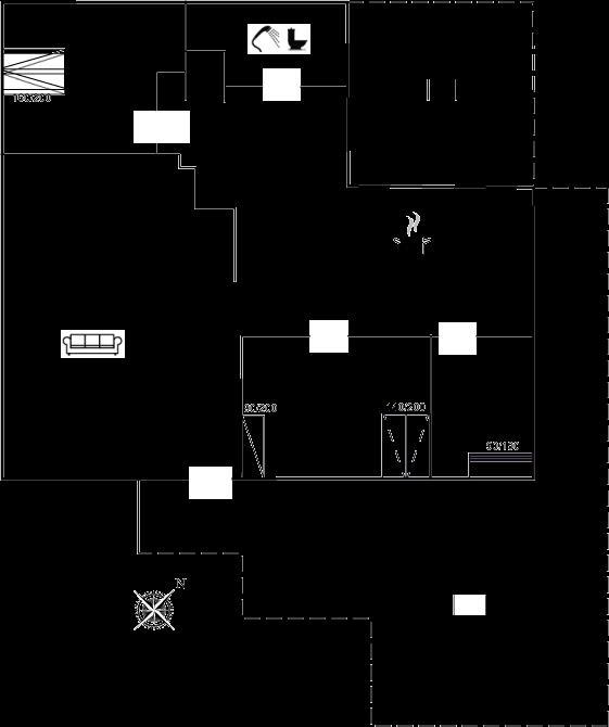 Køkkenet er udstyret med 1 køleskab. Der er 4 elkogeplader, varmluftovn, mikrobølgeovn samt opvaskemaskine.