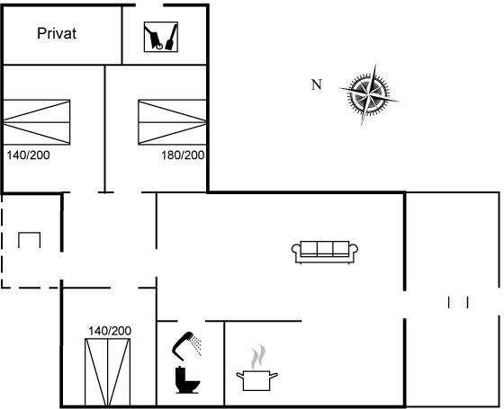Der er i alt 3 soveværelser. Sovepladserne fordeler sig på: 6 sovepladser i dobbeltsenge. Derudover er der 1 stk. barneseng.