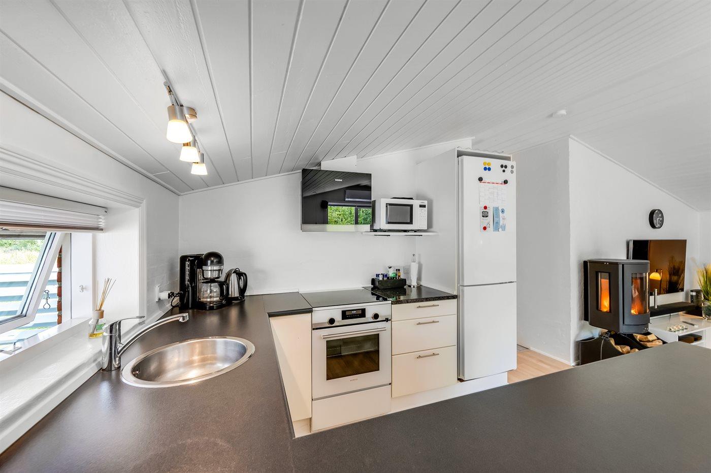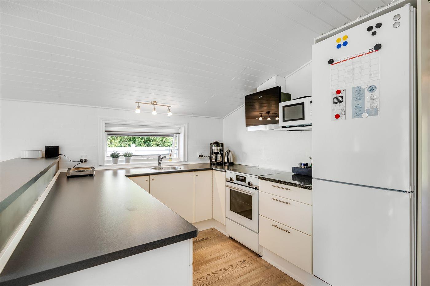Pænt køkken med alle nødvendige køkkenredskaber, induktionskogeplade, varmluftovn, opvaskemaskine, dejligt køle/frys og mikroovn.