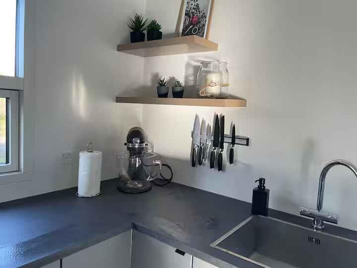 Nyrenoveret sommerhus tæt på fjorden med moderne faciliteter og hyggelig have.