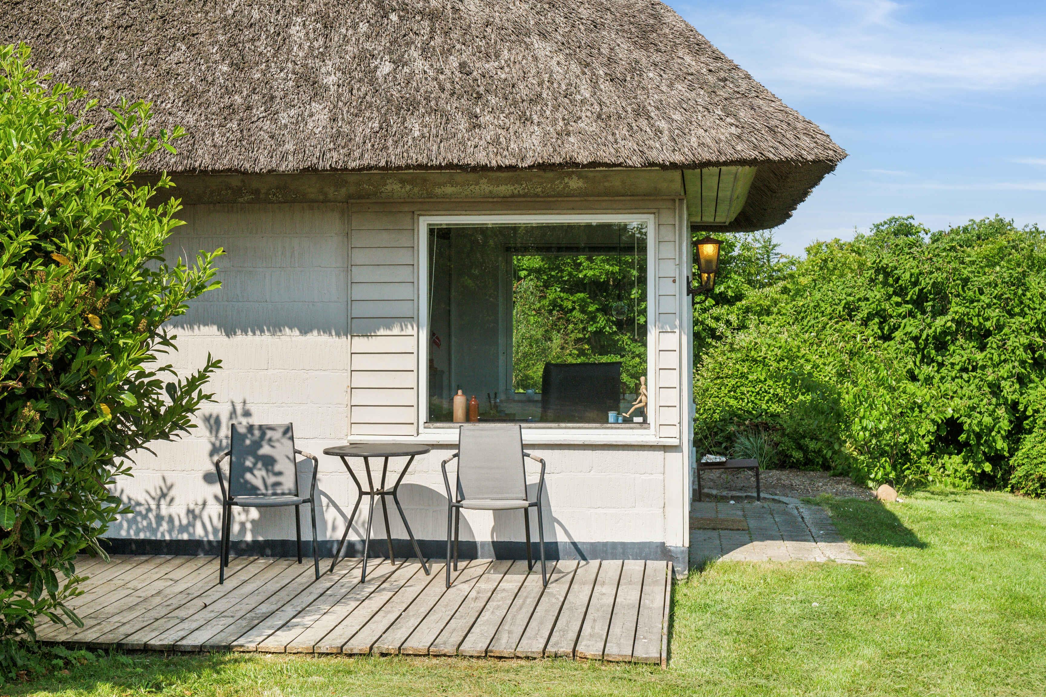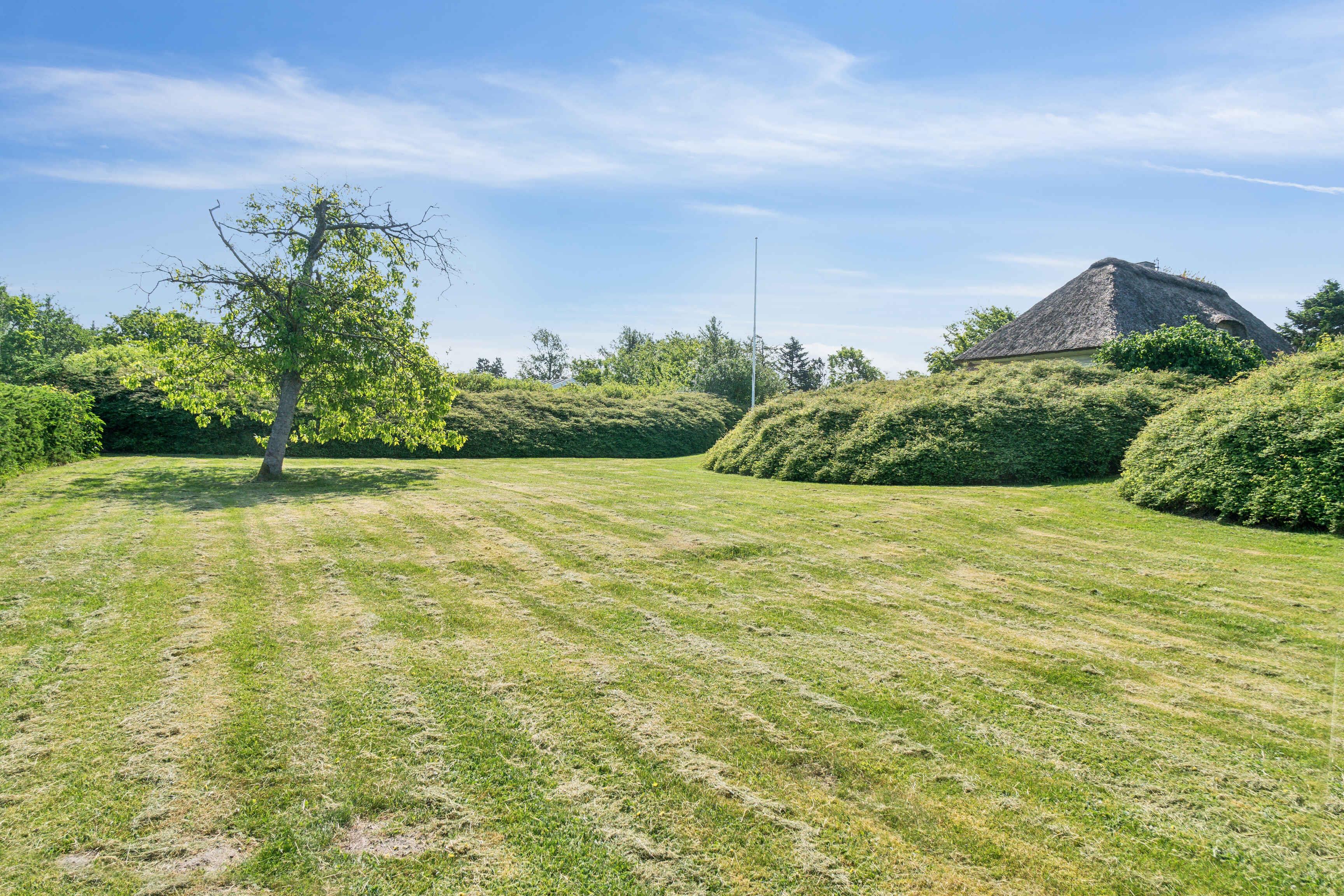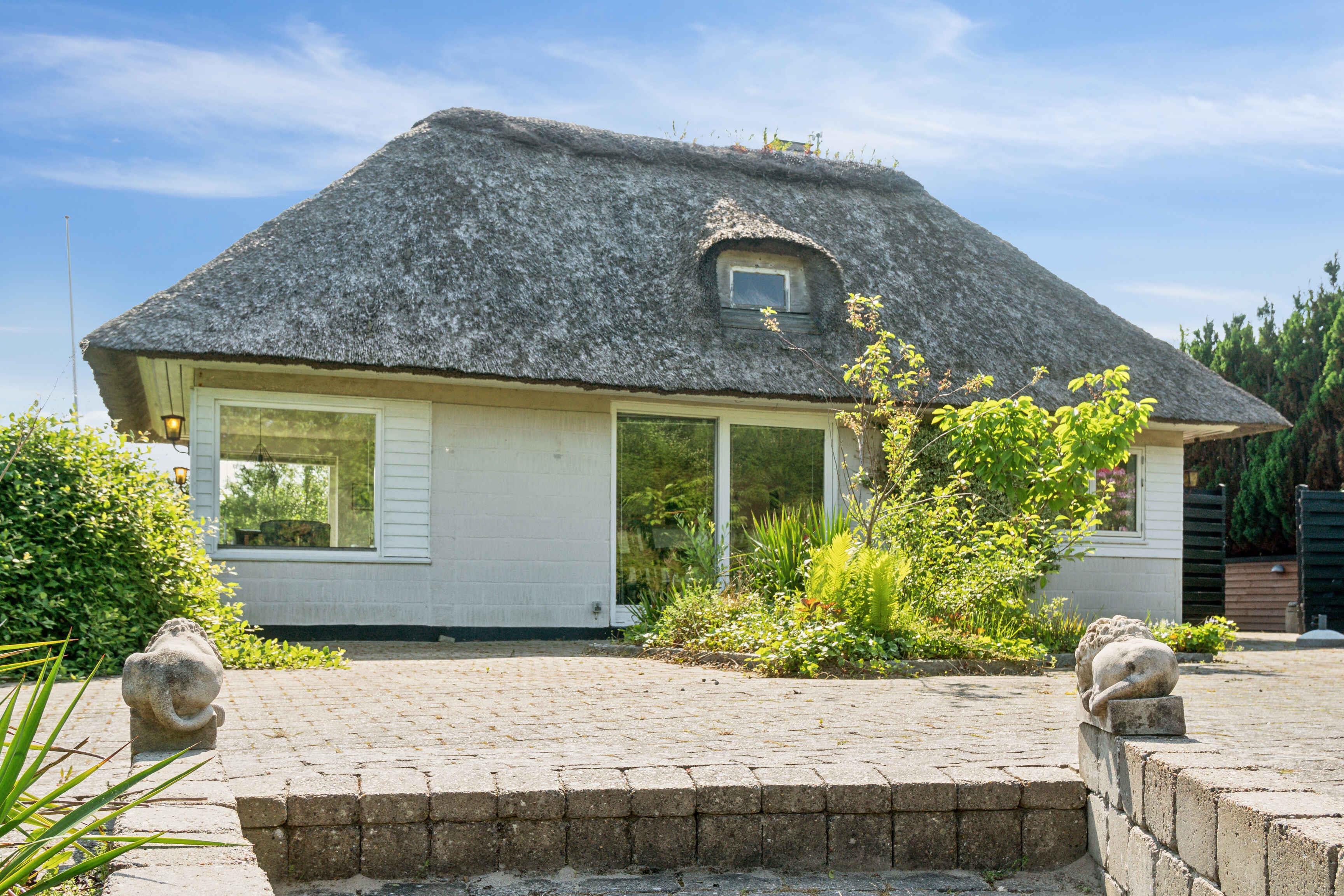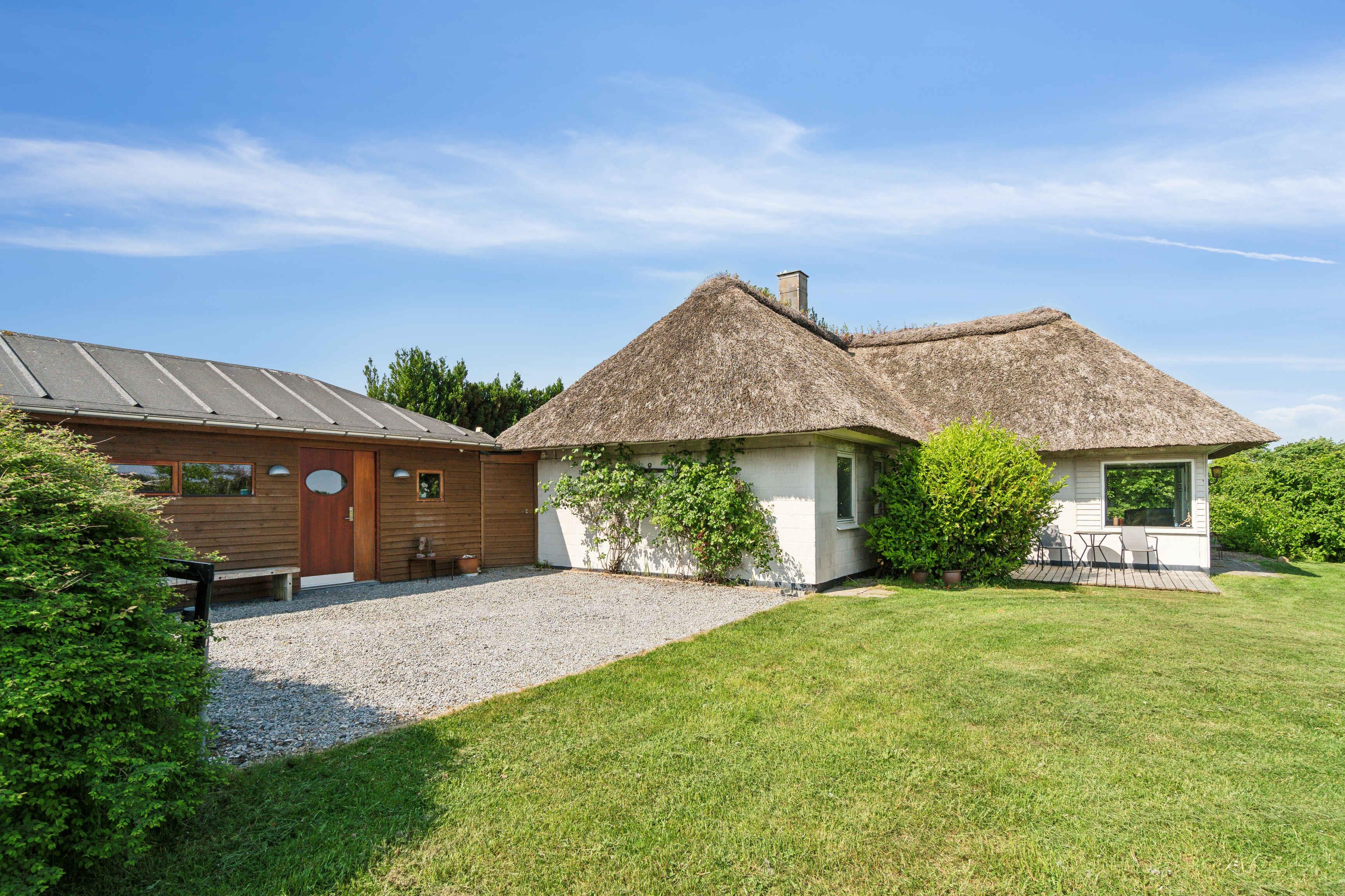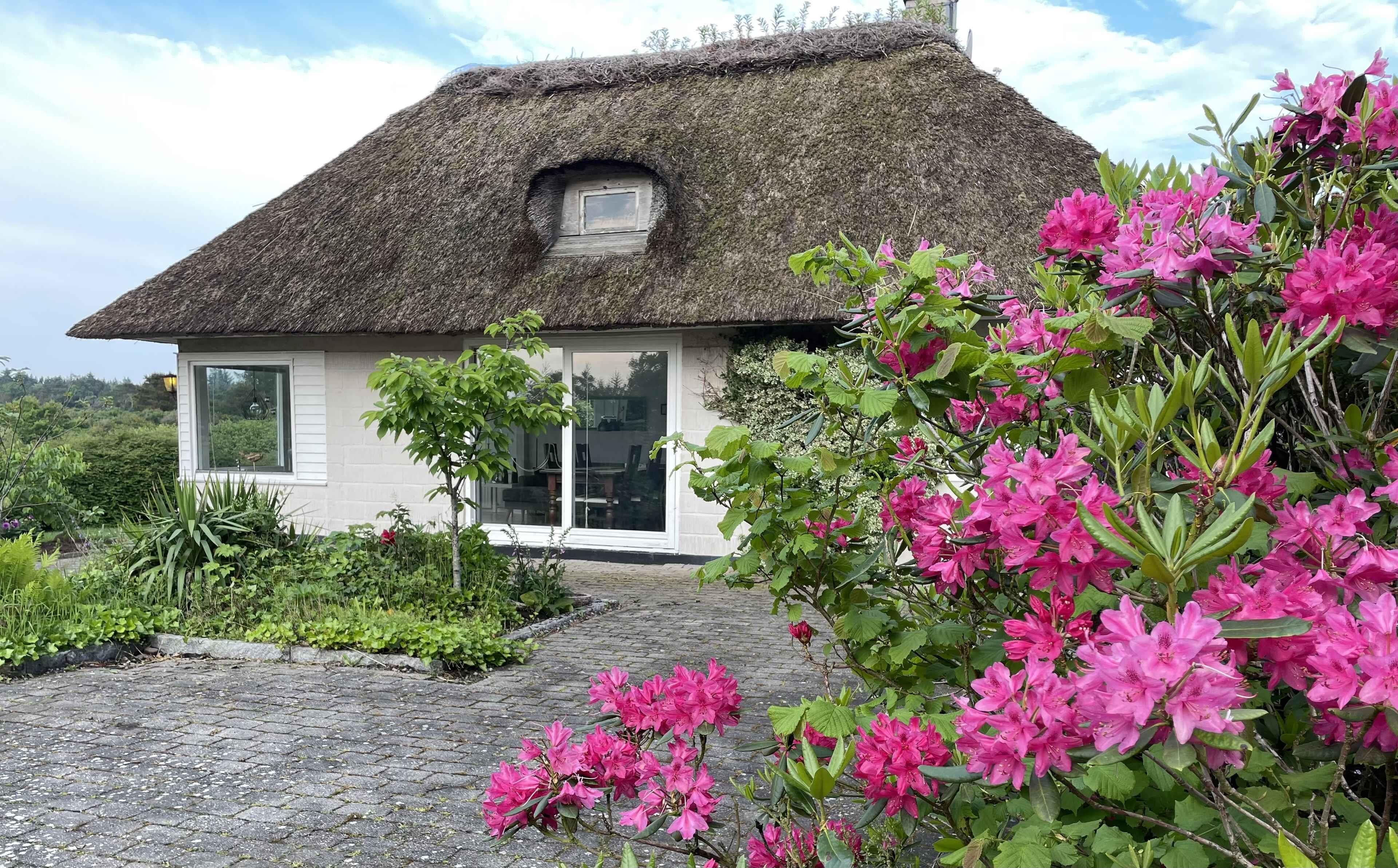 Charmerende stråtækt feriehus ved fredede naturarealer og strand, perfekt til ro og naturoplevelser.