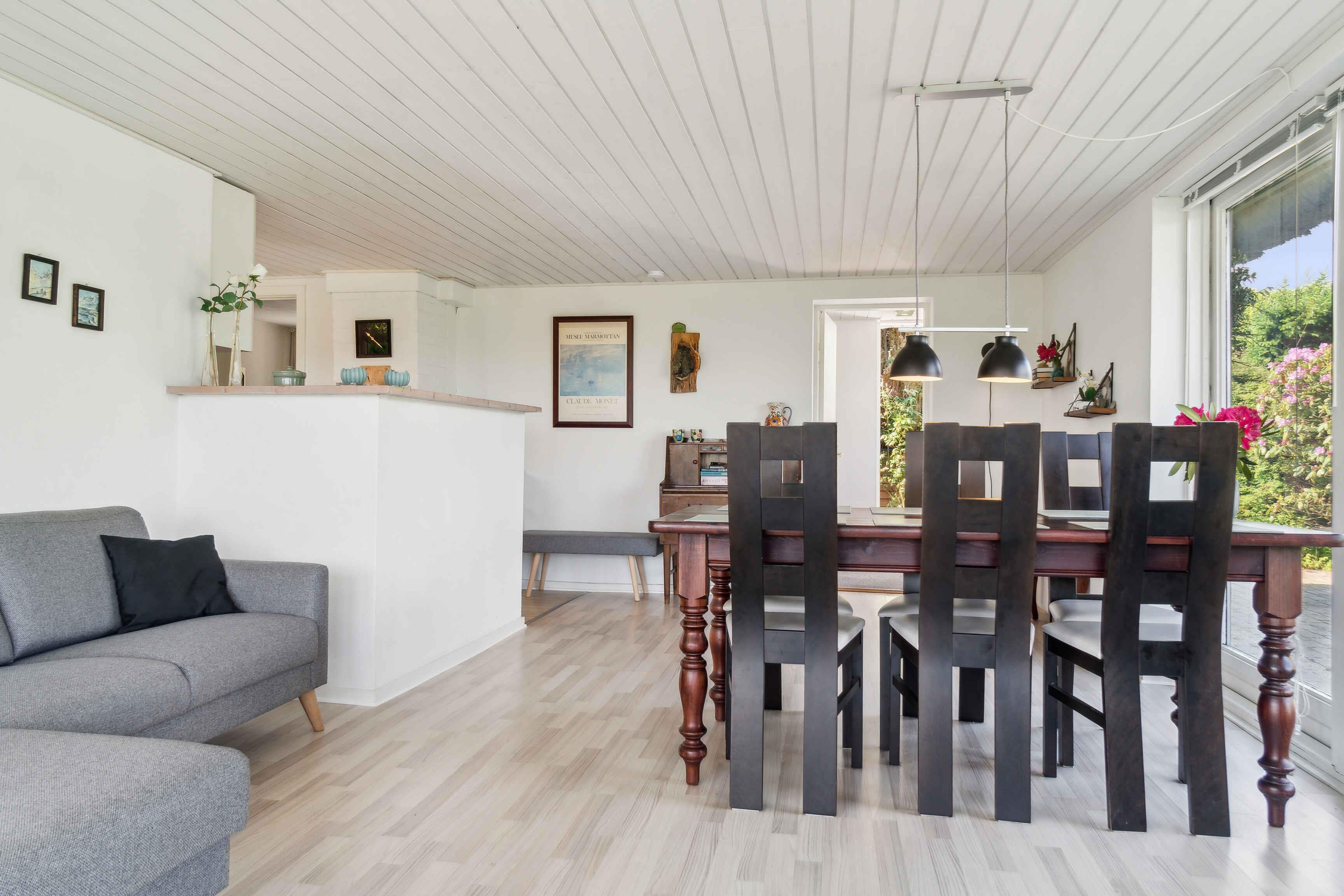 Dette charmerende stråtækte feriehus præsenterer en idyllisk tilbagetrukket oase i det smukke Ertebølle-landskab, med en beliggenhed der grænser op til fredede naturarealer. Med sin enestående placering, indbyder huset til en uforglemmelig ferieoplevelse, hvor roen og skønheden i naturen går hånd i hånd. Fra det øjeblik du ankommer, bliver du mødt af en følelse af ro og fred, da huset ligger ugeneret og omgivet af den naturlige skønhed, der kendetegner området. Et stenkast væk finder du stranden, hvor du kan nyde stille gåture langs kysten eller fordybe dig i det forfriskende havvand. Fra haven kan du nyde betagende udsigter over fjorden, der tilføjer en ekstra dimension til dit ophold. Terrasser i forskellige niveauer og en hyggelig lukket gårdhave giver dig mulighed for at nyde udendørslivet i fulde drag, uanset om du ønsker at grille under åben himmel eller bare slappe af med en god bog og en kop kaffe. Indendørs byder huset på en rummelig opholdsstue med en elegant spiseafdeling, hvor store vinduespartier åbner op for lyset og naturens skiftende farver. Fra stuen er der direkte adgang til terrasserne og haven, hvilket skaber en sømløs forbindelse mellem indendørs og udendørs rum. Køkkenet, der er adskilt fra stuen af en halvvæg, er veludstyret med alt det nødvendige for at tilberede lækre måltider lavet af lokale råvarer. Et moderne badeværelse med gulvvarme tilbyder komfort og bekvemmelighed, mens de tre hyggelige soveværelser og en lille entré fuldender boligens indretning. En separat bygning rummer et praktisk bryggers med vaskemaskine og tørretumbler, hvilket gør det nemt at holde orden under dit ophold. Dette feriehus er det ideelle tilflugtssted for dem, der søger både fred og afslapning samt dem, der ønsker at udforske og være aktive i naturen. Uanset om du foretrækker at slentre langs de nærliggende stier, tage på opdagelse i det omkringliggende landskab eller bare sætte dig til rette i haven og lade tankerne flyde, vil dette feriehus fortrylle dig med sin autentiske charme og skønhed.