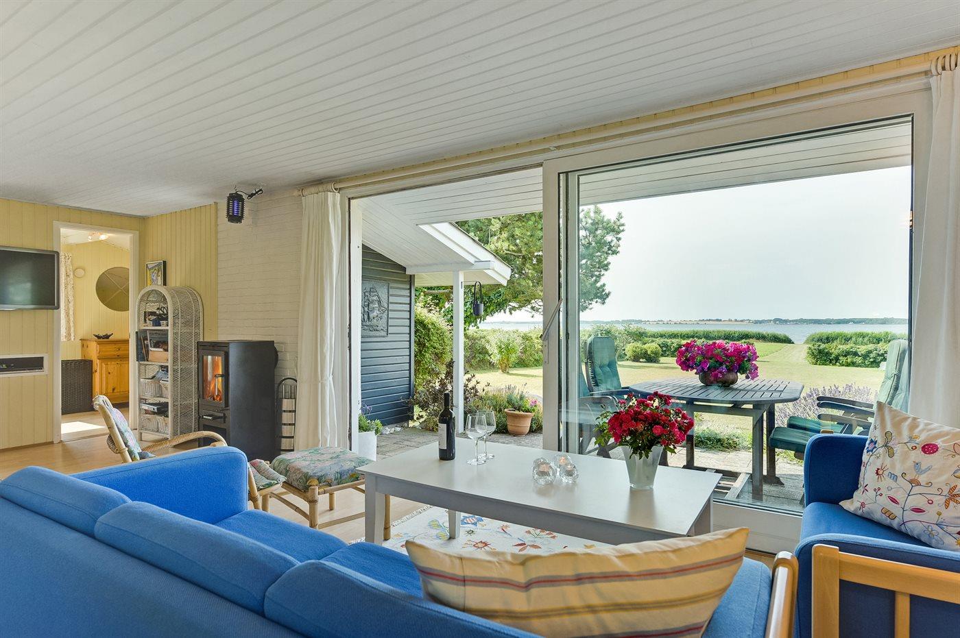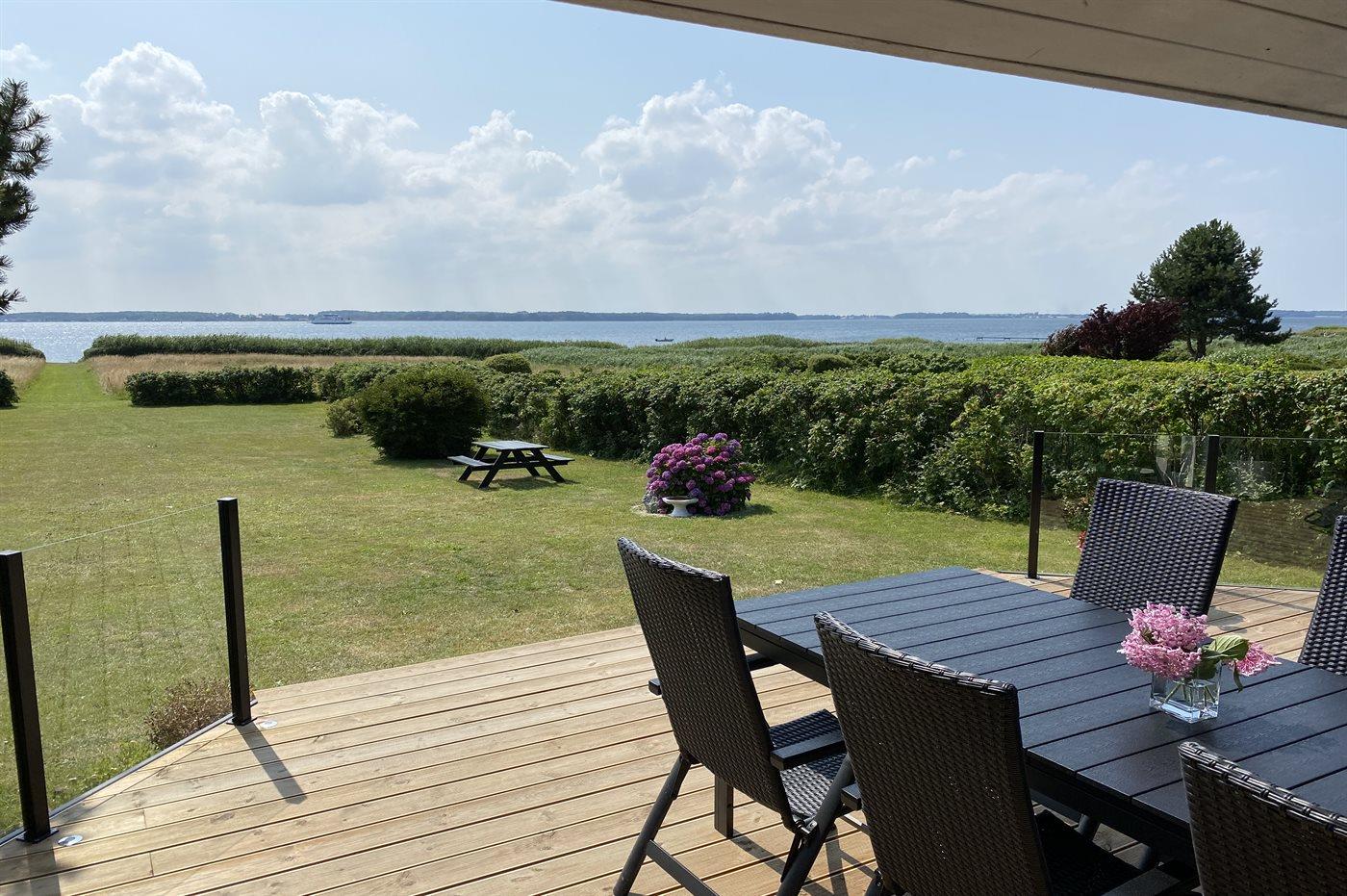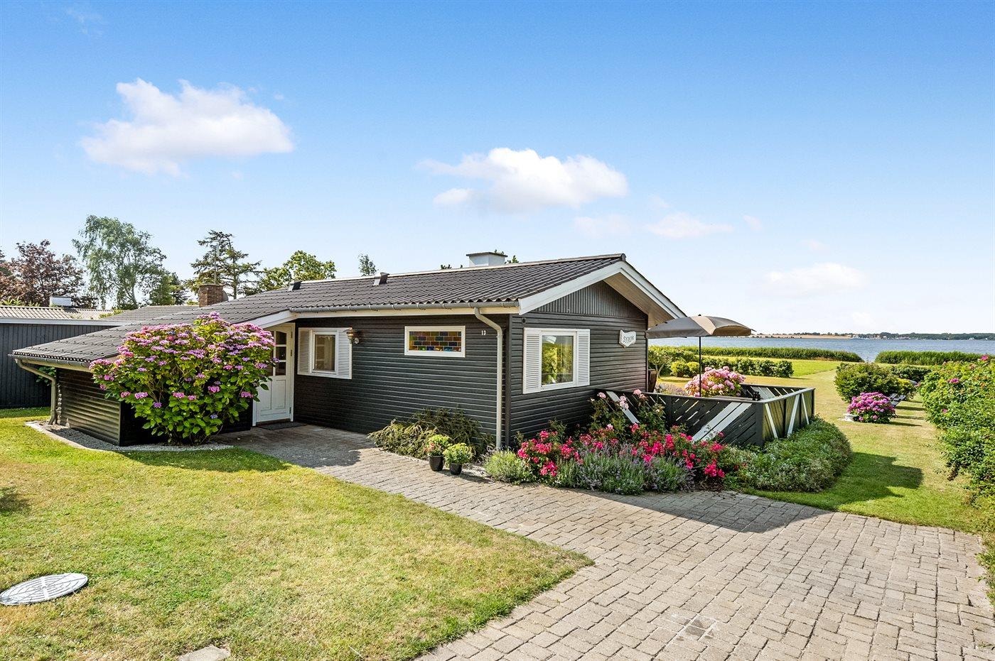 Dejligt sommerhus beliggende direkte ud til vandet med havudsigt fra såvel hus som grund.