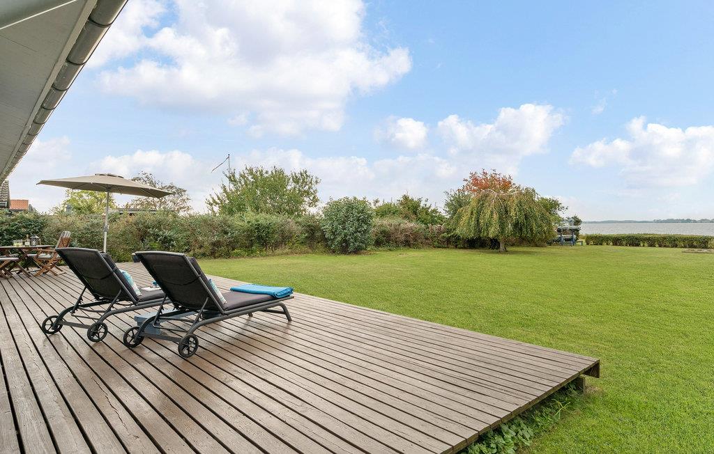 Charmerende sommerhus på Fejø med panoramaudsigt over vandet og stor terrasse.