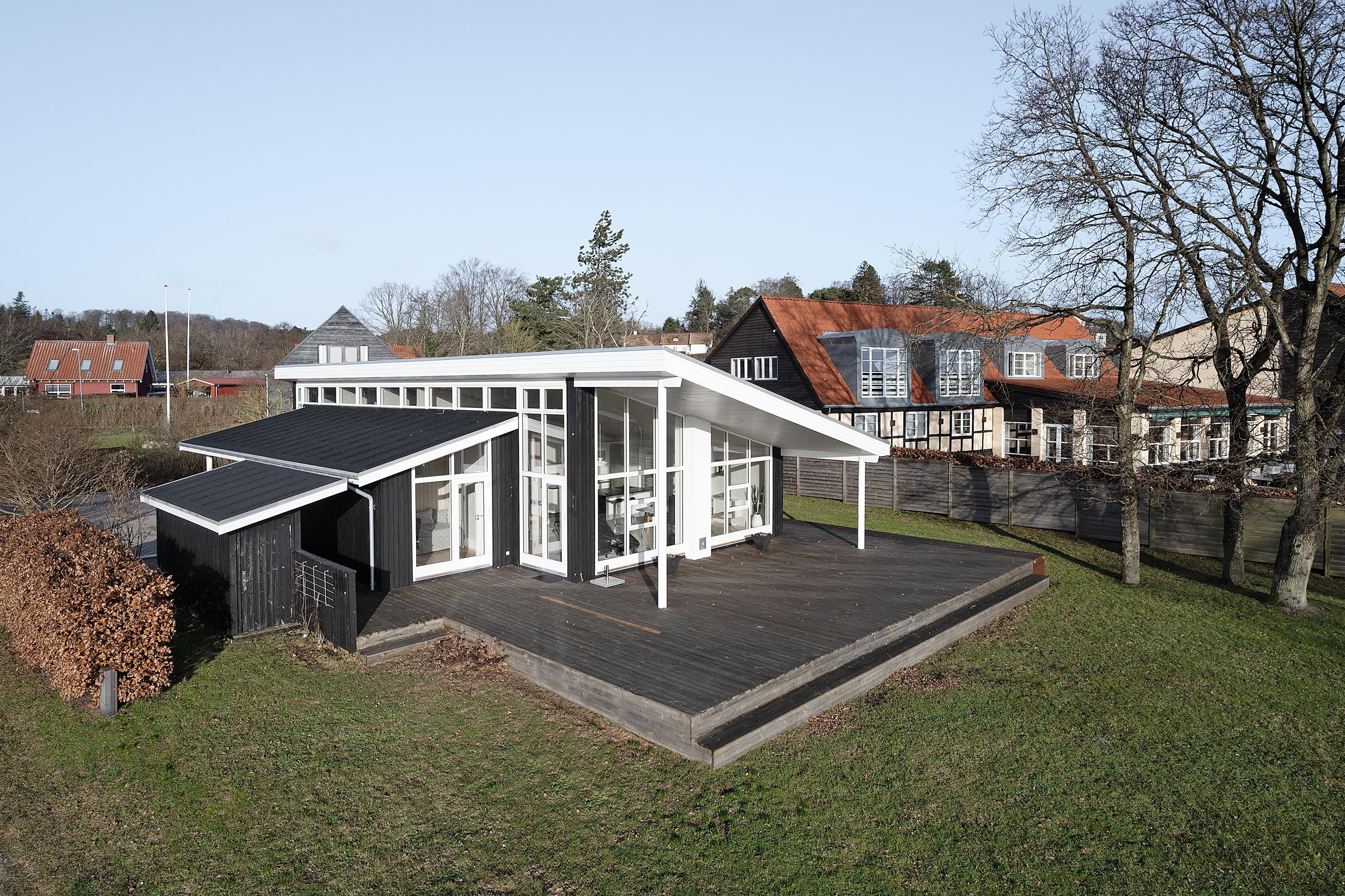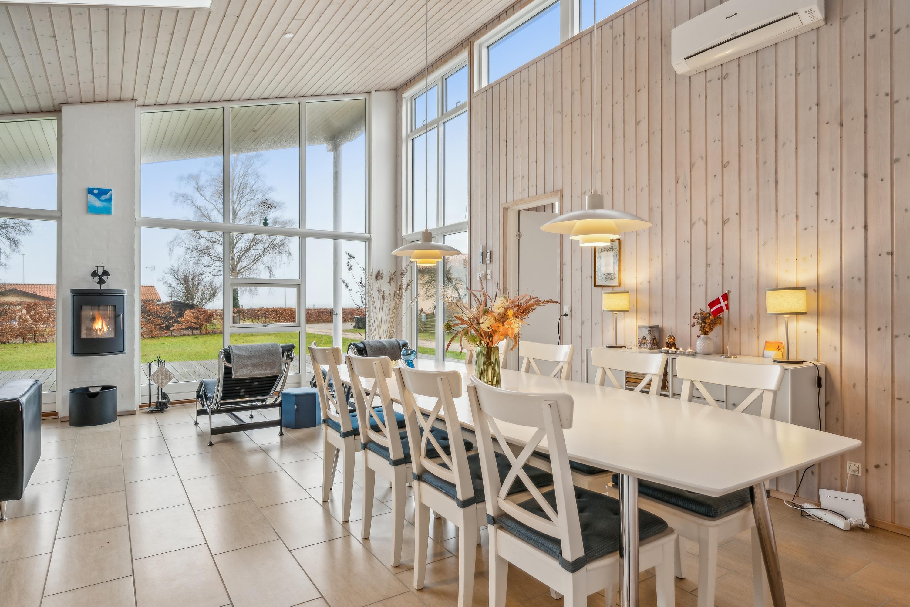 Flot feriehus ved Femmøller strand med terrasse, spa, brændeovn og udsigt til vandet i naturskønne omgivelser.