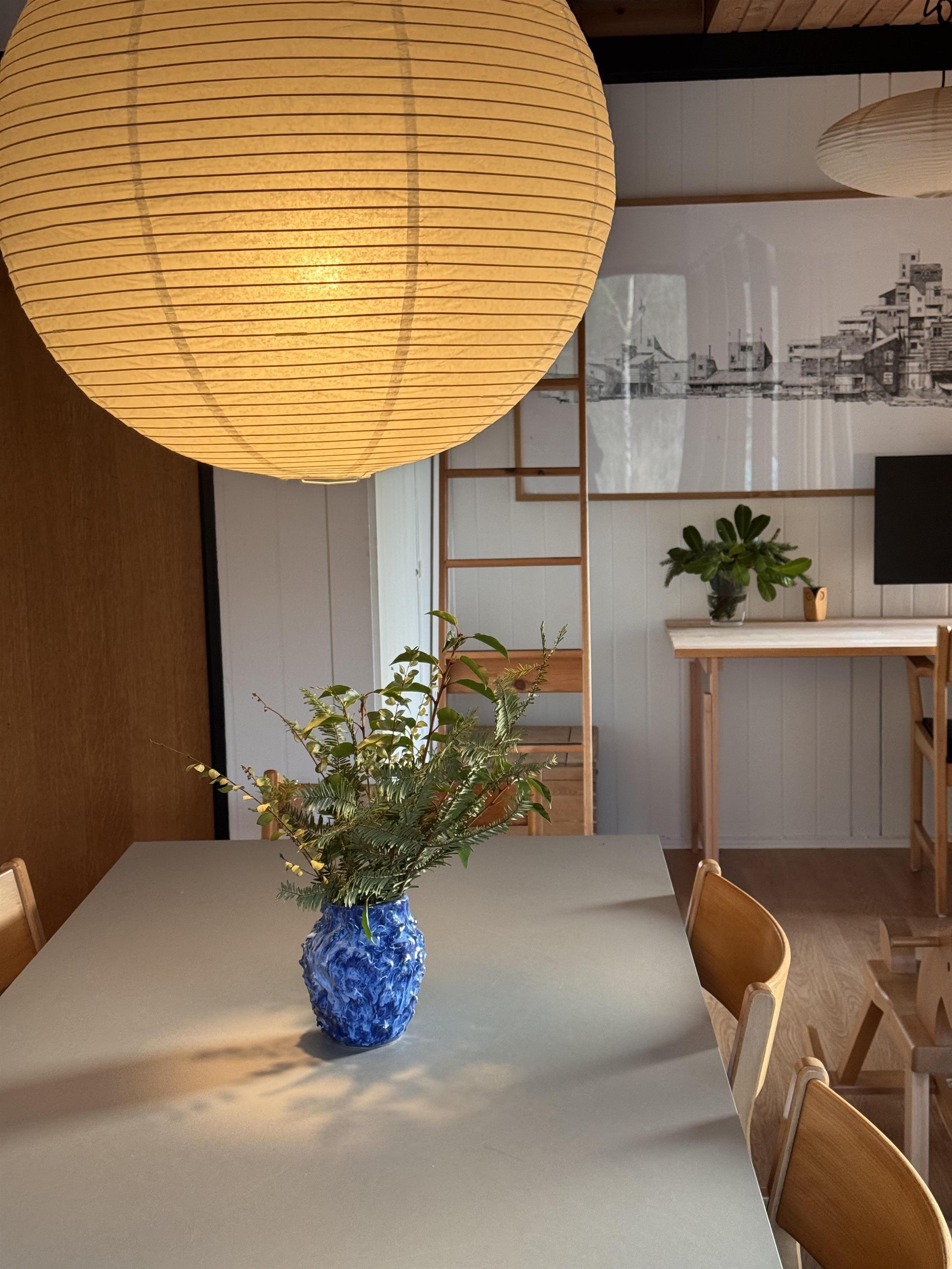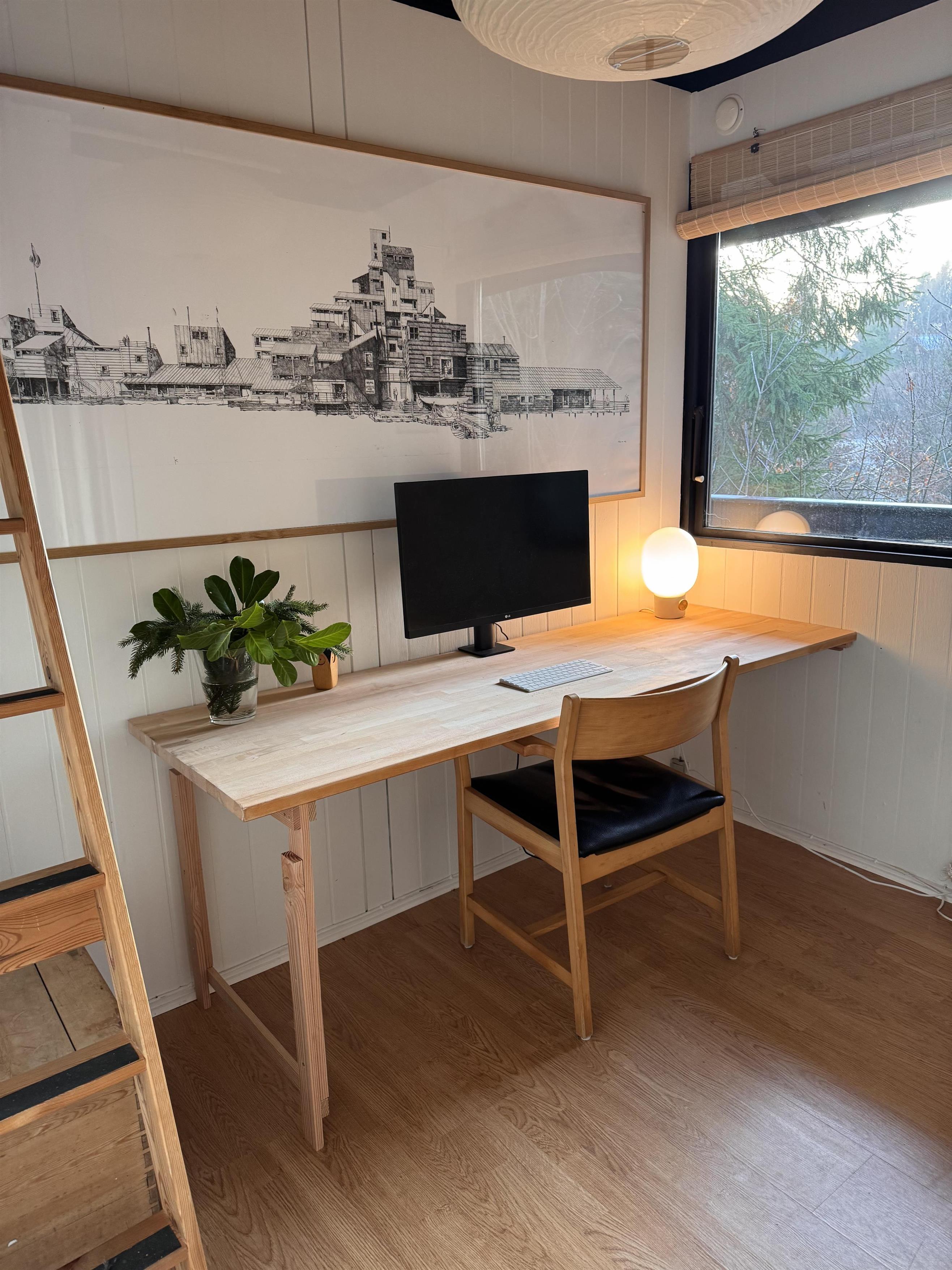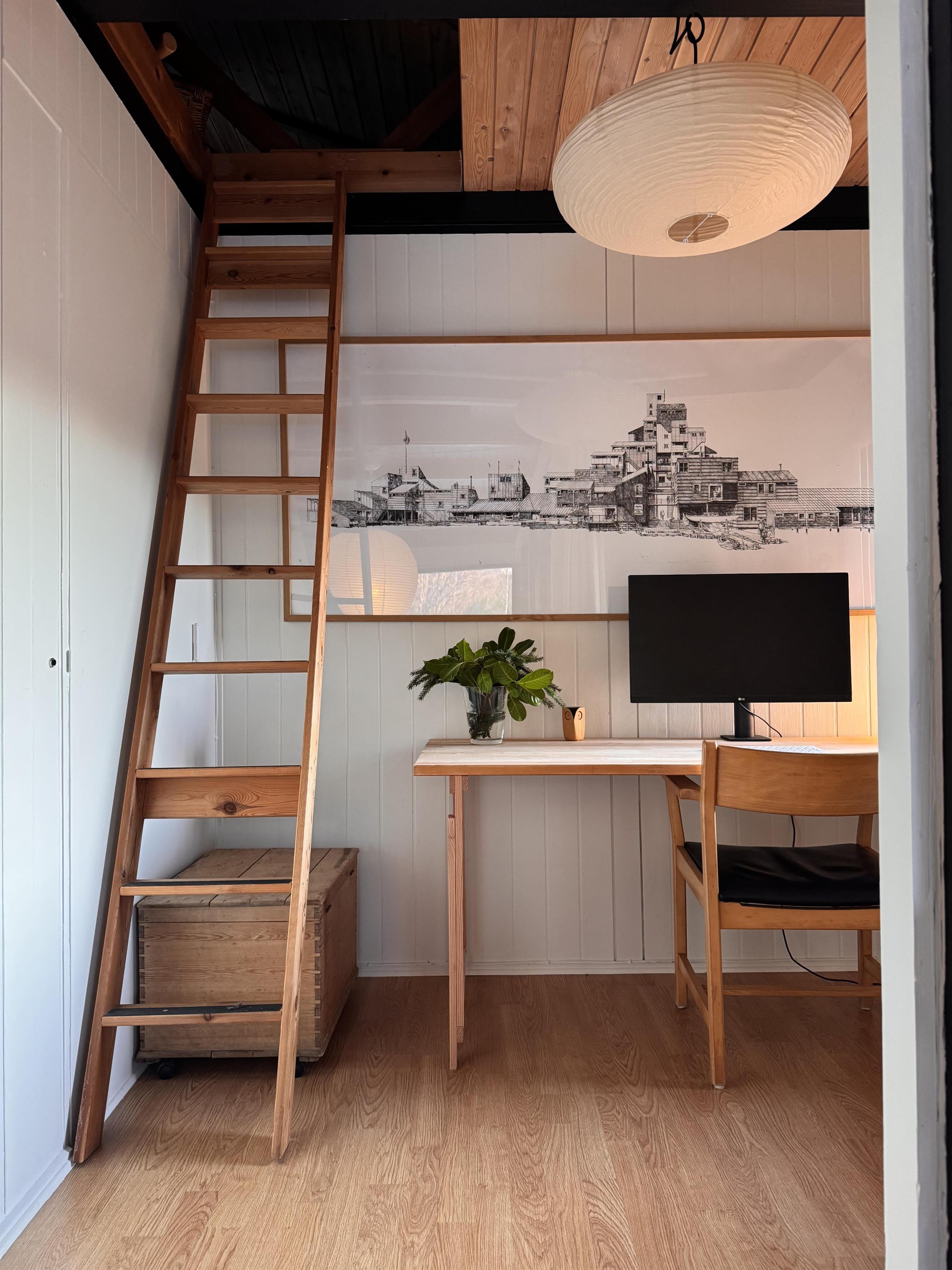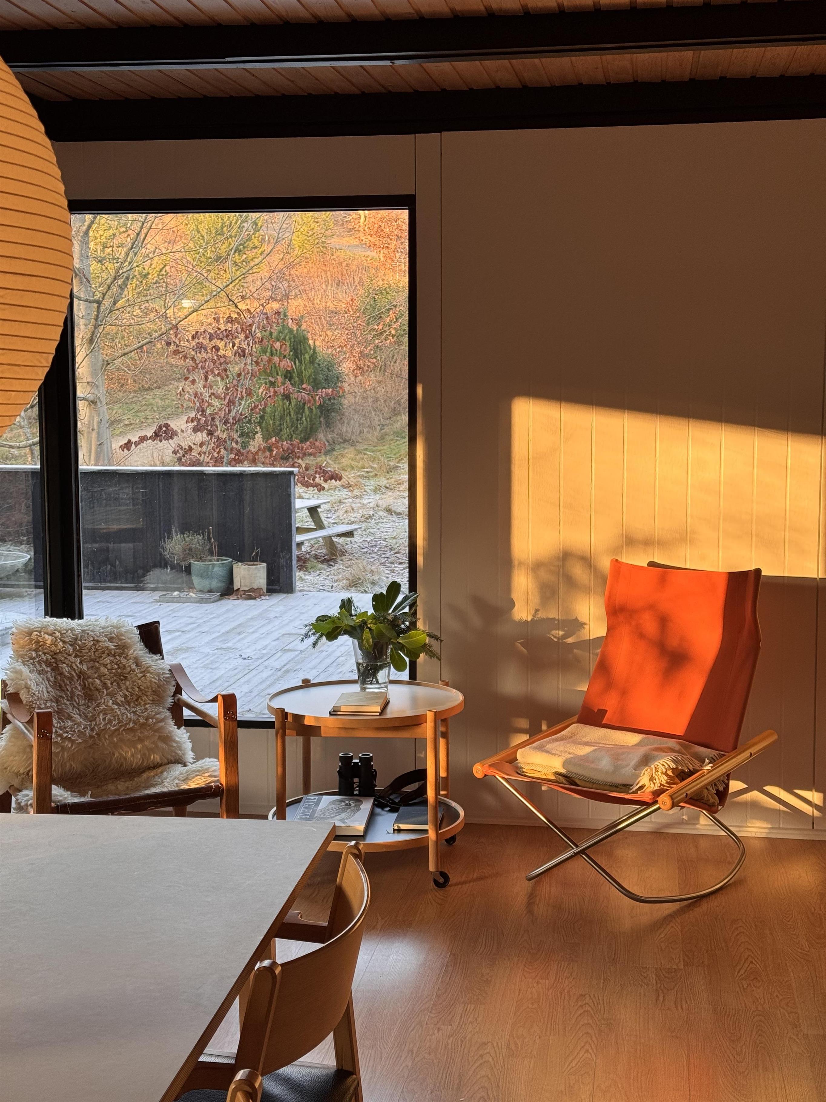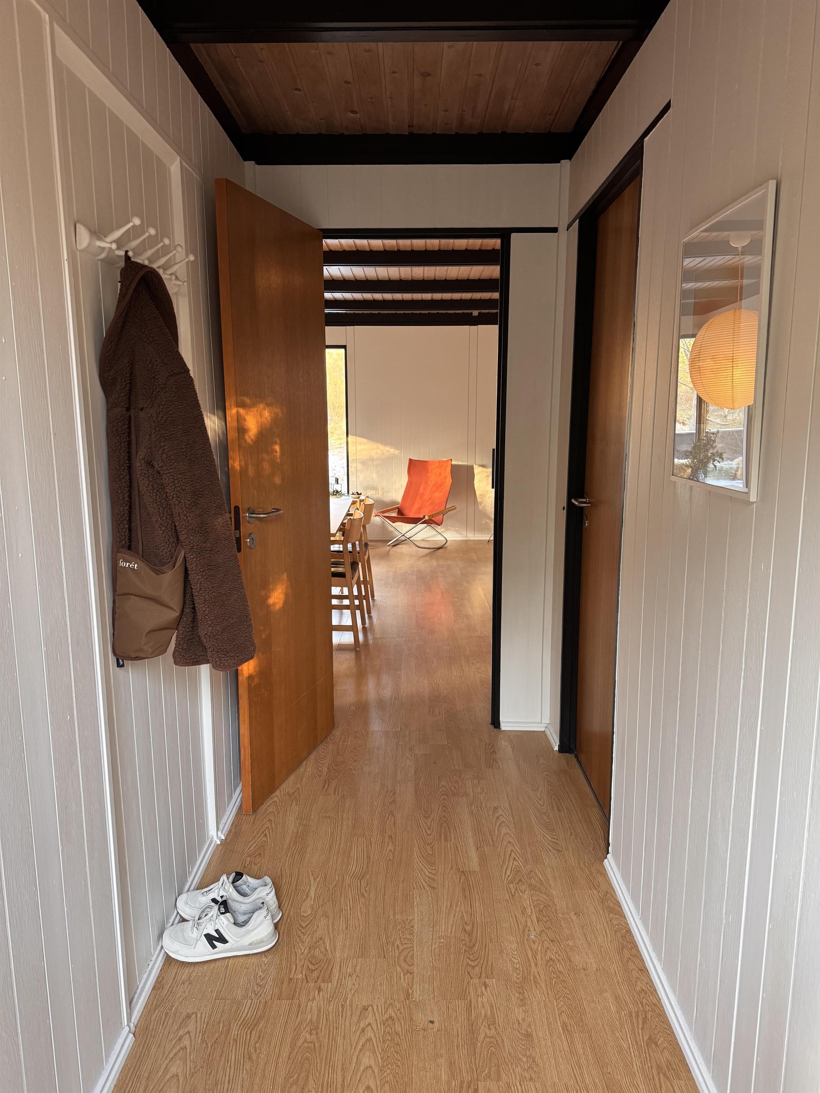 Huset fremstår overalt åbent og indbydende med masser af lysindfald. Den smukt og enkelt møblerede opholdsstue med udgang til terrasse ligger i åben forbindelse med køkken og har spiseafdeling til 5 personer - 3 voksne og 2 børn, brændeovn, samt fladskærms-TV med chromecast – bemærk, at der ingen kanaler er tilkoblet, alt indhold skal streames fra PC eller andet medie. Nyere lækkert køkken med keramiske kogeplader, ovn, køle-/fryseskab og opvaskemaskine. Husets 5 sovepladser fordeler sig på 1 værelse med dobbeltseng og 1 værelse med 2 enkeltsenge, beregnet til børn, samt en sovesofa i stuen. Pænt, oprindeligt badeværelse med bruseniche og vaskemaskine. Huset har varmepumpe med aircondition. Der er barnestol til de mindste. Internetadgang.