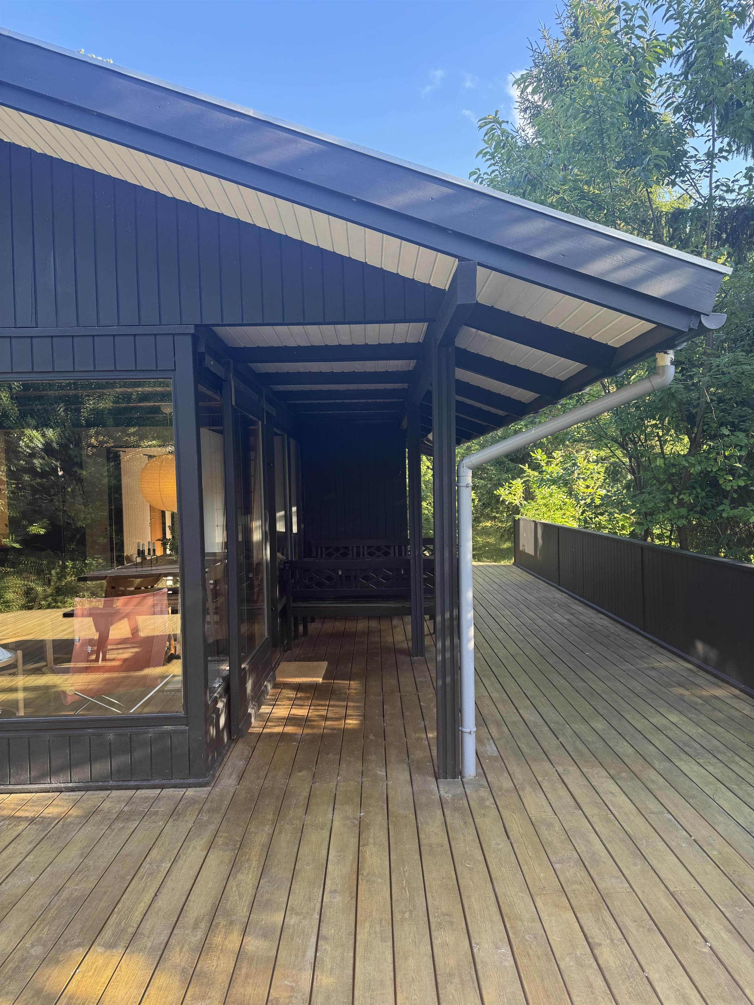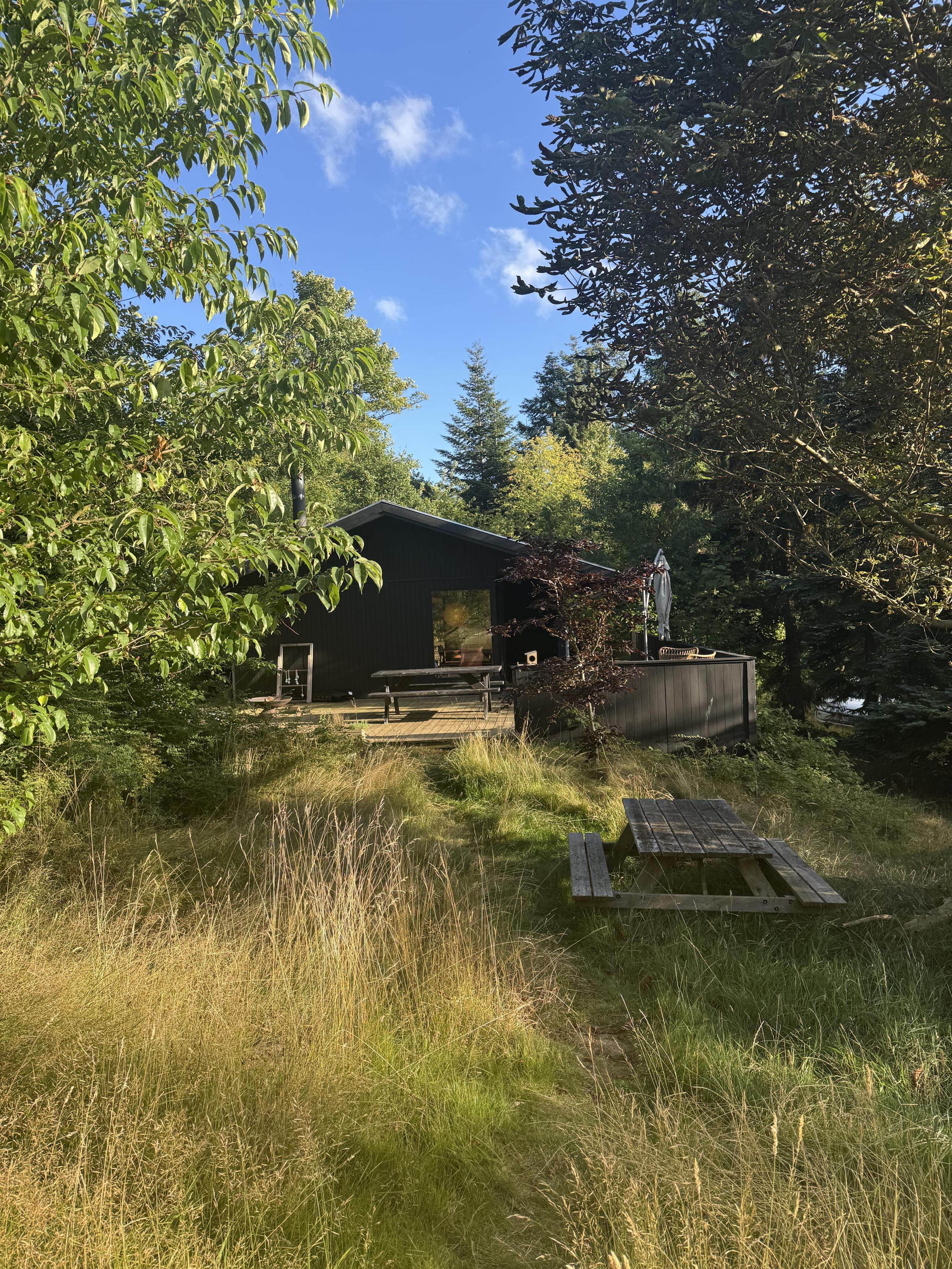 På stor naturgrund i det smukke, skovbevoksede landskab ved Femmøller ligger dette ældre, nyistandsatte og virkelig skønne hus omgivet af stor, delvist overdækket træterrasse med havemøbler, parasol og grill. Til børnene er der legeredskaber på grunden. En sand naturoase, hvor man både kan slappe af og dyrke udendørs aktiviteter.