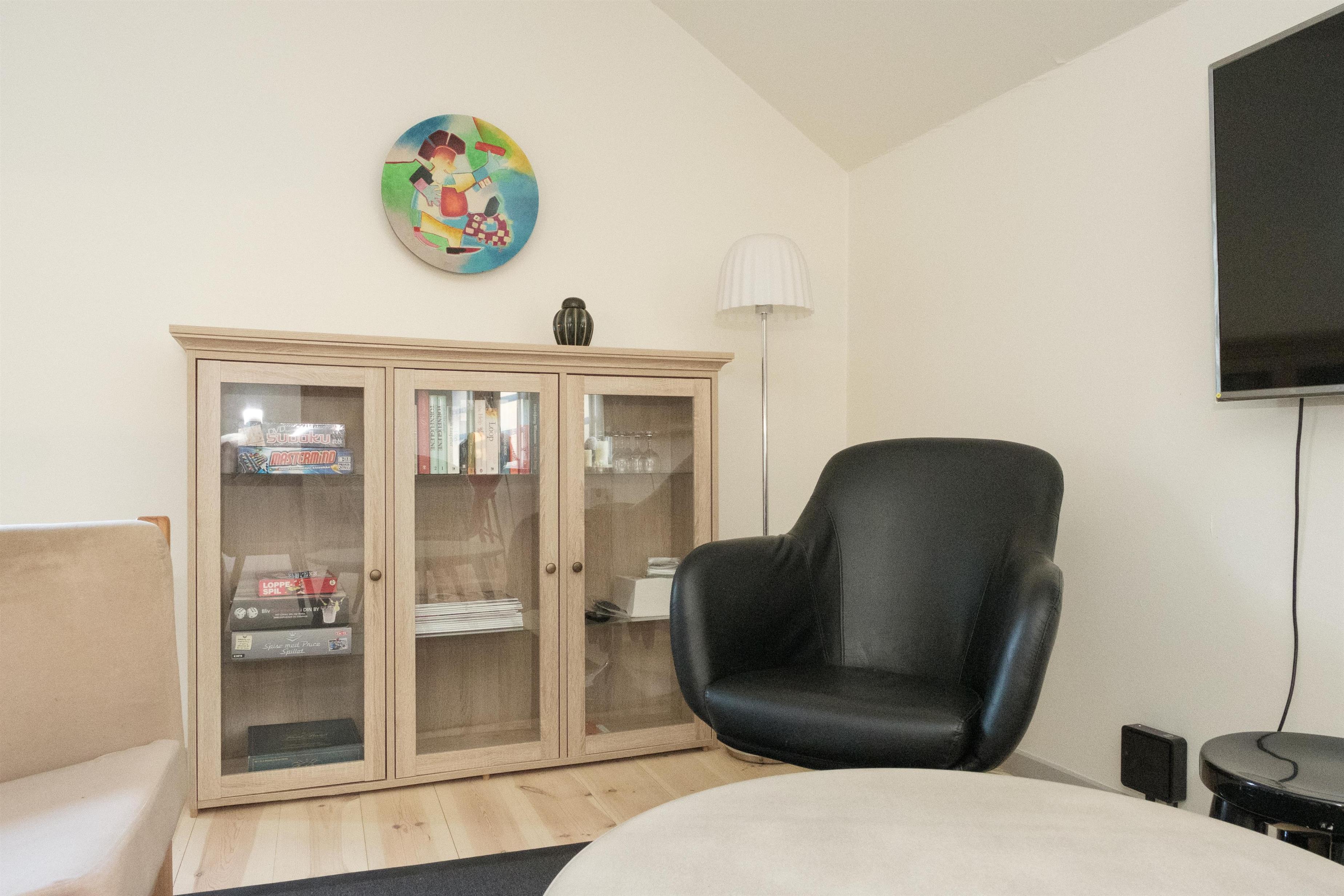 Ferielejlighedens samlingspunkt er den dejlige, lyse stue med spiseplads til 6 personer, hyggeligt og bekvemt sofamøblement samt TV med danske (inkl. TV2) og tyske kanaler. I åben forbindelse med stuen ligger det nye, veludstyrede køkken med keramisk komfur, indbygningsovn, køleskab, fryser, opvaskemaskine og mikrobølgeovn. Lejligheden råder over 6 sengepladser fordelt på 2 lyse og rummelige soveværelser med dobbeltseng samt 1 værelse med køjeseng. Velindrettet, godt badeværelse med bruseniche og vaskemaskine. Til de mindste gæster er der barneseng og højstol. Der er internetadgang. Dejlig altan med gode havemøbler, liggestole, parasol og grill.