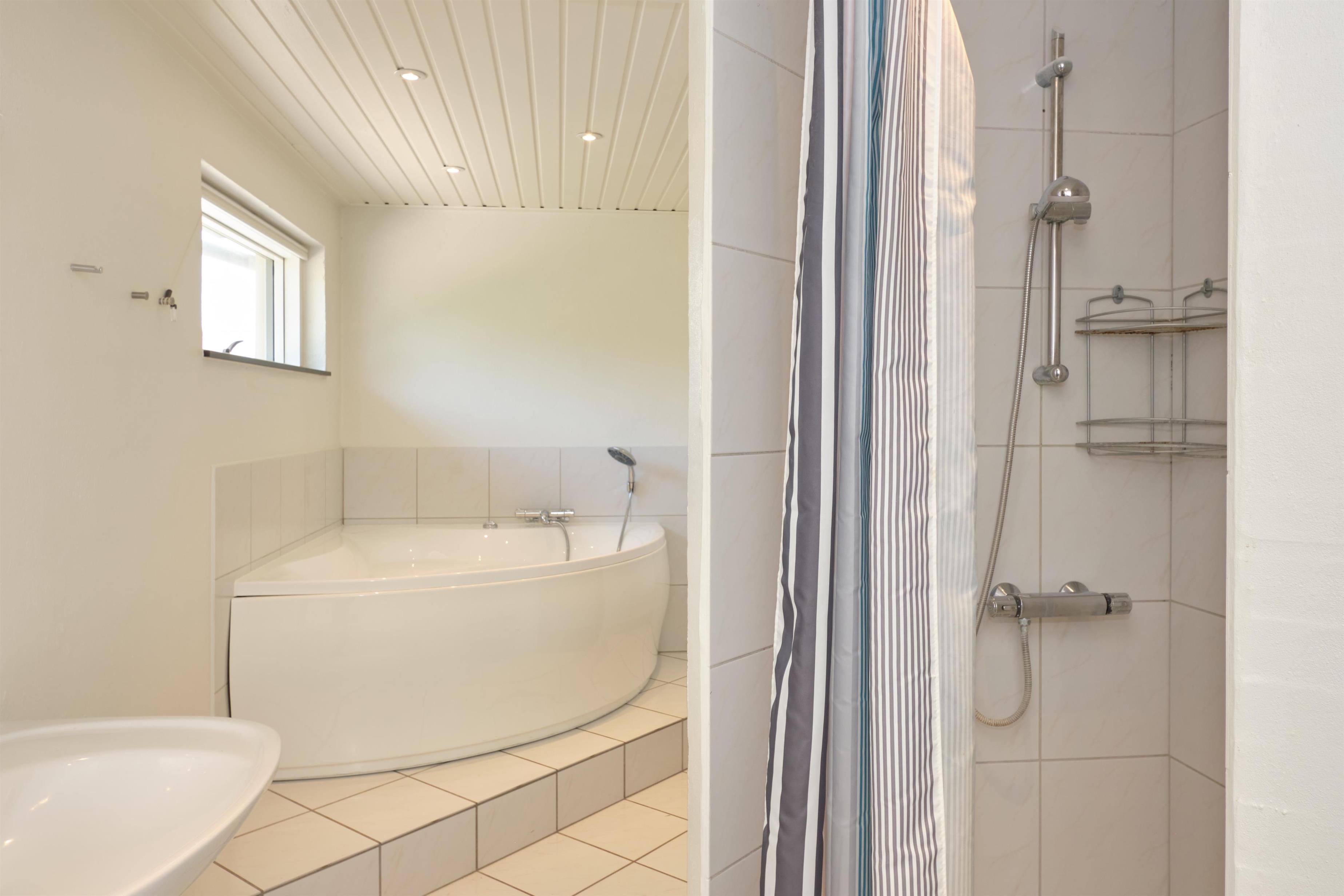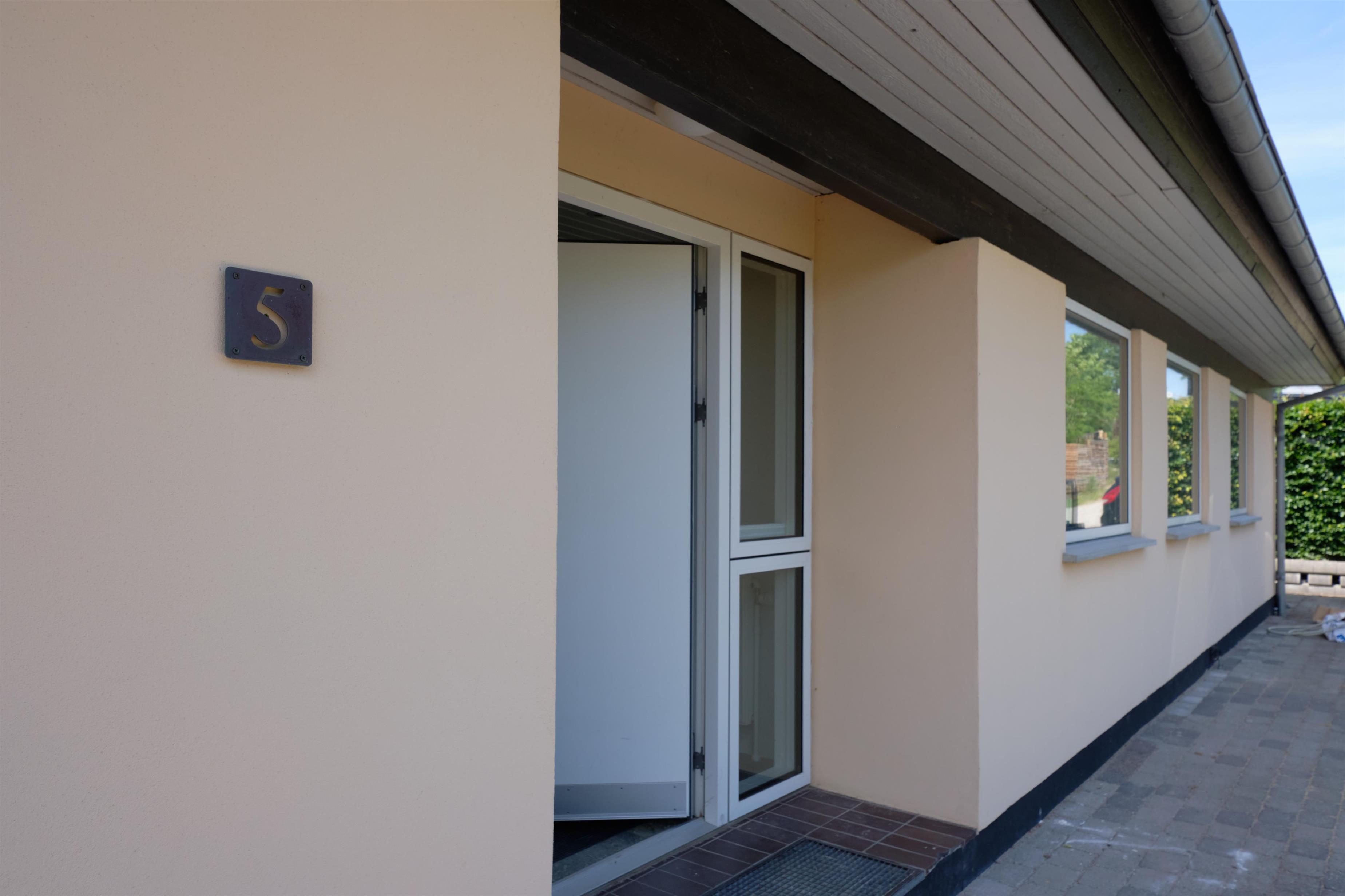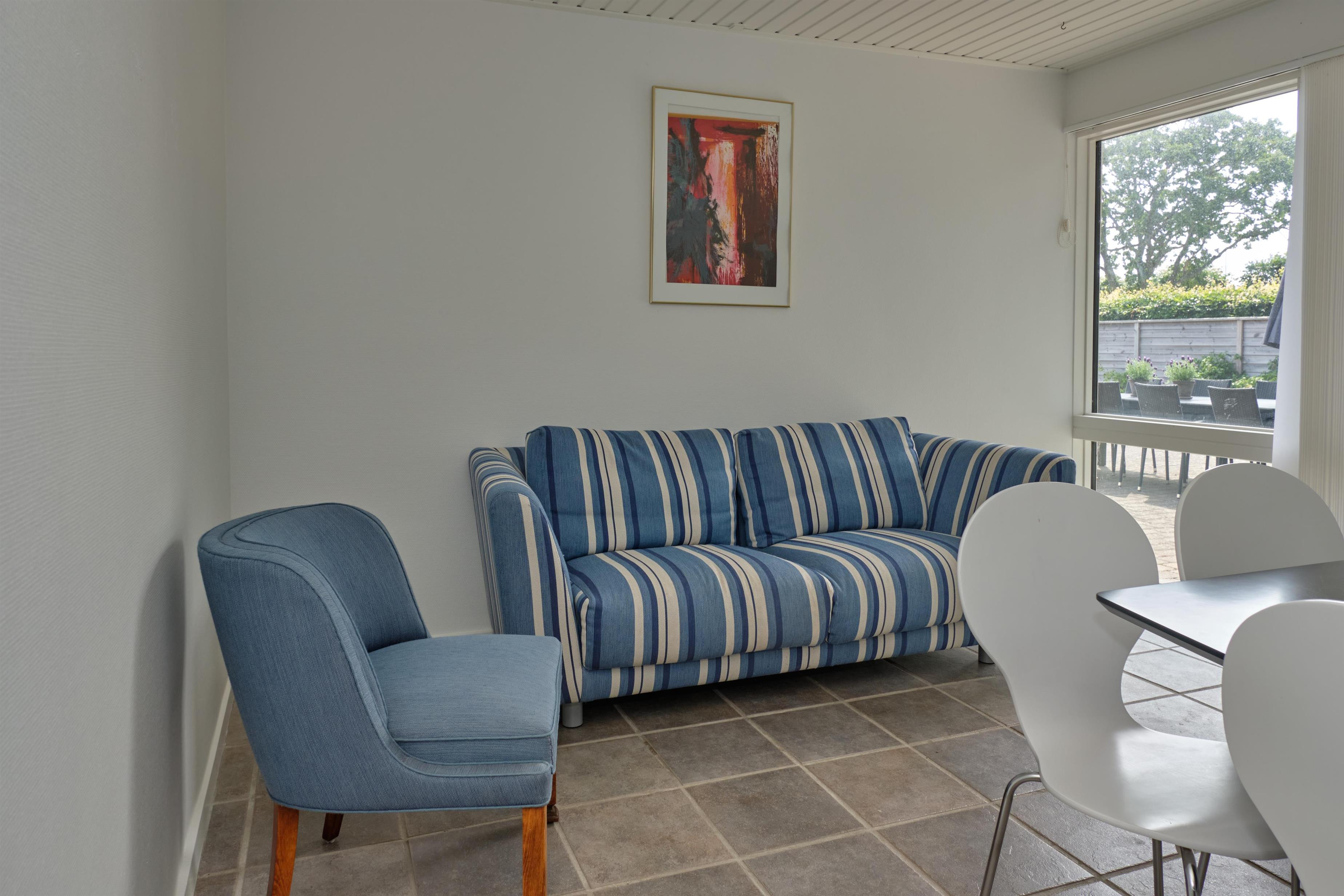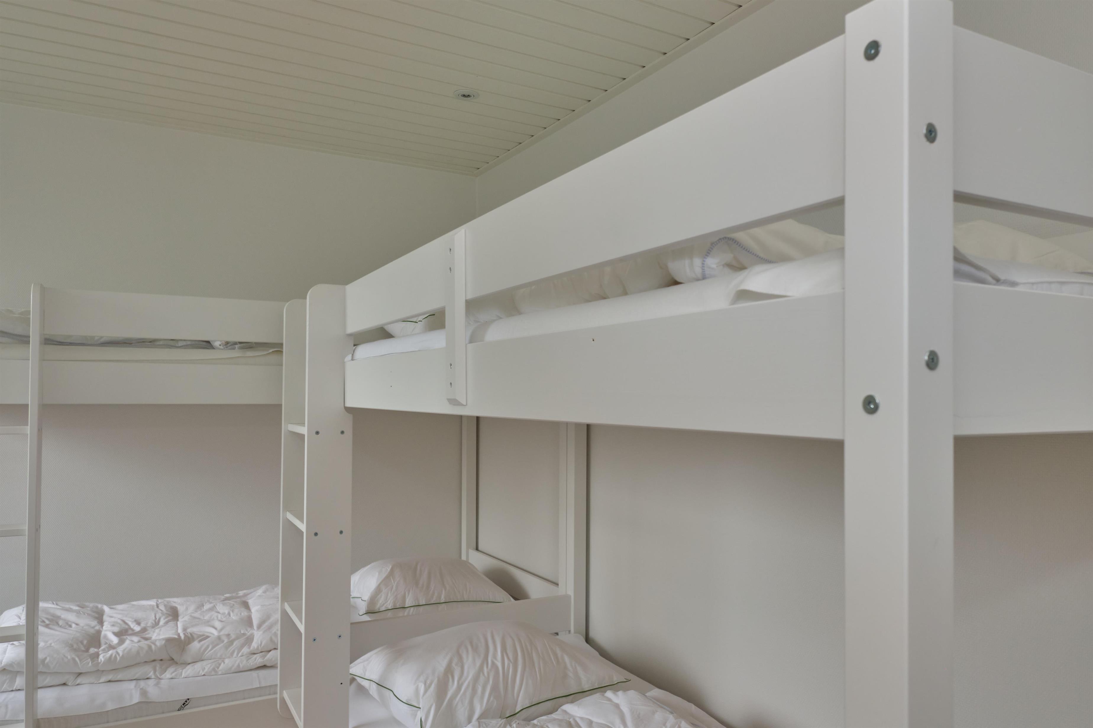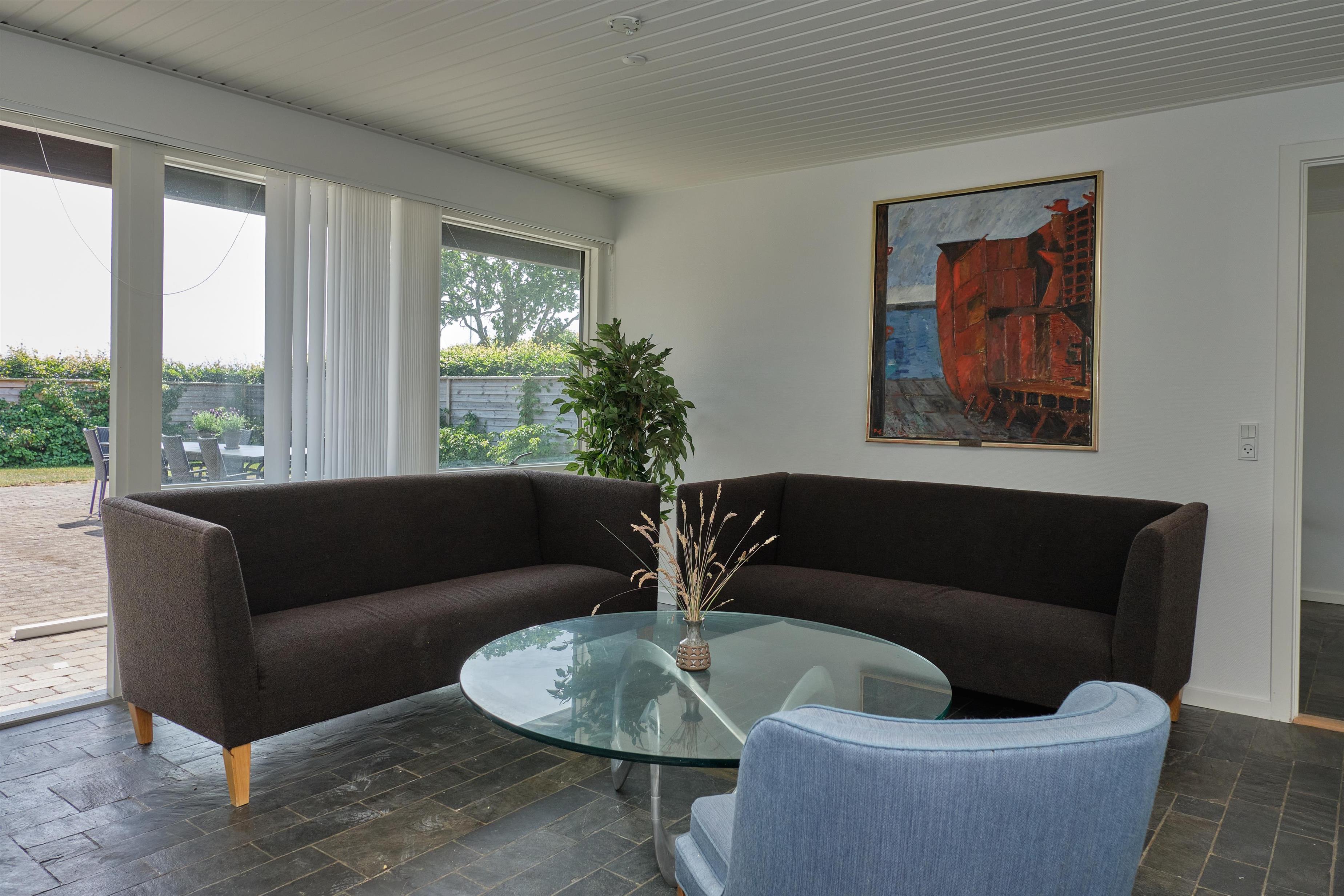 Såvel i den rummelige entré som i stue og køkken er der flotte klinkegulve, som sammen med indretningen giver en næsten sydlandsk stemning. Den store, lyse stue i åben forbindelse med køkken har panoramavinduer og udgang til terrasse og er indrettet med dejligt sofamøblement samt spiseafdeling med plads til 12 personer. Det lækre, nye køkken har god arbejdsplads, keramiske kogeplader, indbygningsovn, stort køle/fryseskab samt opvaskemaskine. Huset har 5 dejlige soveværelser, 4 med brede dobbeltsenge og 1 med to gode køjesenge, i alt 12 sovepladser. Stort, dejligt badeværelse med to håndvaske, bruseniche og spabad, samt gæstetoilet. Desuden er der bryggers med vaskemaskine og tørretumbler. Internetadgang.