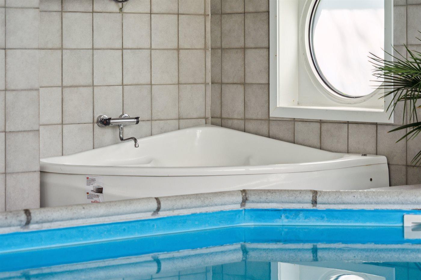 I den ene ende af huset er der indrettet en skøn pool-afdeling med klinkegulv, swimmingpool (6 x 3 x 1,4 m), spa, sauna og bruseniche. Der er mulighed for afslapning i indendørs spa til 2 personer.