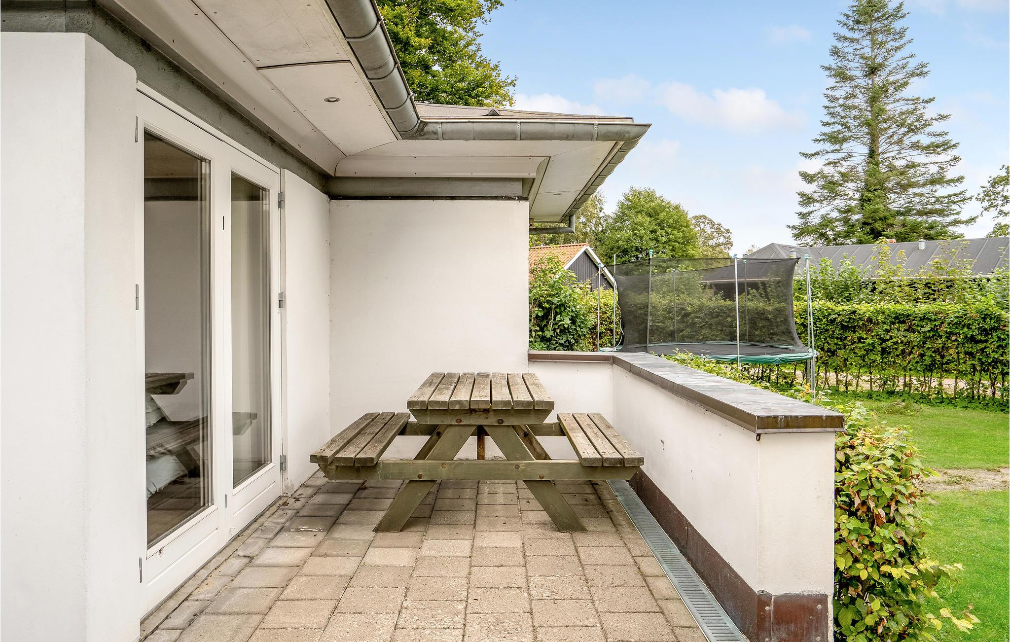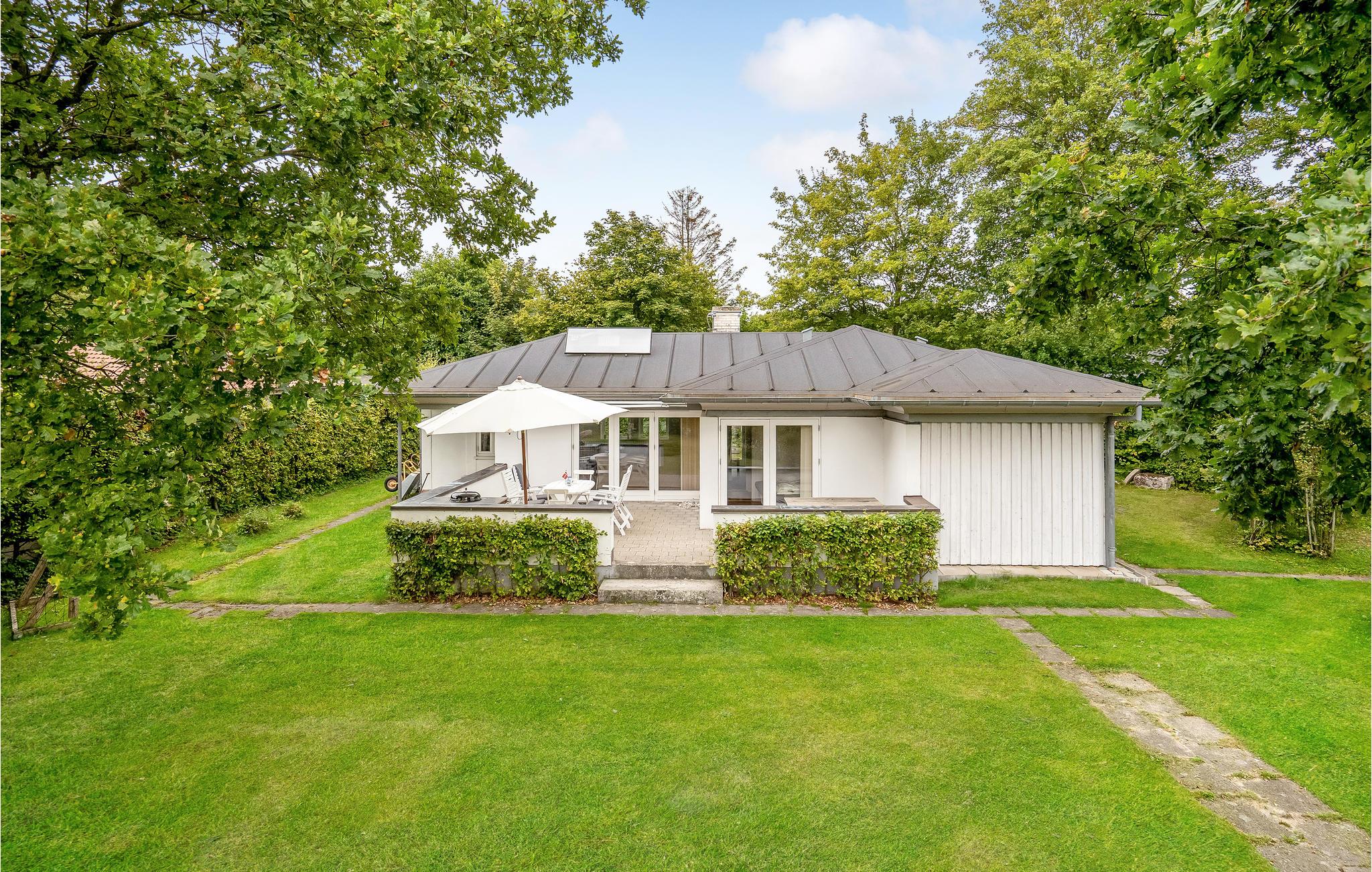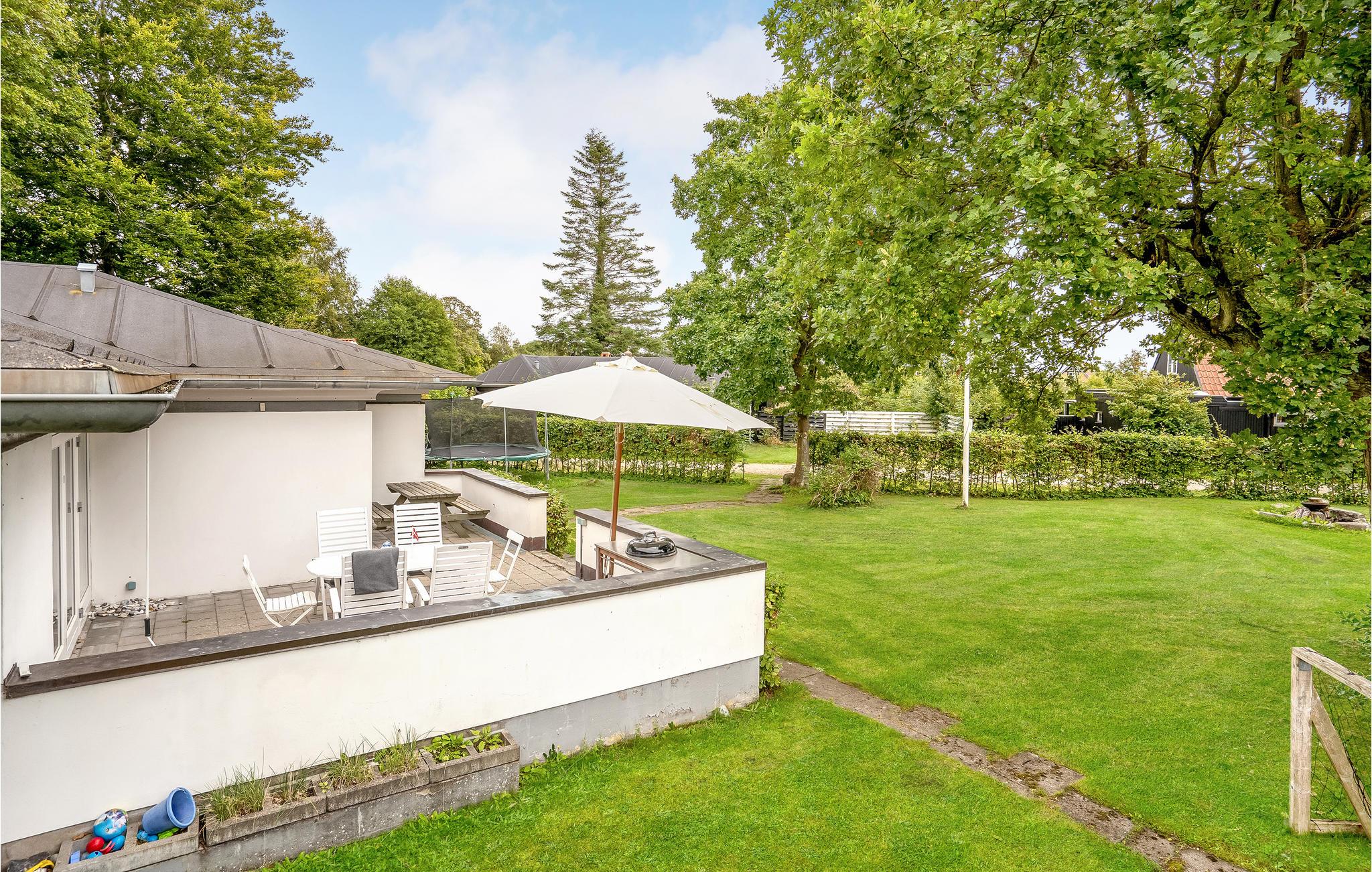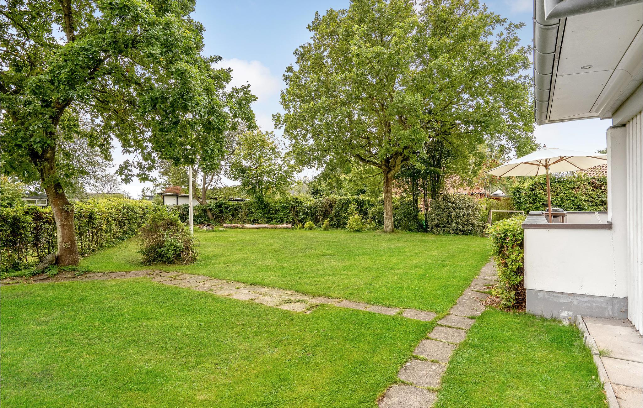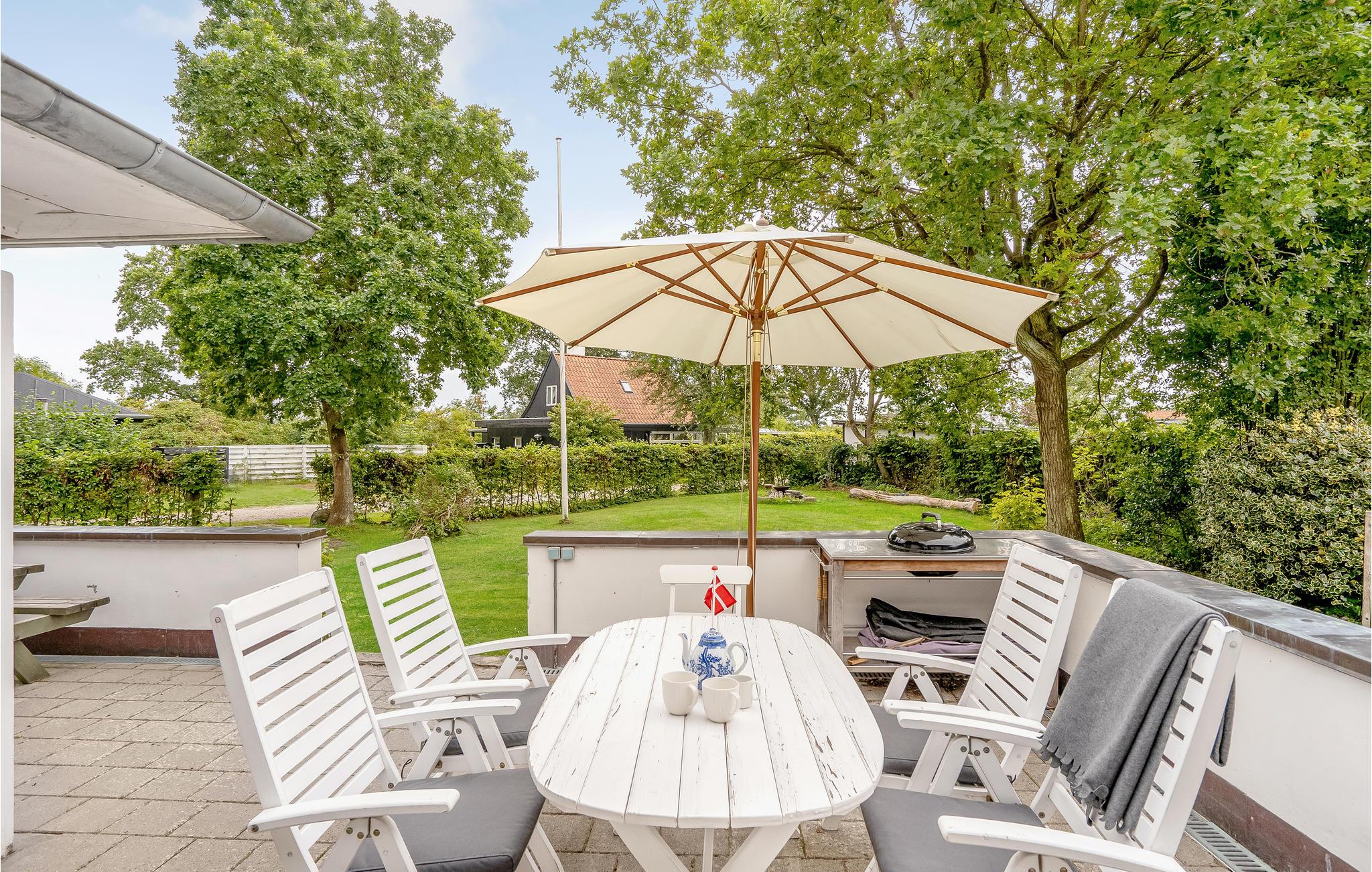 Udenfor finder I den delvist overdækkede terrasse med havemøbler og en grill, så I kan invitere vennerne over om aftenen.