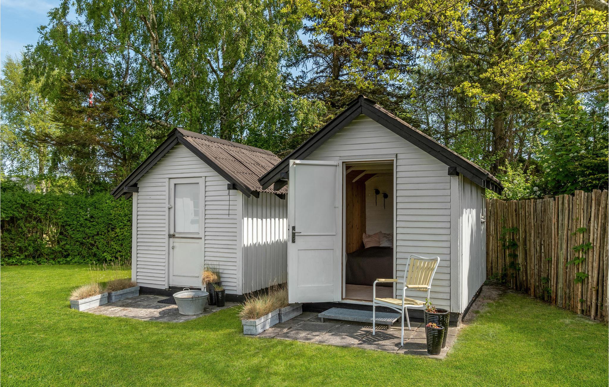 Haven byder på dejlige solkroge og en plæne, der er indhegnet, så her kan børnene løbe og lege frit. Der er også en bålplads, hvor I kan bage snobrød eller riste skumfiduser.