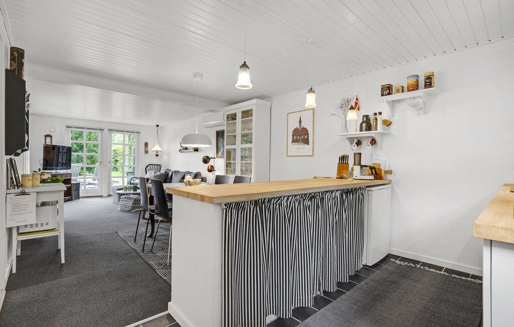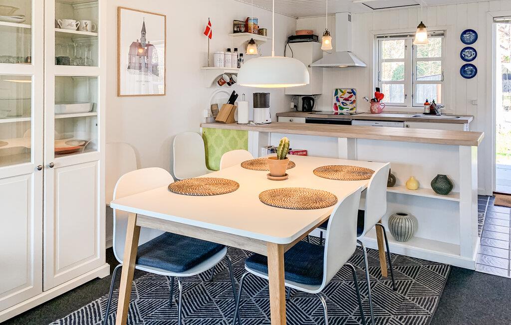 Dette hyggelige træhus nær stranden er det ideelle tilflugtssted for dig og din familie. Den charmerende indretning og det lyse, indbydende miljø skaber med det samme en hjemlig atmosfære. Slap af i stuen med hyggelige filmaftener, eller tilbered måltider sammen i det veludstyrede køkken. Et særligt højdepunkt er udendørsbruseren – ideel til en forfriskende skylle efter en dag på stranden. På terrassen kan I nyde solrige timer, grille og spise sammen, mens børnene leger på græsplænen.