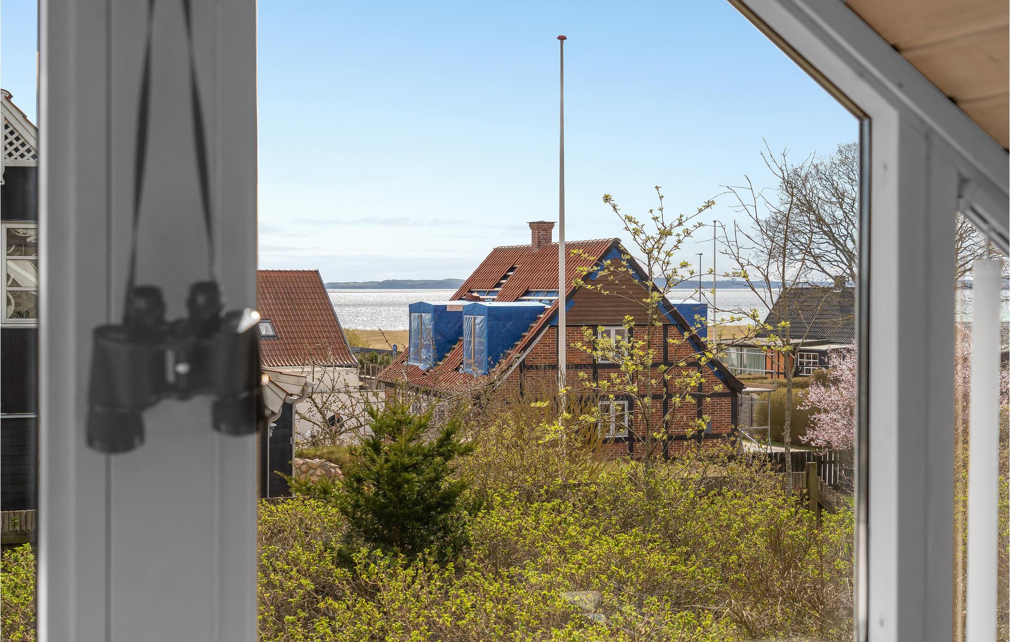 På en tilvokset naturgrund med kort afstand til strand, købmand og spisesteder har dette flotte arkitekttegnede feriehus en virkelig dejlig beliggenhed. Her er rammerne uden tvivl skabt for et skønt ferieophold uanset årstid. Huset er spændende indrettet og overalt hersker der en lys og venlig atmosfære. Køkkenet ligger i forbindelse med spisepladsen og herfra er der videre adgang til den forsænkede opholdsstue med brændeovn. I forskudt plan ligger en mindre stue, hvorfra der er udsigt til Ebeltoft Vig. Efter ankomst kan båd, uden motor, lejes ved henvendelse på vores kontor i Ebeltoft, pris DKK 250,- pr. uge