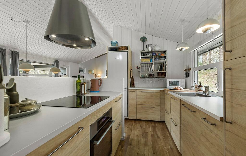 Med sin smagfulde indretning danner dette indbydende hus i idylliske omgivelser de bedste rammer om en dejlig ferie. Efter en lang gåtur ved stranden kan I slappe af i saunaen, nyde jeres måltider med en smuk udsigt til det fri og hygge jer om aftenen i den komfortable sofa.