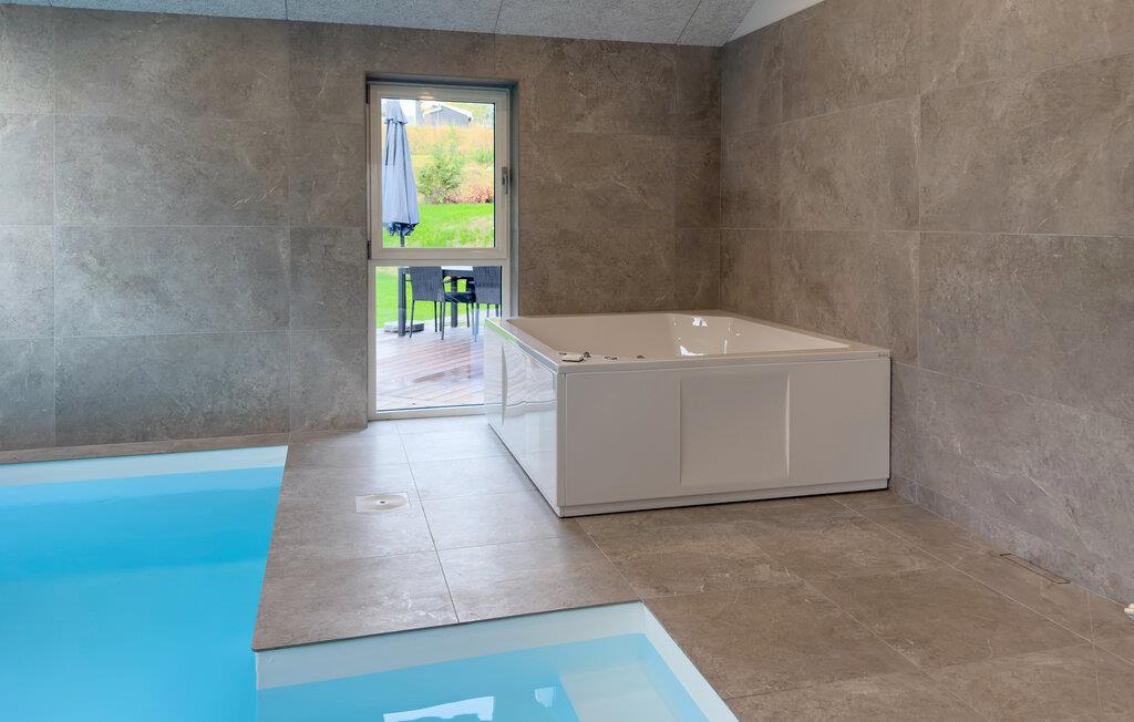 Nyd en afslappende ferie i et moderne hus med indendørs pool og stor have nær Femmøller Bakker.