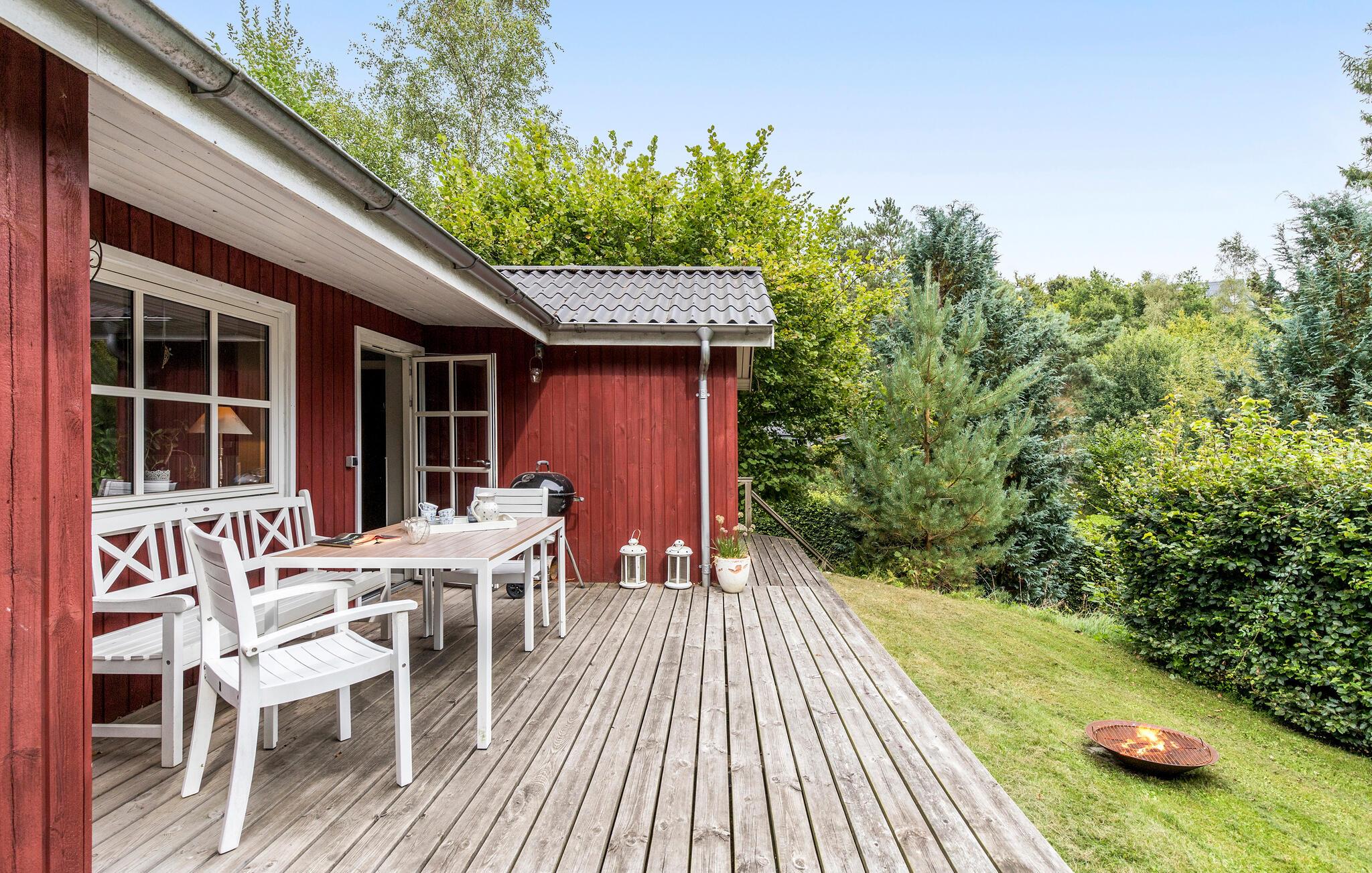 Lyst og hyggeligt sommerhus med to soveværelser og stor naturgrund nær børnevenlig strand.