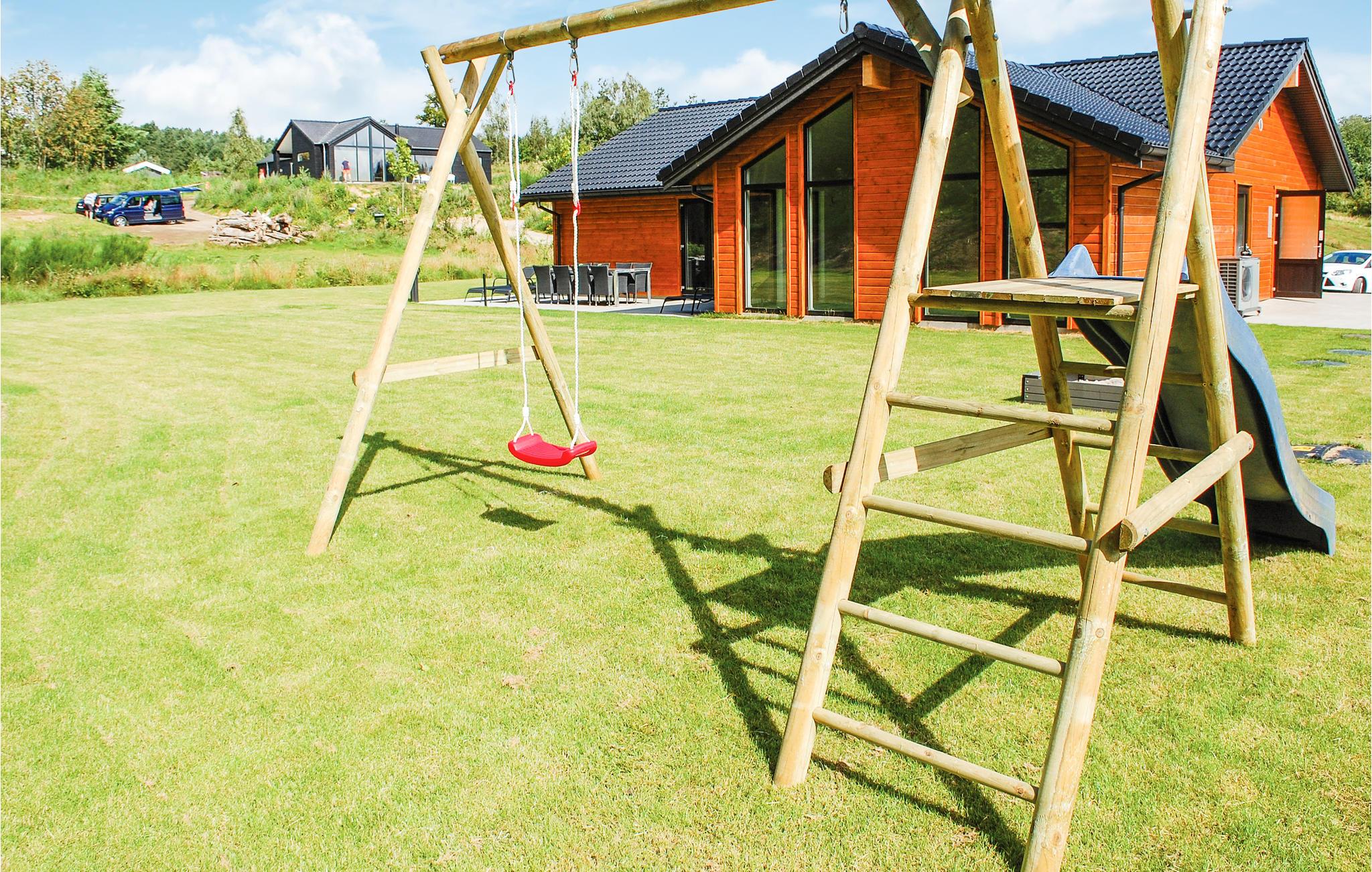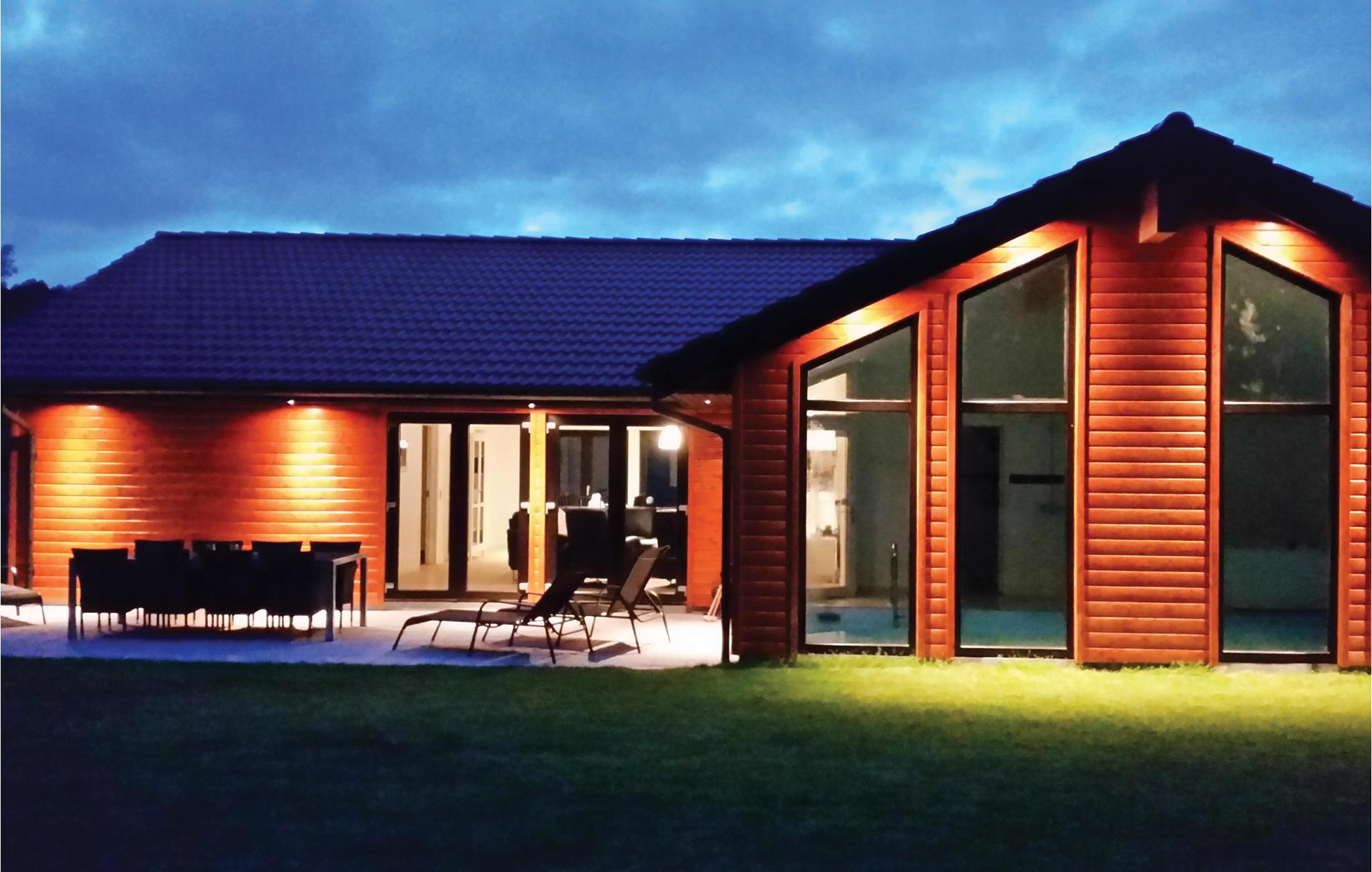 Flot, moderne og stort sommerhus med en dejlig fofriskende swimmingpool, samt spabad og sauna. Huset er beliggende på en dejlig plan grund med anlagt græsareal samt en stor terrasse. Huset er moderne møbleret, veludstyret og godt indrettet med bl.a. fire gode værelser og to badeværelser. Der er gjort ekstra store investeringer i isolering for at reducere energiforbruget i huset, som er meget fordelagtigt. Beliggenheden er i roligt og stille område med varieret terræn og skov. Gode muligheder for løbe og vandreture i omårdet. Kort køreafstand til stranden, hvor der også er mulighed for at nyde en smagsoplevelse på en Gourmet Restaurant.