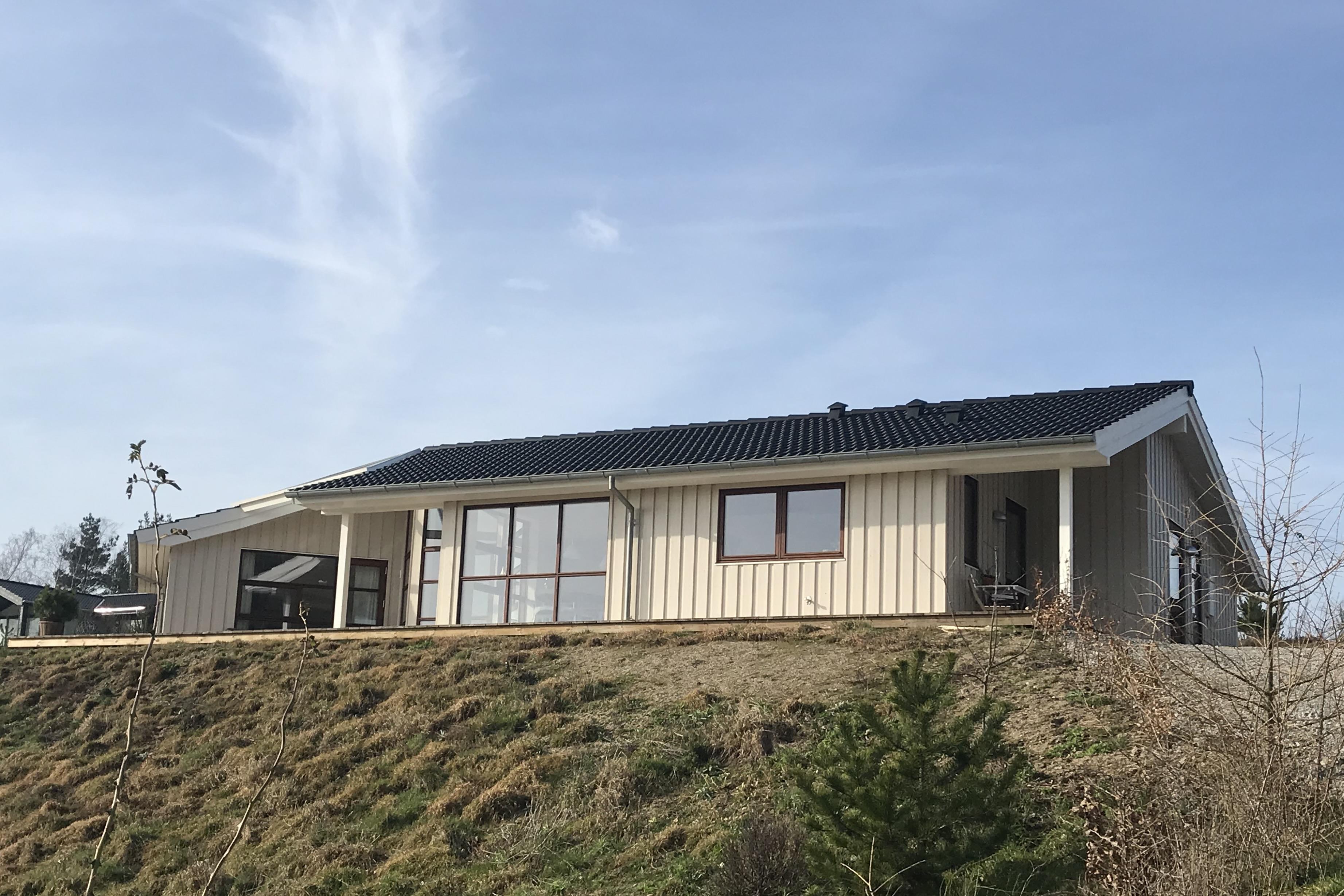 Nyere hus (2018) med helt speciel høj beliggenhed, og en fantastisk udsigt. Huset ligger i Femmøller/Mols Bjerge og kan rumme 8 personer. Her er tre dobbeltværelser med dobbeltseng. I et aktivitetsrummet er der en 2 personers sovesofa (slås ud fra sofa - kan også bruges som alm. sofa), og her er også en stor hems med madrasser til to personer, og hvor mindre børn også kan boltre sig.