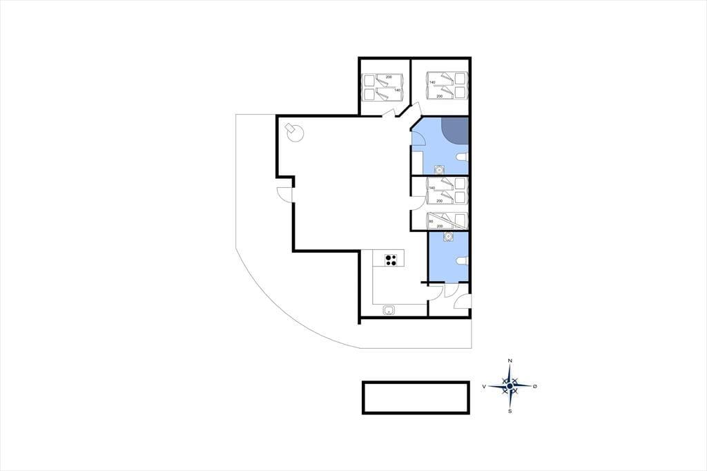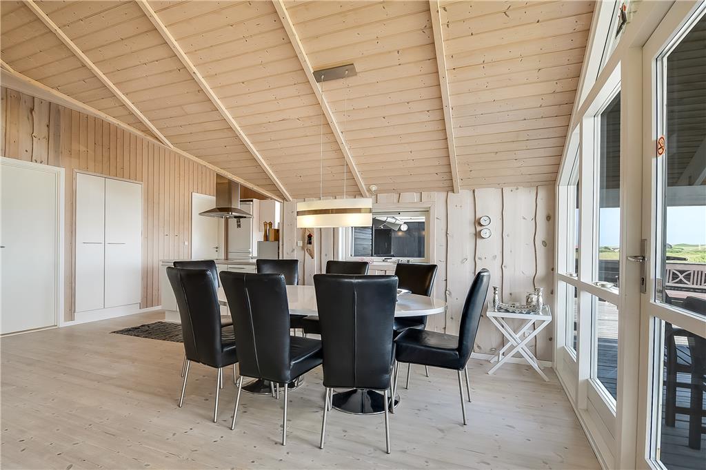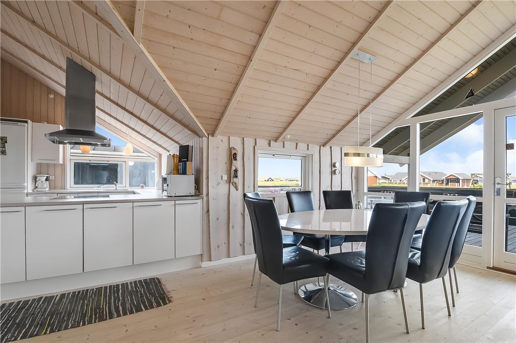Inde i sommerhuset mødes I af en indretning, der balancerer det moderne med det hyggelige. Her er lys og luft, varme farvetoner og materialer, der indbyder til ro og samvær. Det åbne opholdsrum binder køkken og stue sammen og danner en naturlig base for feriedagene – uanset om I laver mad sammen, nyder et brætspil ved spisebordet eller smider jer i sofaen med en god film. Wellnessafdelingen med spa og sauna byder på ekstra forkælelse og er et oplagt sted at søge hen, når I vil koble helt fra. Atmosfæren er afslappet, og det er nemt at finde sig til rette, hvad enten du er her med familien, vennerne eller din bedre halvdel. Her kan I være sammen og hver for sig, og det hele foregår i rolige, indbydende rammer.