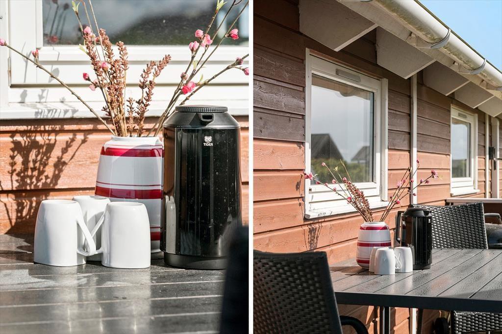 Rundt om huset breder en dejlig terrasse sig, så du altid kan finde et sted med sol, læ eller skygge – uanset tidspunkt på dagen. Her kan du starte dagen med en kop kaffe og fuglesang eller afslutte den med aftensmad under åben himmel, mens solen langsomt går ned. Den dejlige have skaber en grøn og fredelig kulisse for feriedagene, og børnene kan få mange gode timer til at gå med leg på græsplænen eller en tur i gyngestativet. Der er lagt op til både leg, afslapning og nærvær – og alt sammen kun 400 meter fra stranden. En kort gåtur bringer dig direkte til det brusende Vesterhav, hvor du kan bade, bygge sandslotte eller blot lade tankerne flyve til lyden af bølgerne.