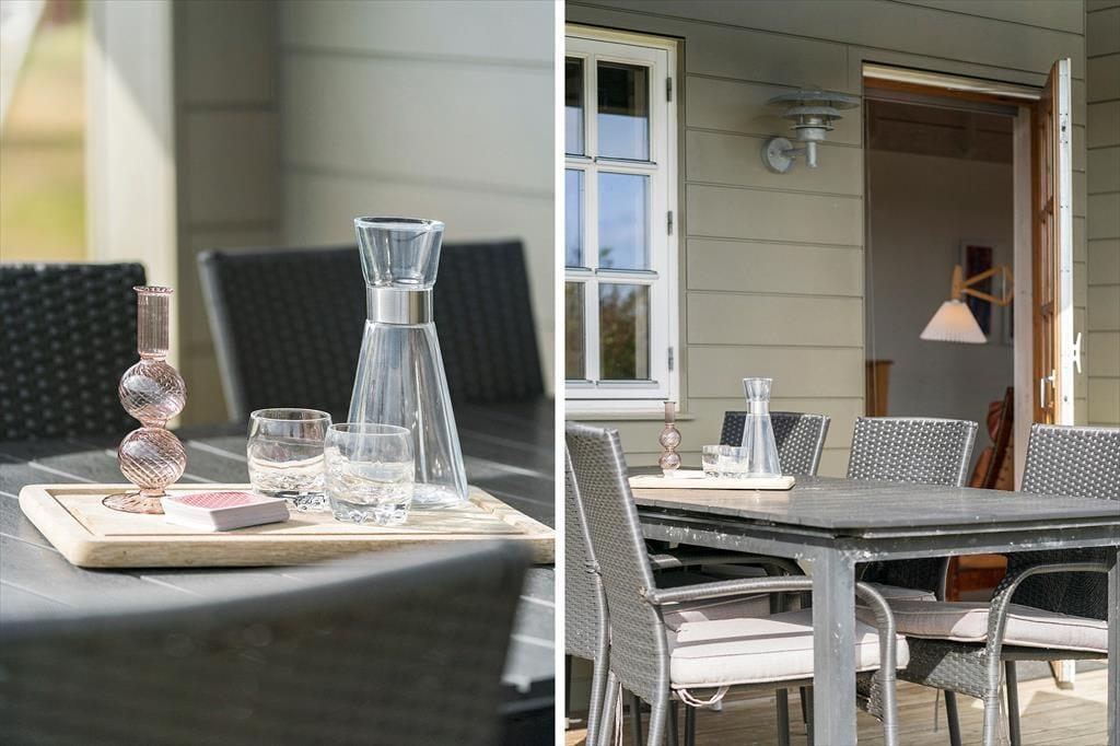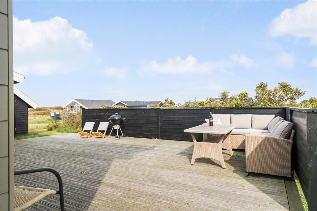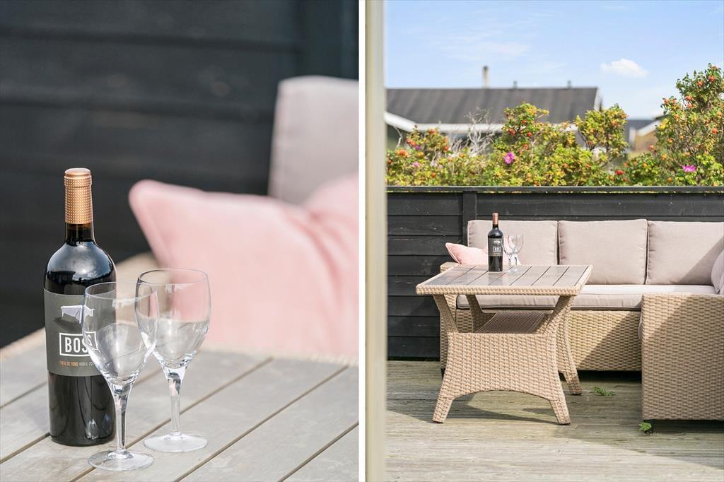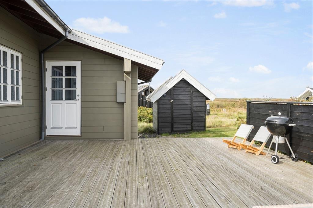 Terrassen omkring sommerhuset er som skabt til at nyde de lange feriedage udendørs. Her kan du drikke morgenkaffen med udsigt til den stille Ferring Sø, mens solens første stråler rammer vandet. Om sommeren er det oplagt at tænde op i grillen og nyde et lækkert måltid i det fri. Den frodige have inviterer til afslapning, hvor du kan finde en solrig plet eller sidde i skyggen og nyde den fredelige stemning. Hvis du har børn med, er der rig mulighed for, at de kan løbe og lege på grunden, mens du finder roen med et glas vin på terrassen.