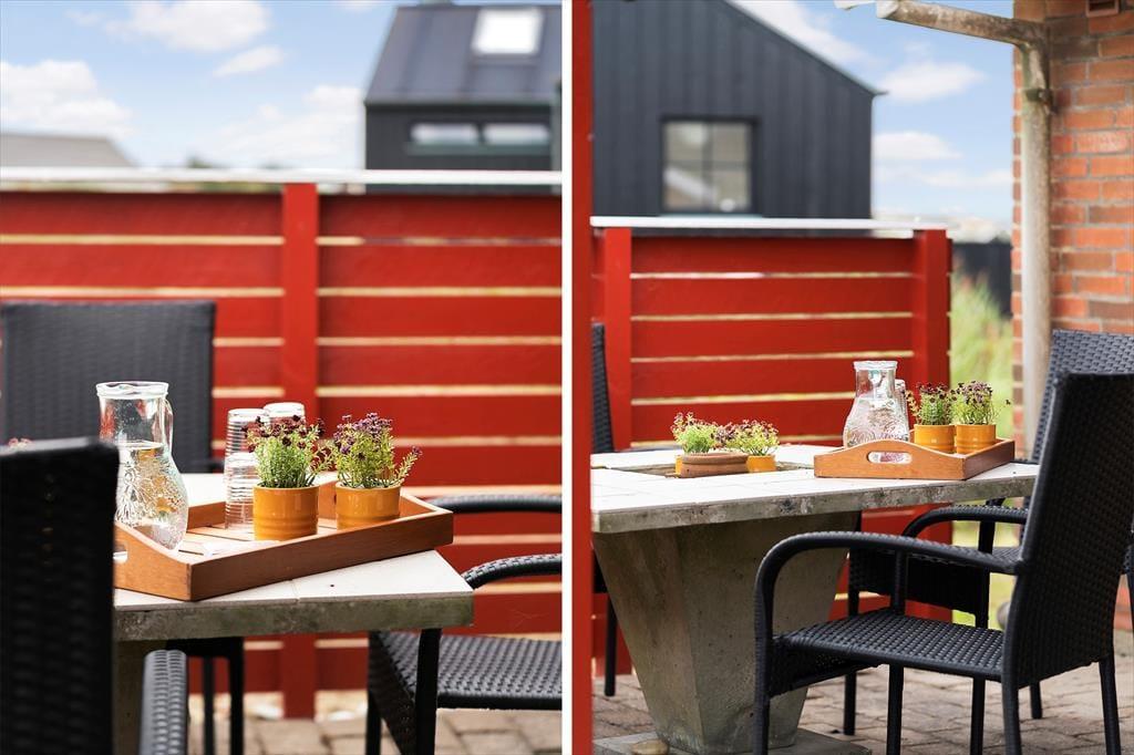 Huset ligger på en fredelig grund med flere dejlige terrasseområder. En overdækket terrasse på 18 m² giver mulighed for at nyde udelivet uanset vejret – hvad enten det er med morgenkaffen i hånden eller et glas vin i aftensolen. Mod både nord og syd kan du slå dig ned på de to separate terrasser, der giver dig sol og læ hele dagen. Det store uderum inviterer til afslapning og leg – og måske griller I aftenens måltid sammen, mens børnene leger i det omkringliggende område. Her er masser af plads til hygge og gode stunder under åben himmel, mens du nyder duften af saltvand og lyden af naturen omkring dig.