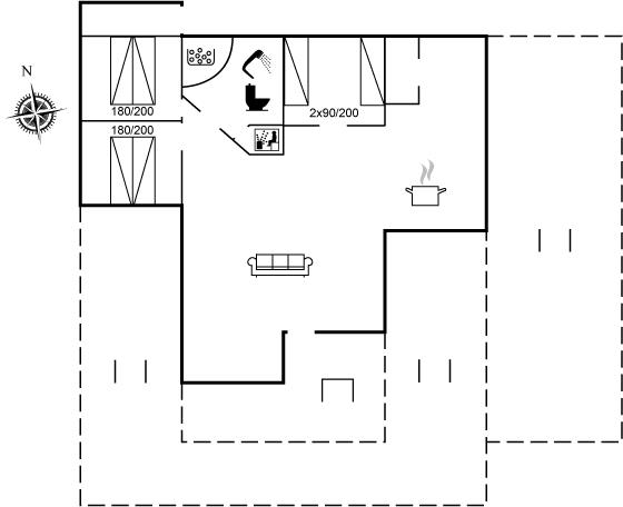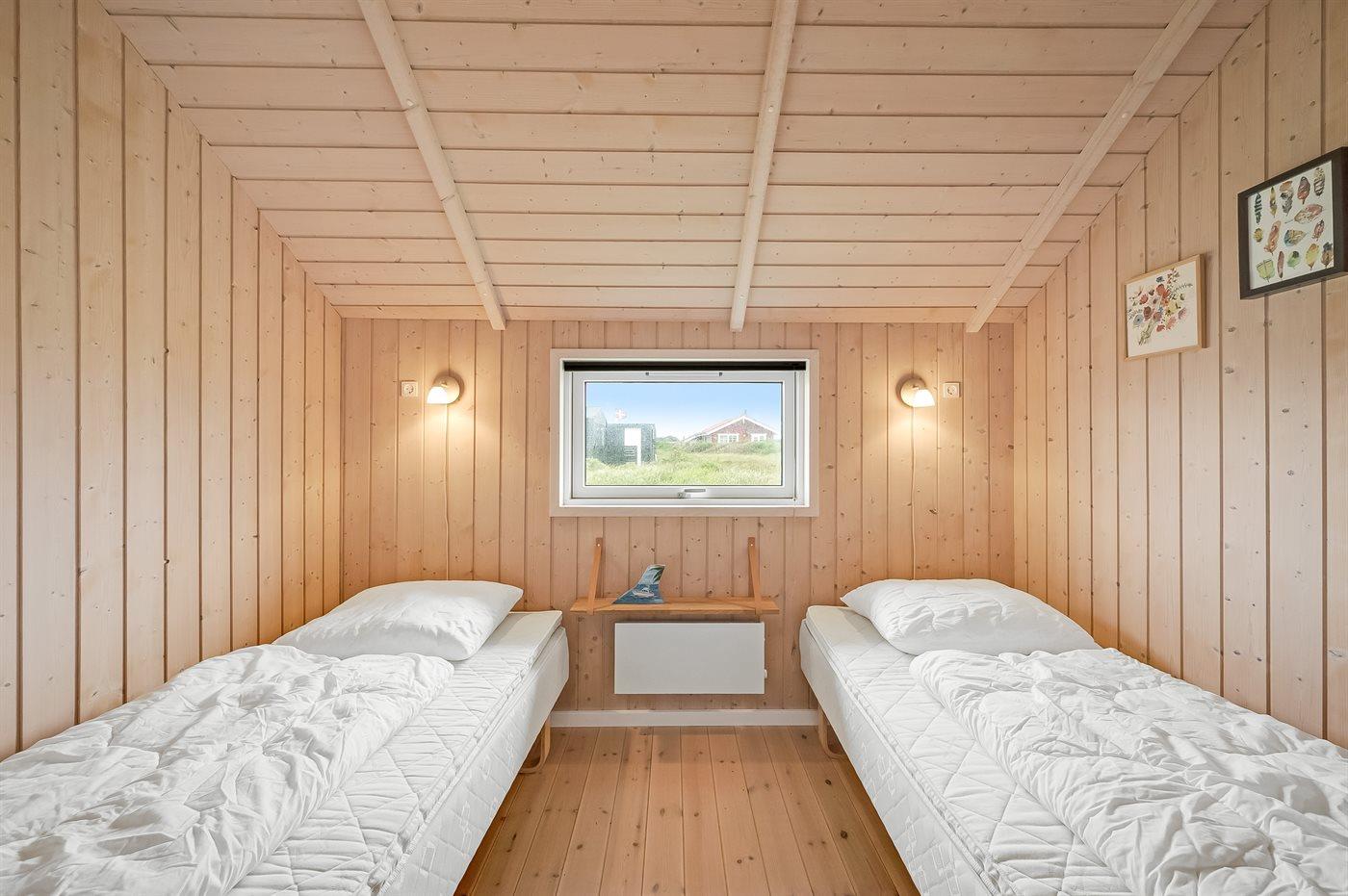 Der er i alt 3 soveværelser. Sovepladserne fordeler sig på: 4 sovepladser i dobbeltsenge. 2 sovepladser i enkeltsenge.
