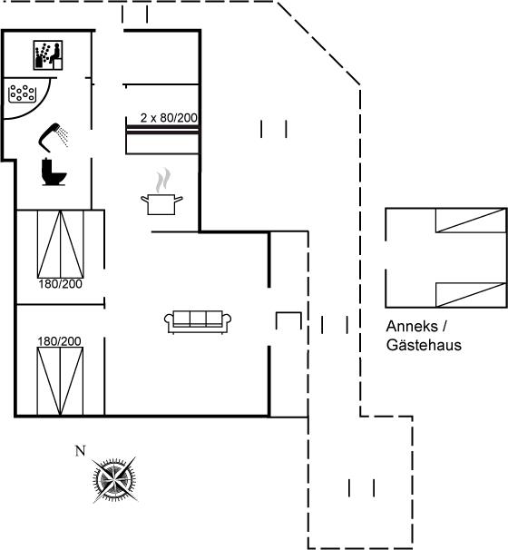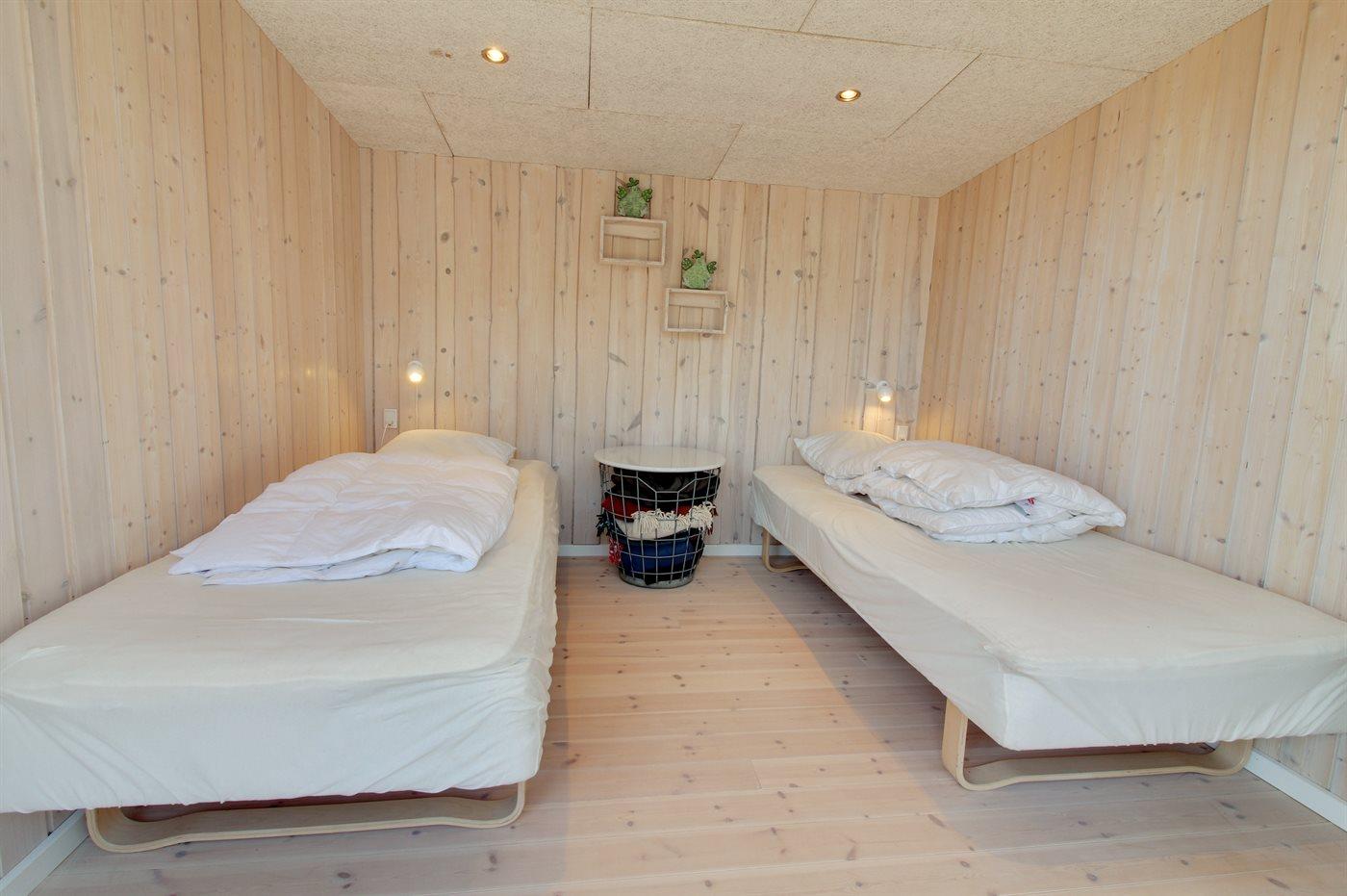 Der er i alt 4 soveværelser. Sovepladserne fordeler sig på: 2 sovepladser i dobbeltseng. 2 sovepladser i enkeltsenge. 2 sovepladser i køjeseng.2 sovepladser i elevationssenge.- 2 af disse sovepladser befinder sig i et anneks. Derudover er der 1 stk. barneseng.