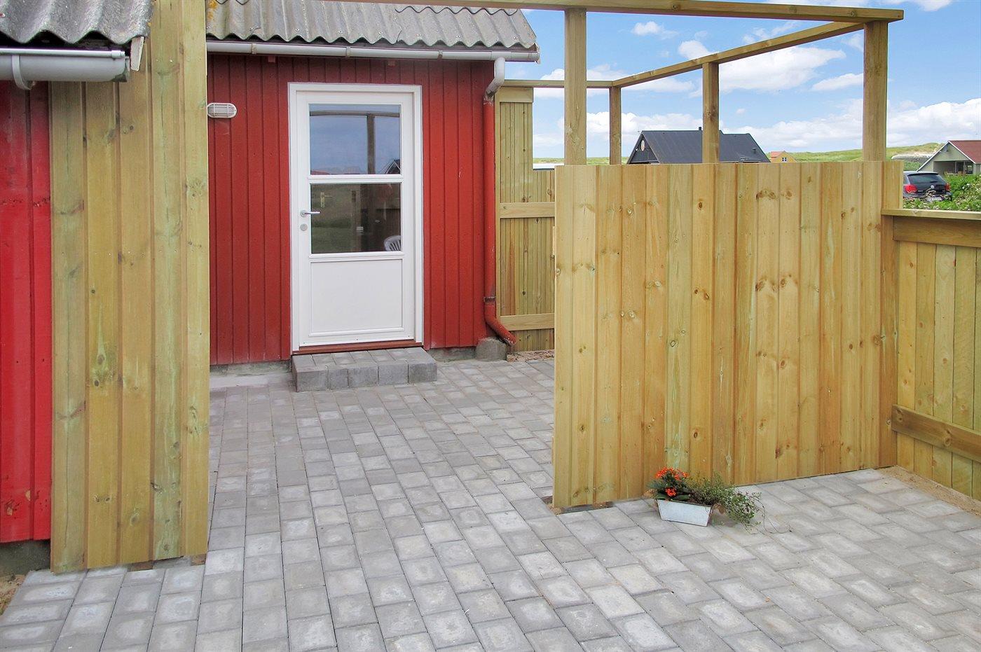 Ferieboligen er beliggende på en 1100 m² stor naturgrund. Der er 150 m til havet. Nærmeste forretning er beliggende i en afstand af 1000 m. Til ferieboligen hører 30 m² terrasseareal. Gynge. Parkering ved ferieboligen.