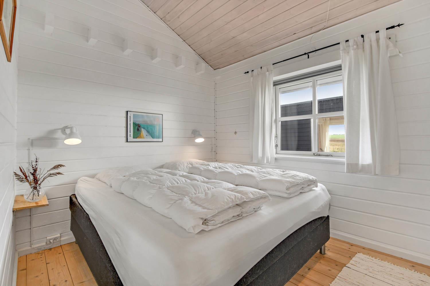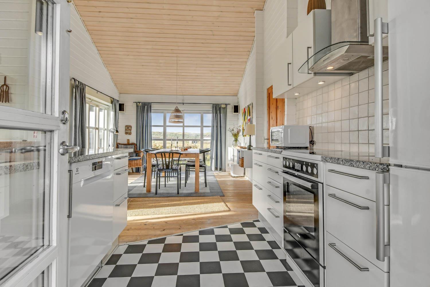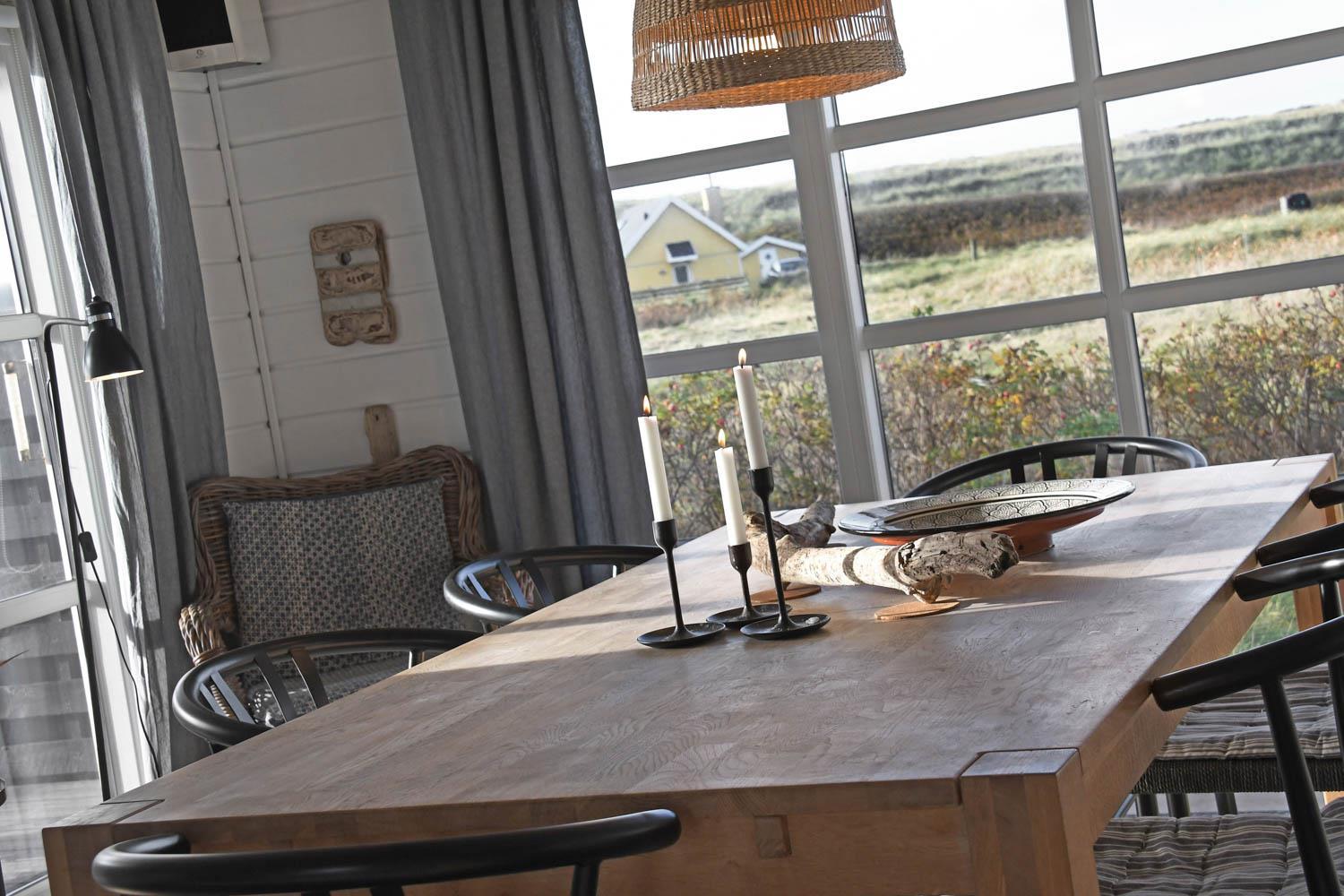 Godt og meget hyggeligt indrettet og helårsisoleret feriehus i træ. Huset er lyst og indbydende og har store vinduespartier med god udsigt over klitterne og vådområderne ved Ferring og det rige fugleliv. Opholdsstue og køkken er kombineret og danner et rummeligt og komfortabelt sted at være. I stuen er der brændeovn og varmepumpe som udover at give en behagelig varme også er med til at gøre forbrugsafregningen billigere. Der er et F-TV med parabol som tilbyder tyske kanaler og et begrænset udvalg af danske kanaler. Der findes også en DVD og gratis internetadgang. Chromecast kan medbringes. Dejlig lyst køkken som er veludstyret med alle nødvendige hvidevarer og udstyr, glaskeramisk komfur, emhætte, køle-(fryseskab, opvaskemaskine og mikroovn. Huset har 3 soveværelser: 1DS + 1DS + 2S. Badeværelse: Toilet, bruser, 2 håndvaske, gulvvarme og vaskemaskine og tørretumbler. Til de mindste gæster er der barneseng og barnestol. Der er trægulve i stue, gang og på værelserne. Har man el-bil eller en Plug-In hybrid, så er der ved Ladeboks til Type 2 ladestik, der kan lade op til 11 kWh. 1 husdyr er tilladt. Rygning er ikke tilladt.