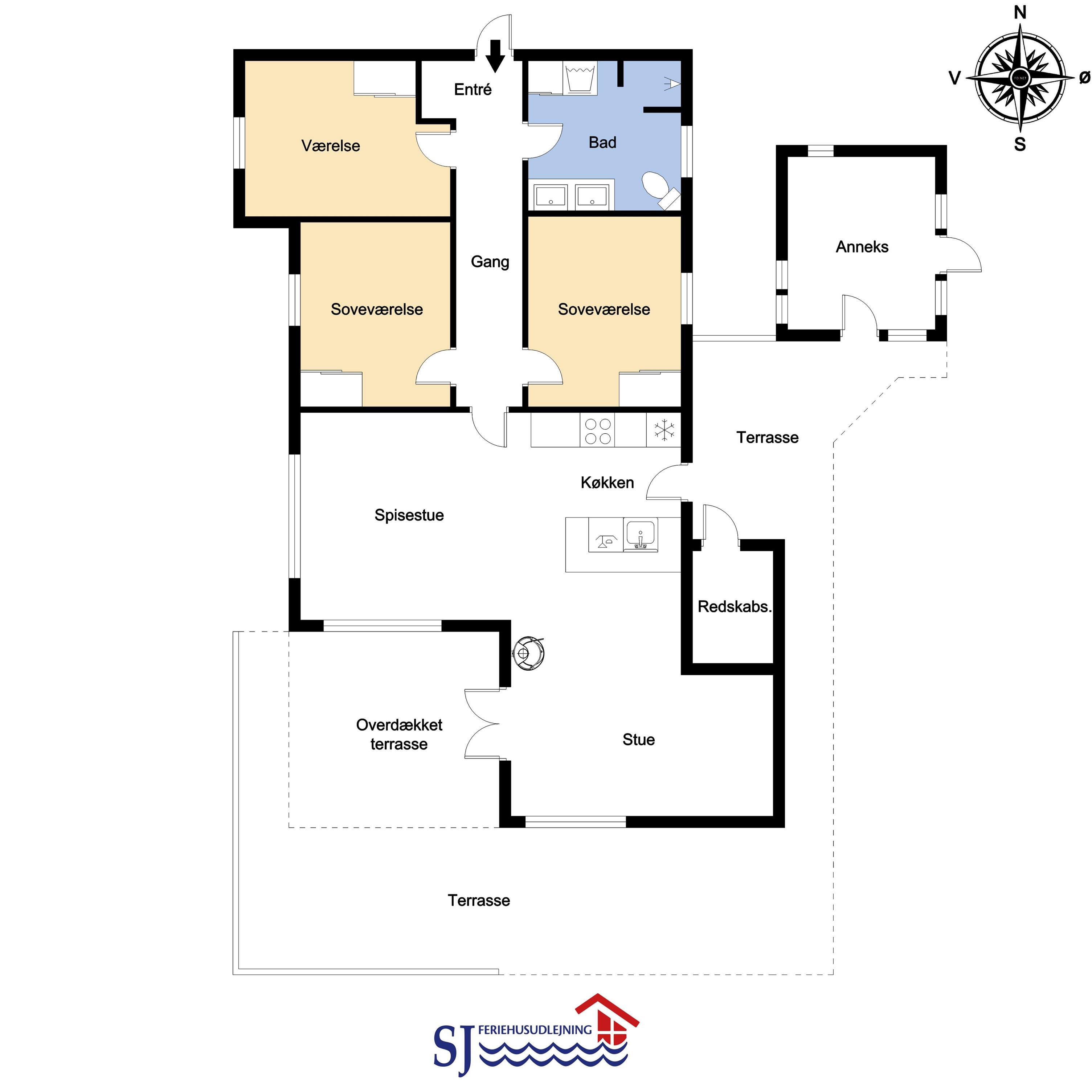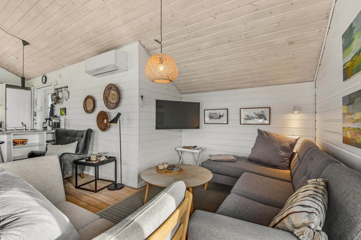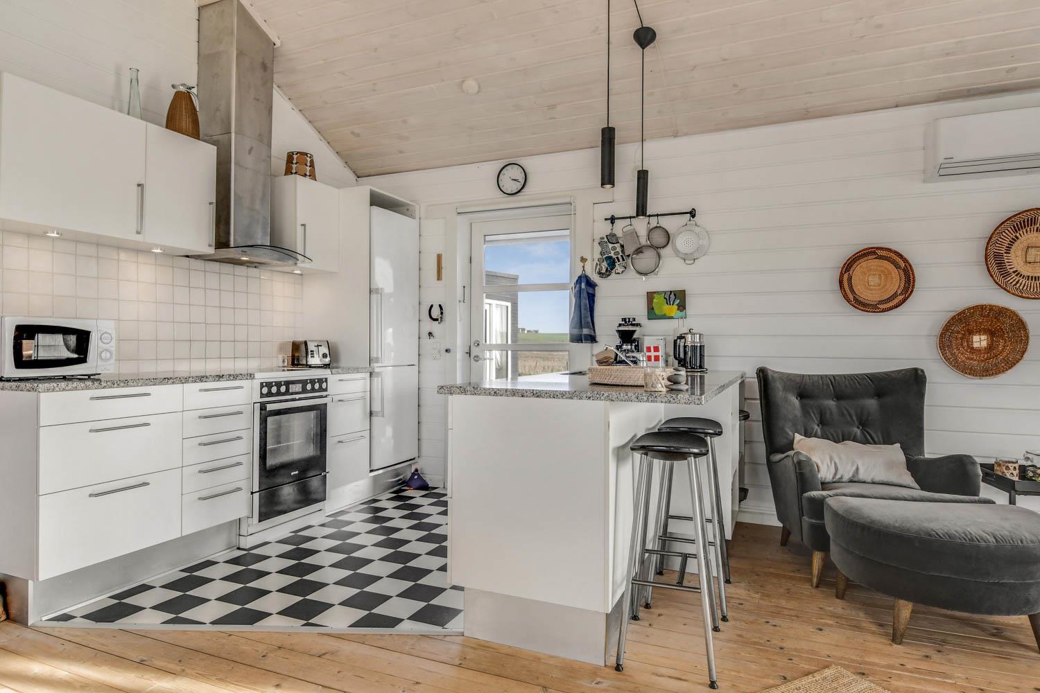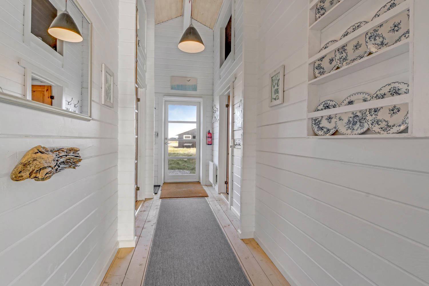 Godt og meget hyggeligt indrettet og helårsisoleret feriehus i træ. Huset er lyst og indbydende og har store vinduespartier med god udsigt over klitterne og vådområderne ved Ferring og det rige fugleliv. Opholdsstue og køkken er kombineret og danner et rummeligt og komfortabelt sted at være. I stuen er der brændeovn og varmepumpe som udover at give en behagelig varme også er med til at gøre forbrugsafregningen billigere. Der er et F-TV med parabol som tilbyder tyske kanaler og et begrænset udvalg af danske kanaler. Der findes også en DVD og gratis internetadgang. Chromecast kan medbringes. Dejlig lyst køkken som er veludstyret med alle nødvendige hvidevarer og udstyr, glaskeramisk komfur, emhætte, køle-(fryseskab, opvaskemaskine og mikroovn. Huset har 3 soveværelser: 1DS + 1DS + 2S. Badeværelse: Toilet, bruser, 2 håndvaske, gulvvarme og vaskemaskine og tørretumbler. Til de mindste gæster er der barneseng og barnestol. Der er trægulve i stue, gang og på værelserne. Har man el-bil eller en Plug-In hybrid, så er der ved Ladeboks til Type 2 ladestik, der kan lade op til 11 kWh. 1 husdyr er tilladt. Rygning er ikke tilladt.