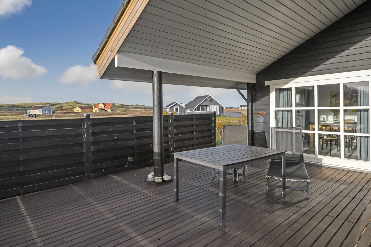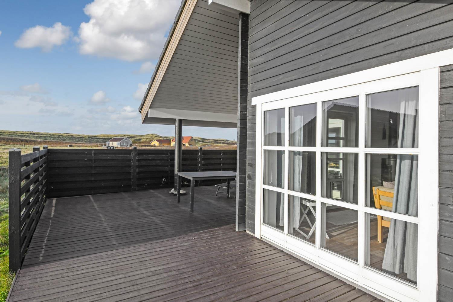 Huset er beliggende på en 1025 m2 naturgrund blot 100 m fra Vesterhavet og 200 m fra Ferring Sø. Dejlig terrasseanlæg som både er overdækket og delvist overdækket. Der findes et godt udvalg af havemøbler og udstyr bestående af borde og stole, liggestole, grill og bålplads. Fra terrassen er der en flot udsigt over naturskønne omgivelser samt til diget der ligger lige før Vesterhavet. Området er meget velegnet for vandreture og cykelture. Bovbjerg Fyr ligger kun få km væk fra huset, her kan man både i sæsonen og lidt udenfor sæsonen opleve flere udstillinger samt besøge fyrtårnets cafe med hjemmebagt kage mv. Ønsker man at shoppe eller gå på restaurant så ligger den gamle købstad Lemvig blot en kort køretur fra huset. Hvis man ønsker at besøge attraktioner, er Thyborøn et godt sted, her er der Jyllands akvariet, Seawar museum og Sneglehuset. Derudover er der også gode muligheder for at købe frisk fisk eller spise et godt måltid på en af de lokale restauranter ved havnen. Huset er et godt valg hvis man ønsker at bo meget tæt på Vesterhavet i rolige og flotte naturomgivelser.