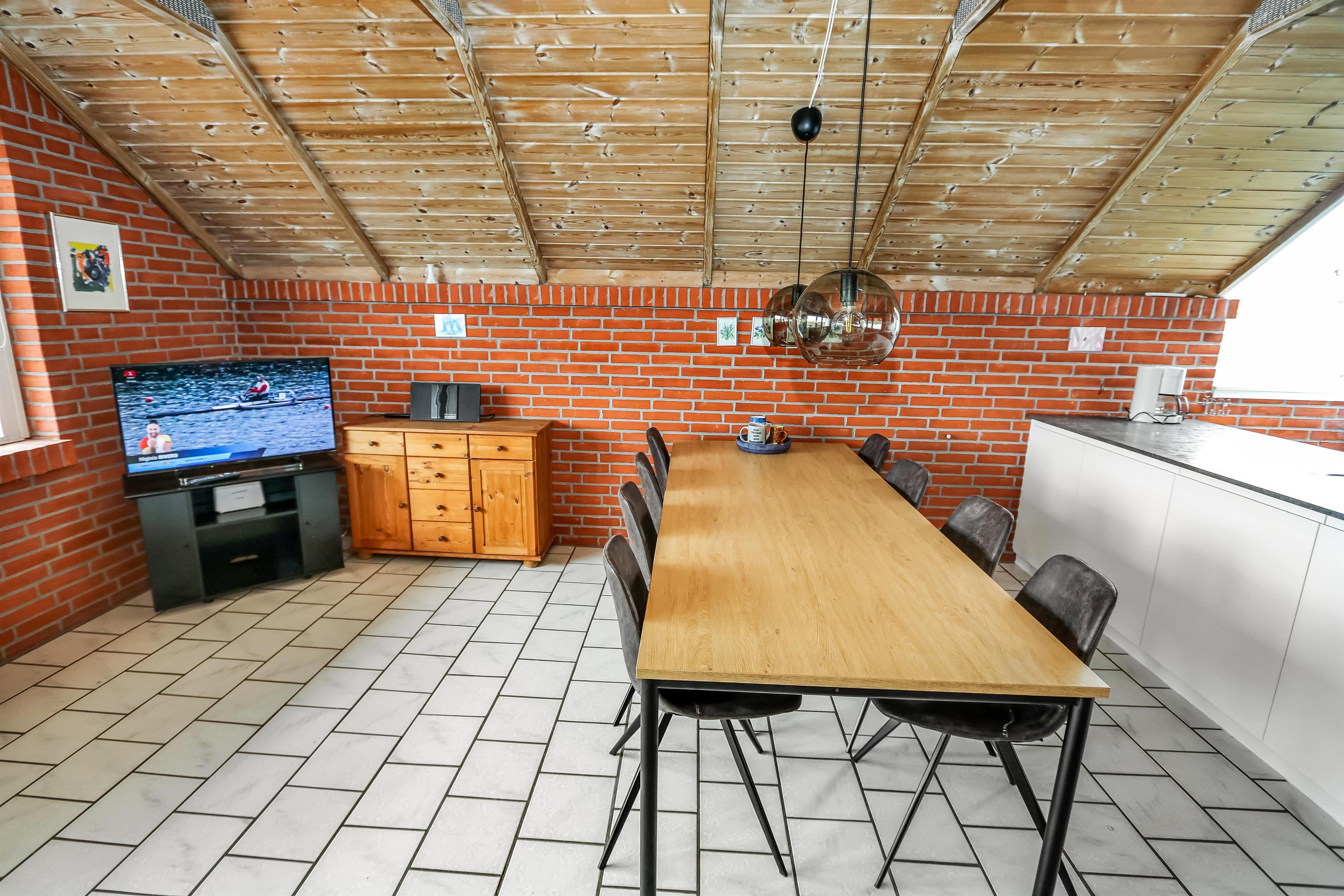 Rummeligt og delvis nyrenoveret feriehus på 96 m2- som er bygget i 1996 og er delvis renoveret i 2023. Allerede når I parkeret bilen ved huset blir I klar over at husets beliggenhed er noget specielt. Huset er praktisk indrettet med klinkegulve både i opholdsrum, baderum og i soveværelser. 3 soveværelser (1DS, 2S) samt et anneks (1DS) Opholdsstue med polstermøbler, tv med danske og tyske kanaler, Radio/CD og nyt spisebord med spiseplads, dejlig brændeovn som sørger for en behagelig varme uanset årstid. Helt nyt Køkkenhjørne med komfur med keramisk kogeplade, emhætte, mikroovn, opvaskemaskine og køleskab med fryseboks. Stort badeværelse med toilet, håndvask, bruser, vaskemaskine, spabad og direkte adgang til sauna. Max 2 husdyr tilladt. Ikke ryger hus