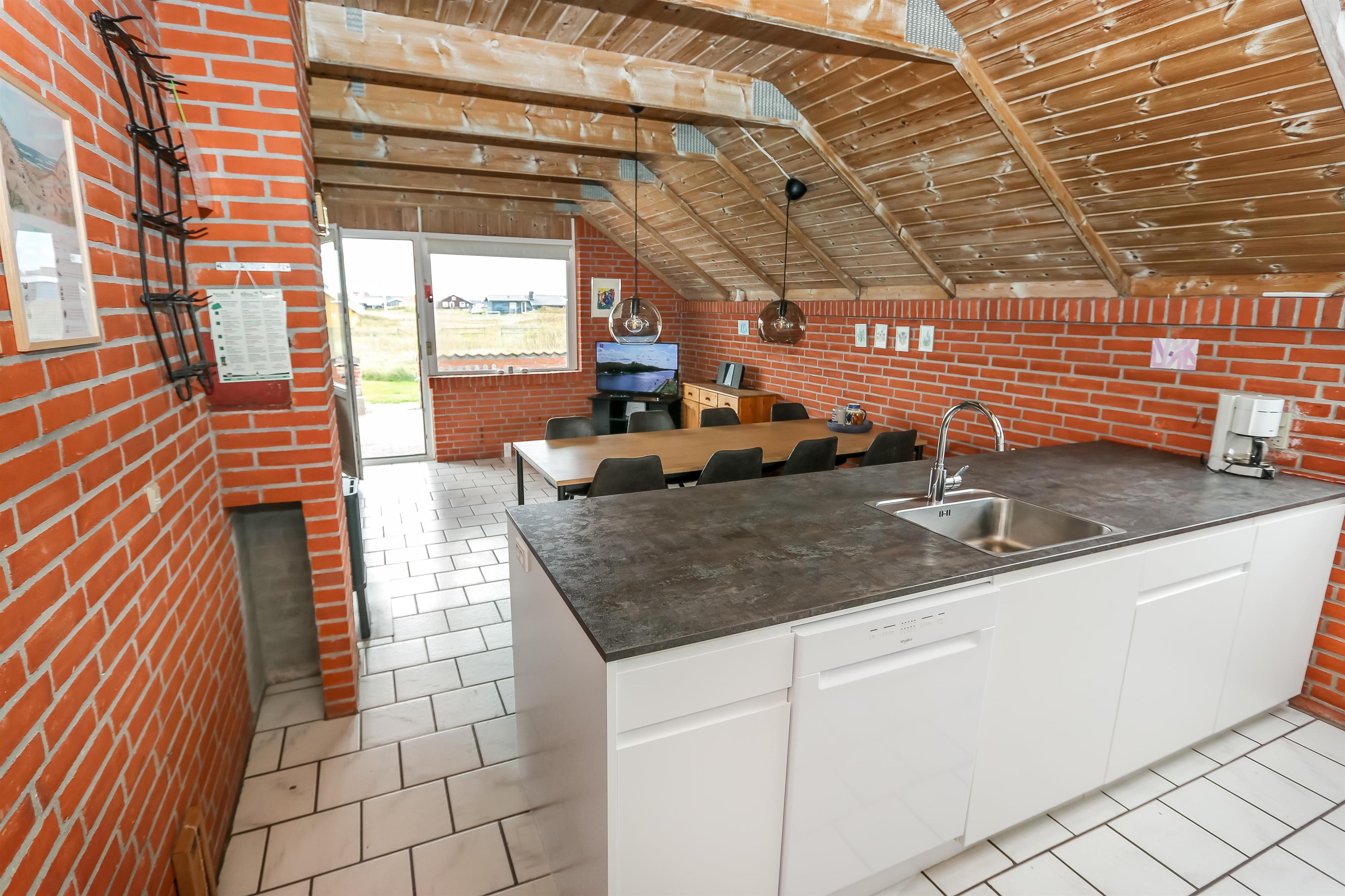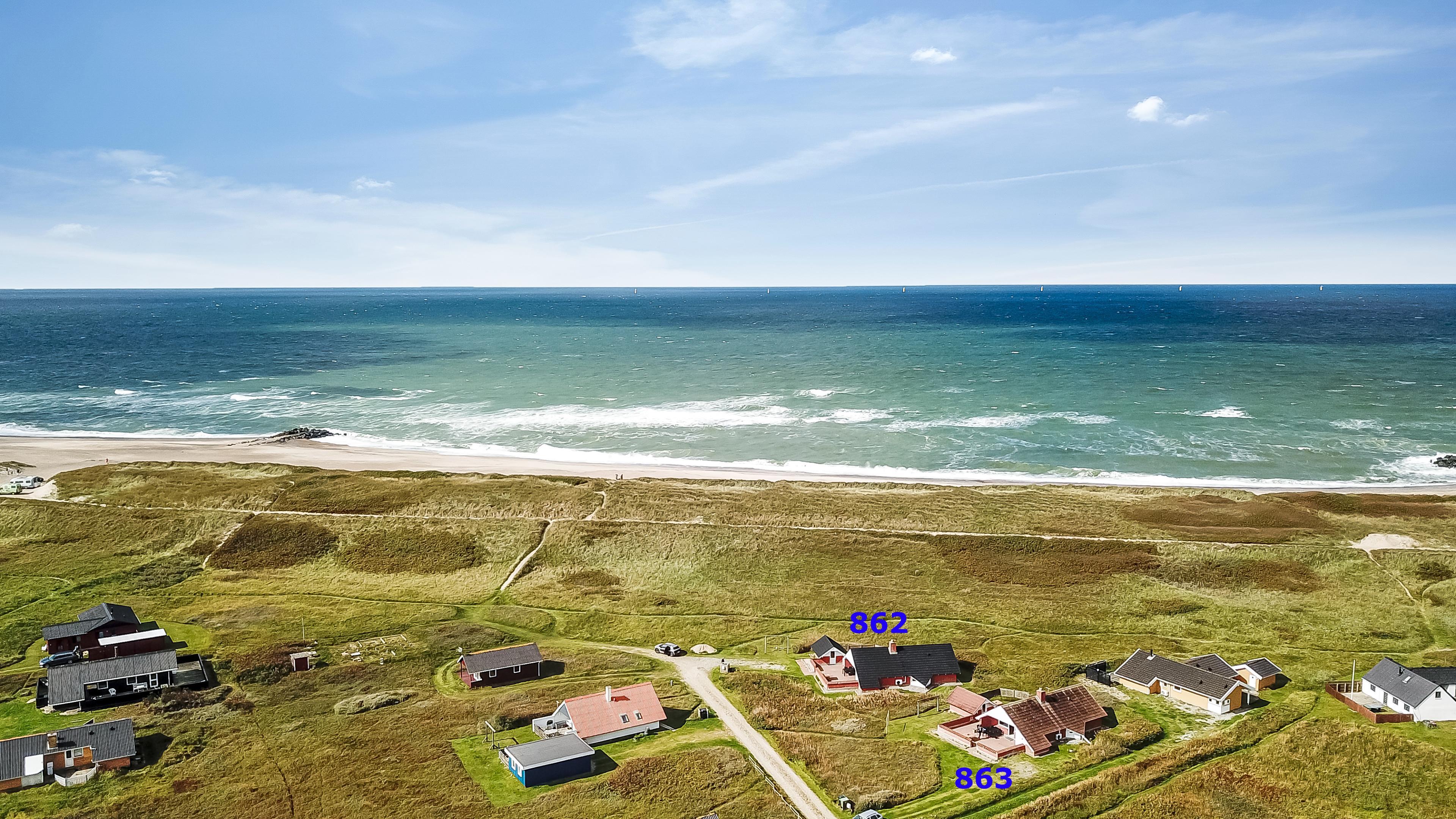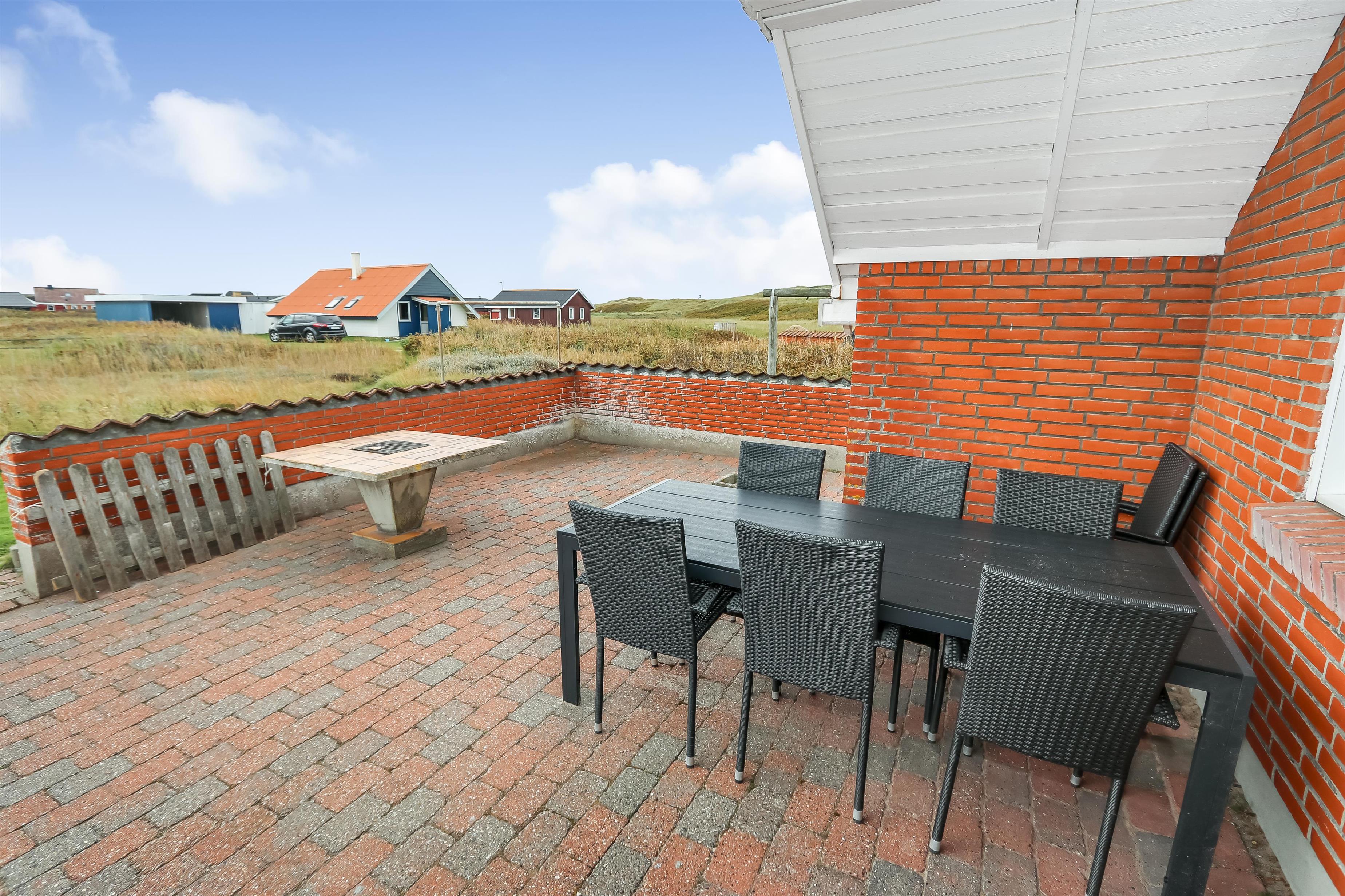 Udgang til indhegnet, delvis overdækket terrasse med havemøbler og grill. Huset ligger på en 4.000 m2 stor, naturgrund kun 100m fra Vesterhavet og tæt på Ferring sø. Lad batterierne med en god bog, lange gåture i rolige og fredelige omgivelser, nyd beliggenheden, lyden af Vesterhavet og at terrassen er indhegnet og dermed er perfekt hvis børn og husdyr medbringes. Besøg de mange attraktioner og oplevelser som nås indenfor max 30 min eller besøg fiskerbyen Thyborøn eller den dejlige handelsby Lemvig med masser af specialbutikker. I Sommermånederne kan de mest nødvendige indkøb klares hos Bovbjerg Camping.